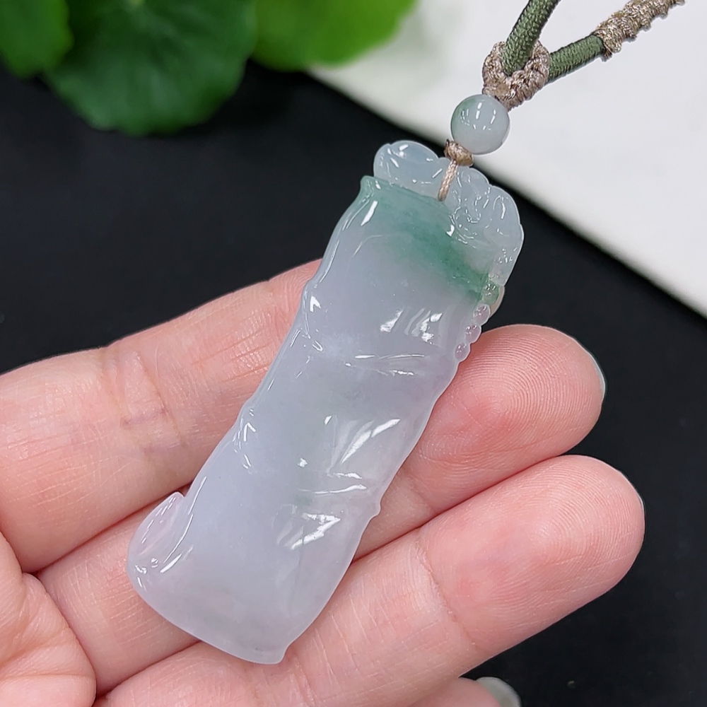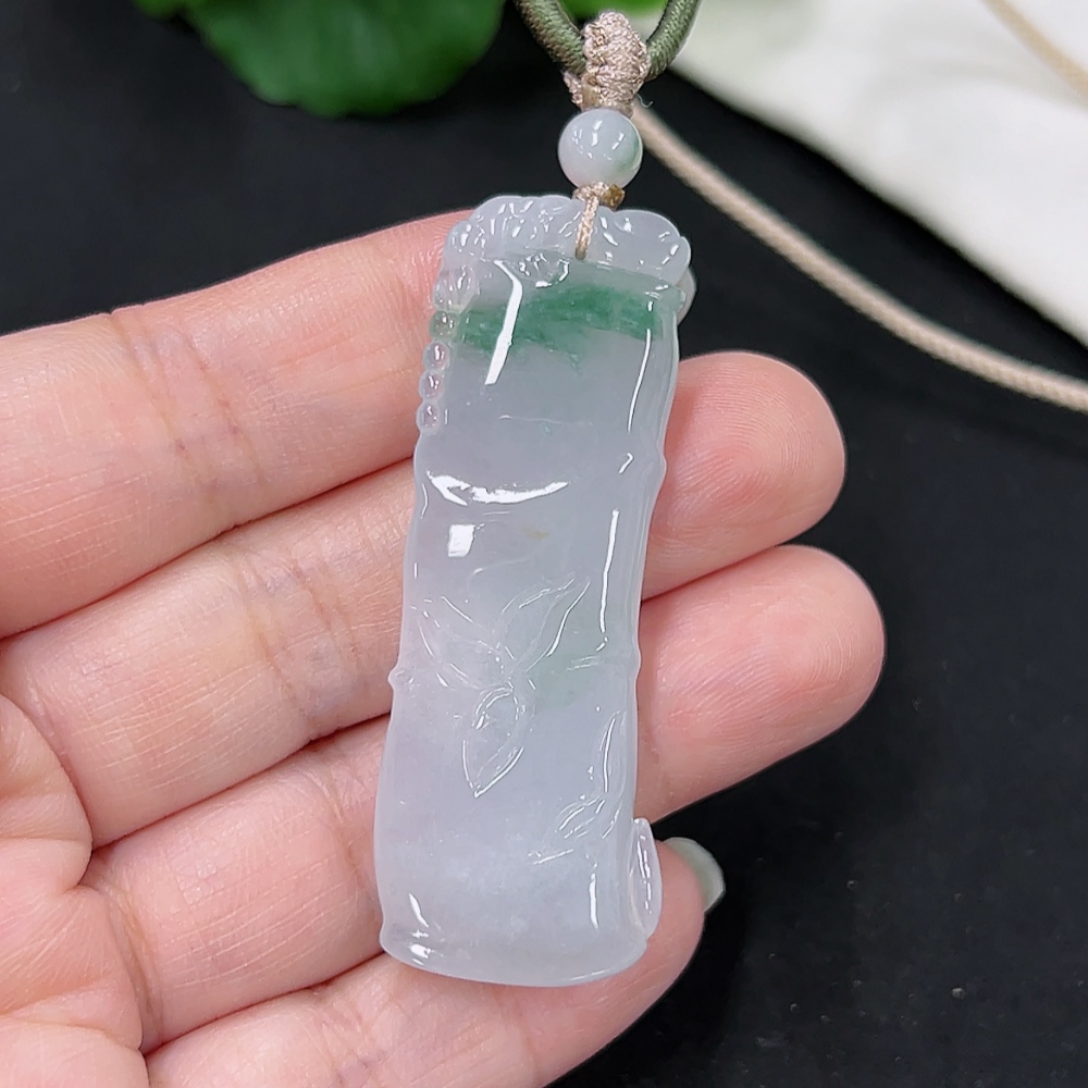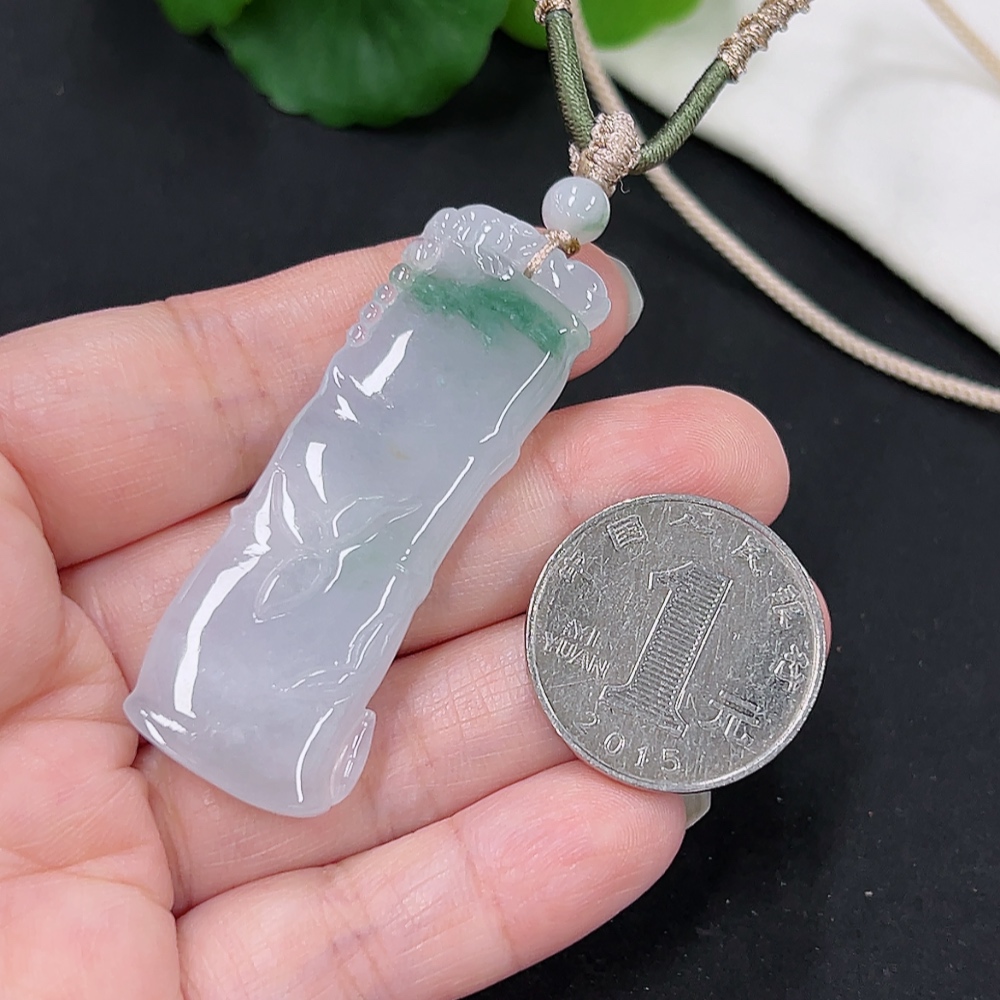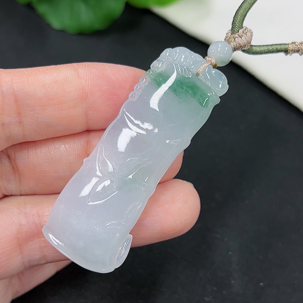 Jadeite Bamboo Joint Pendant Total Weight Approx. 16.1g (Including Rope Weight)