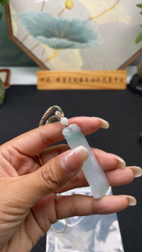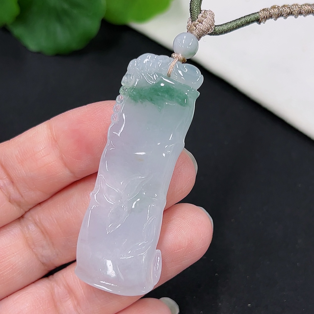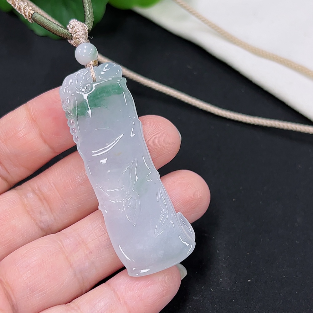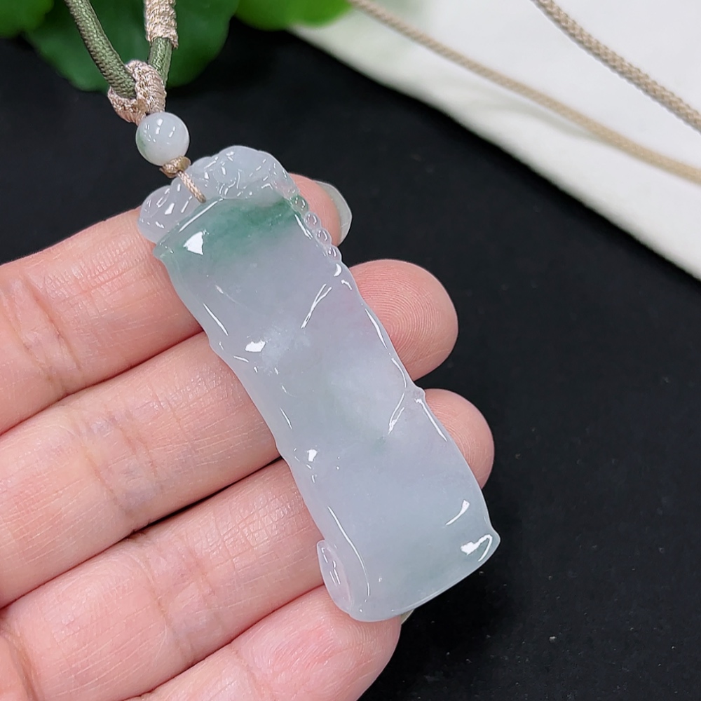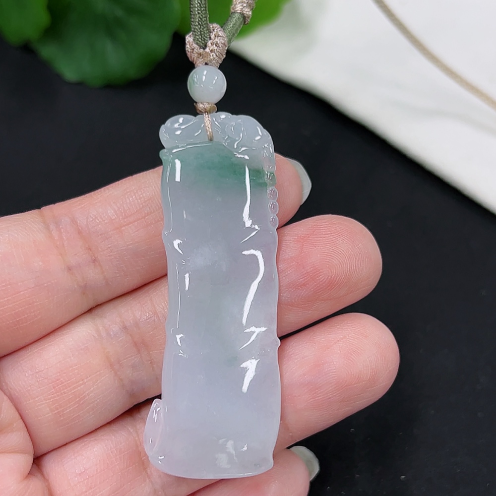 Jadeite Bamboo Joint Pendant Total Weight Approx. 16.1g (Including Rope Weight)