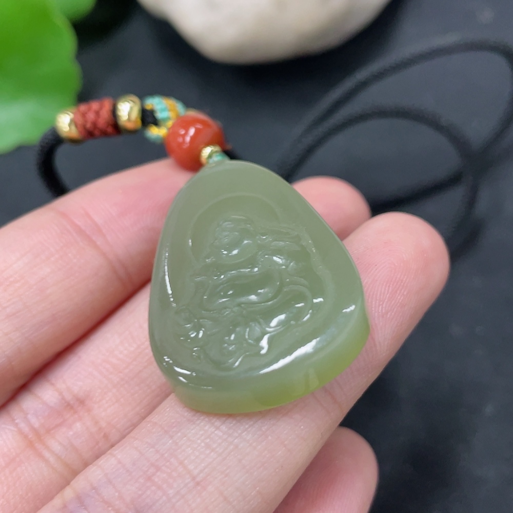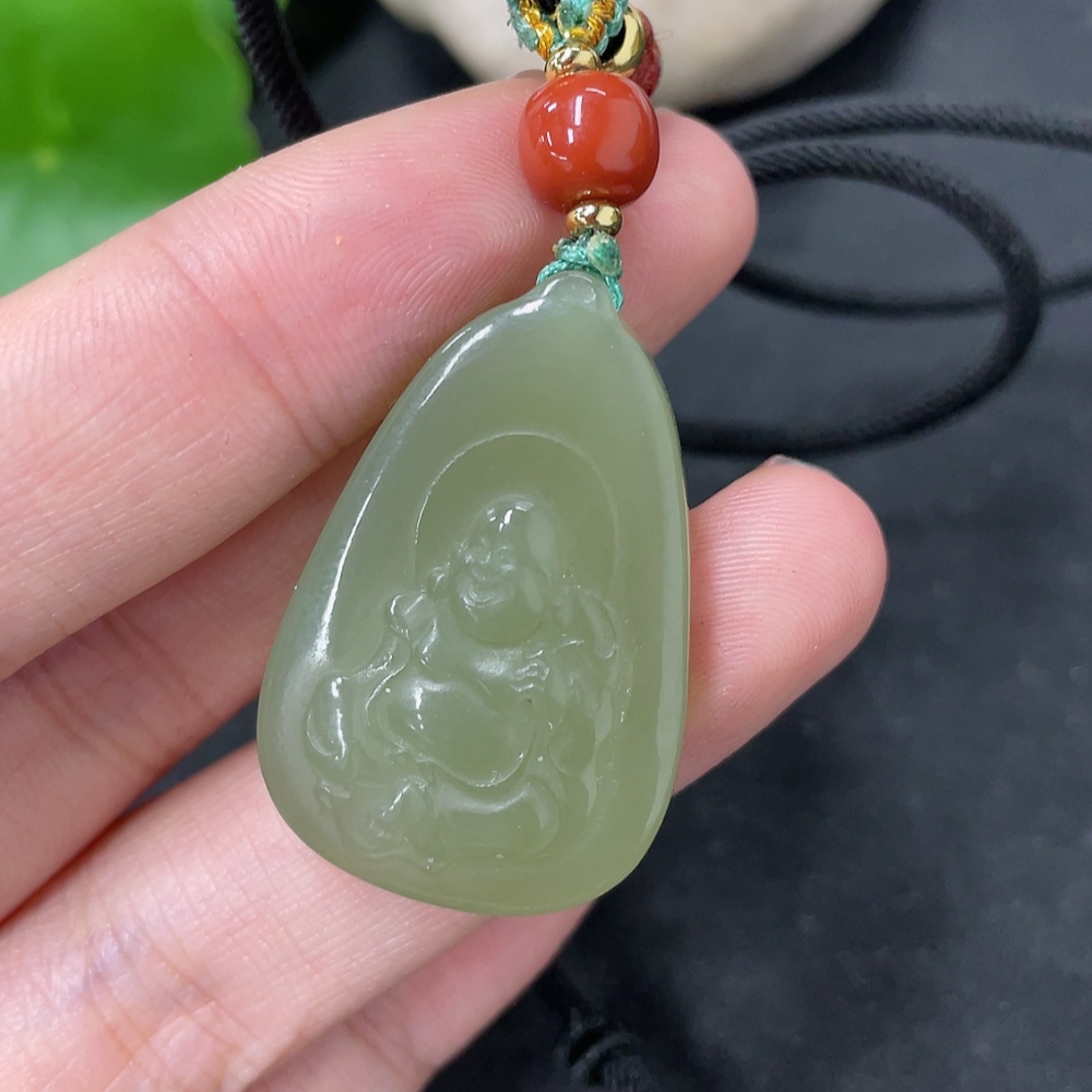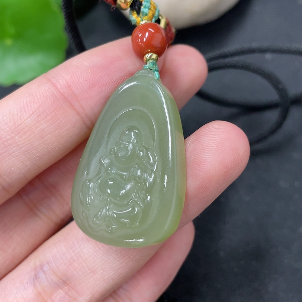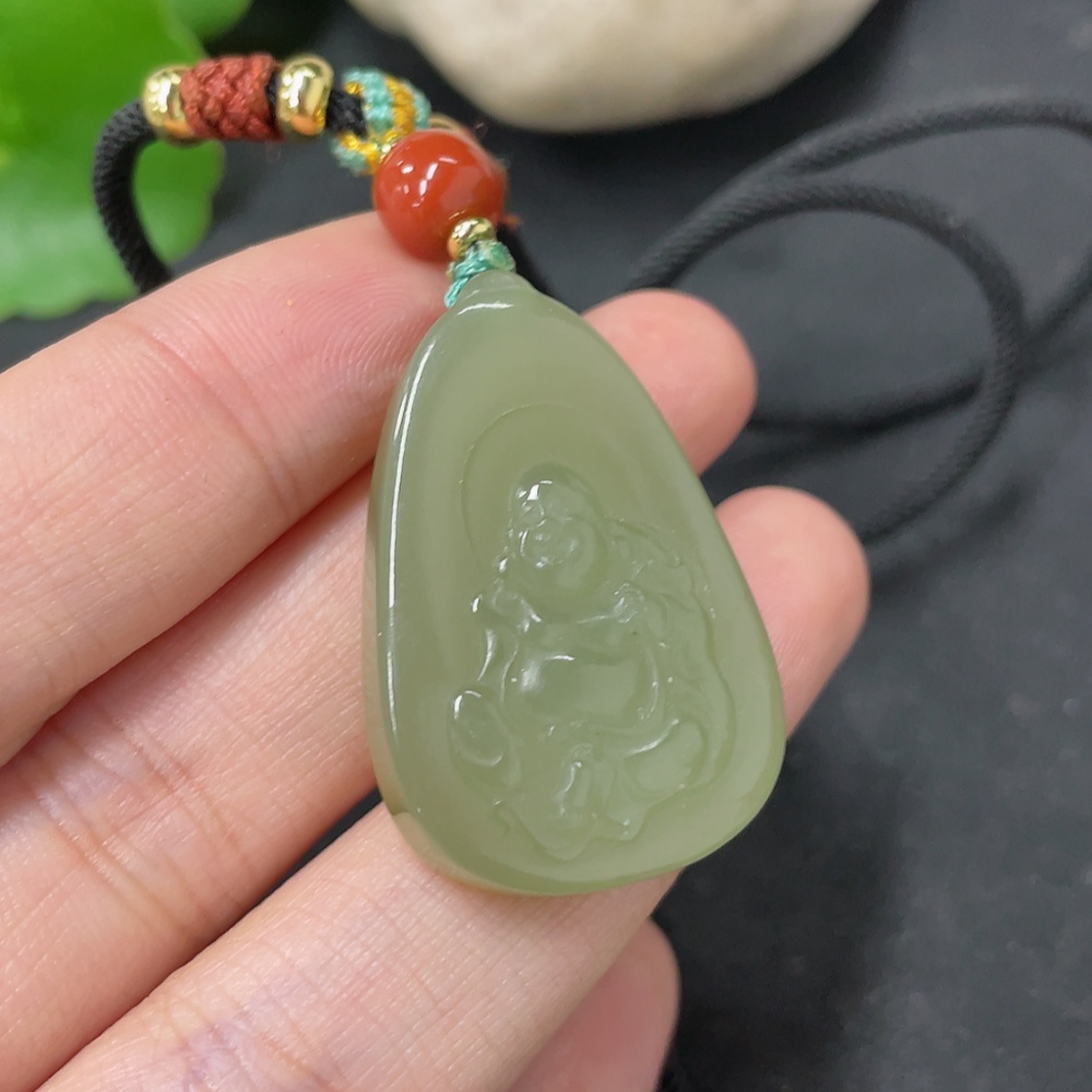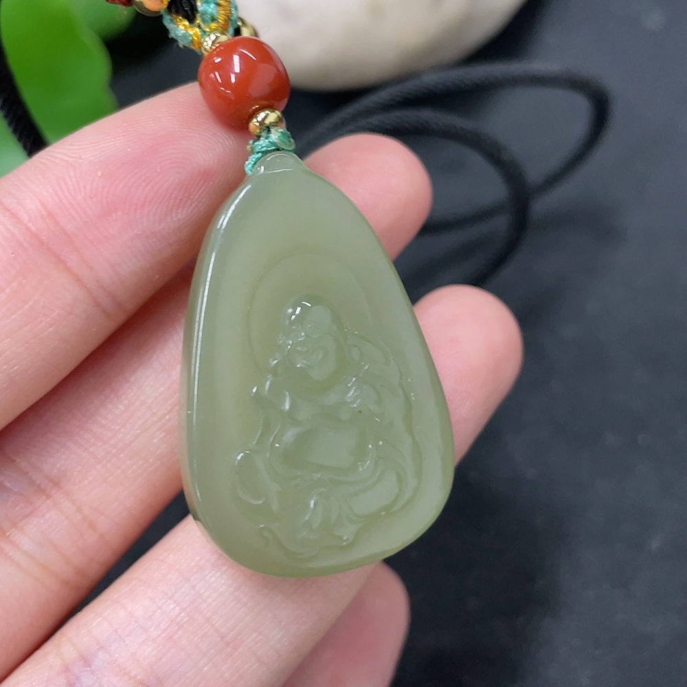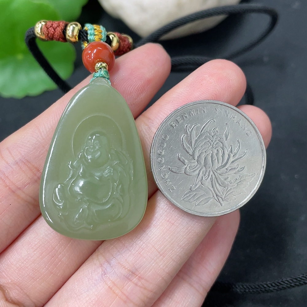 Hetian Jade Pendant, Buddha, Total Weight (including rope) Approx. 13.2g, Beads Not Hetian Jade