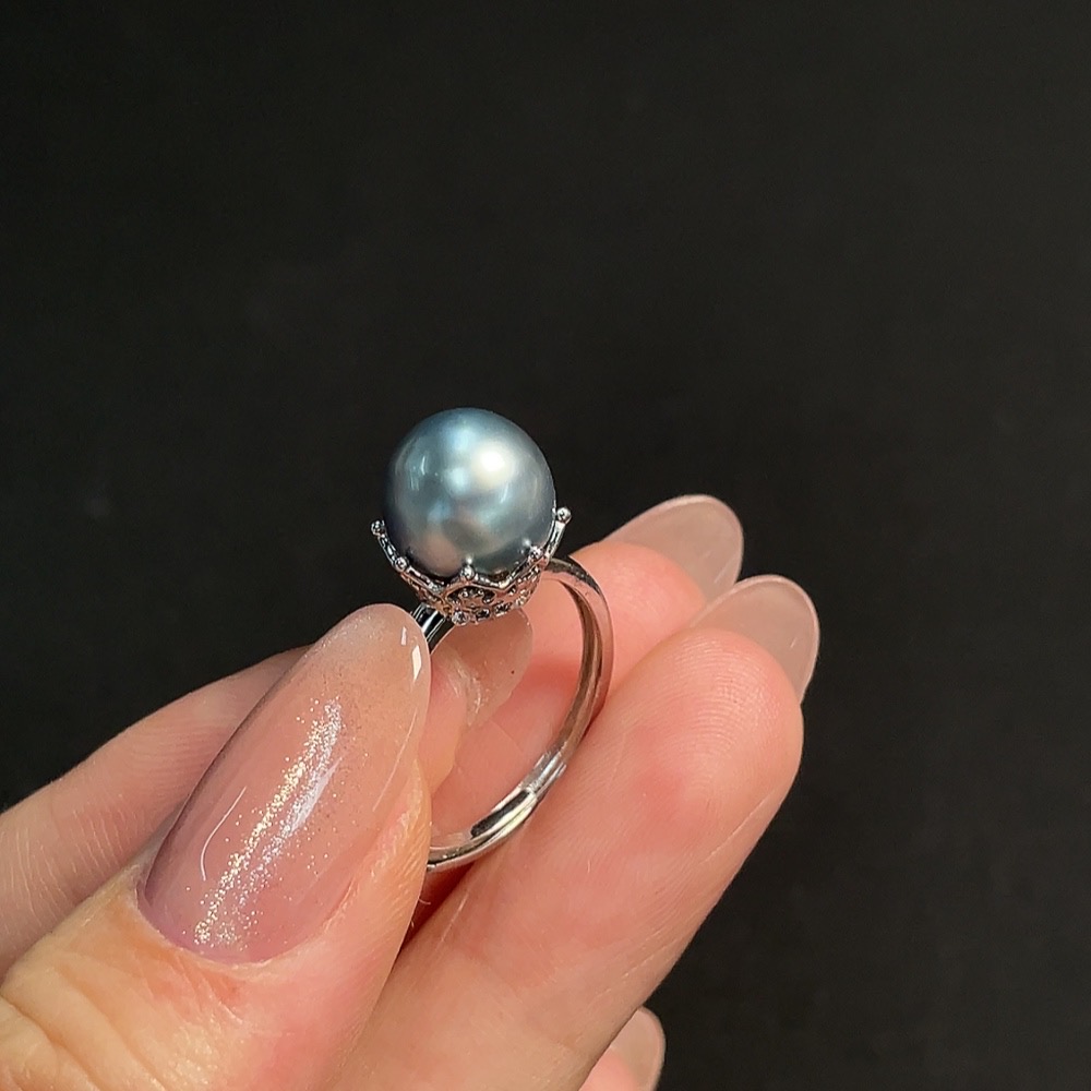 Seawater Pearl Inlaid Ring Non-Gold Setting Adjustable Size Approx. 9.6mm Total Weight About 2.98g
