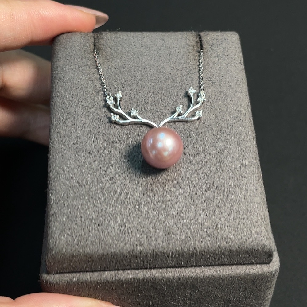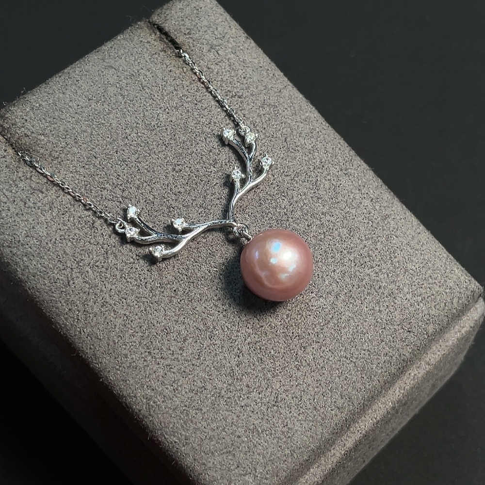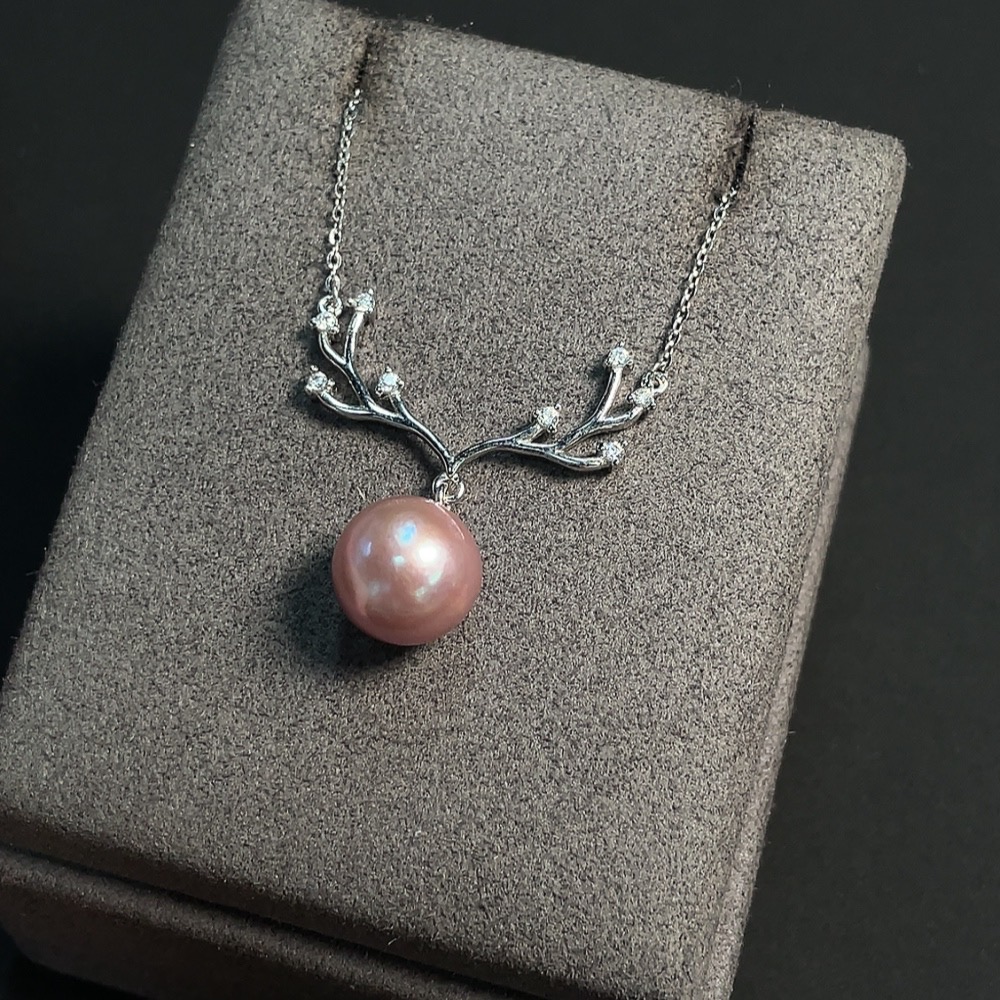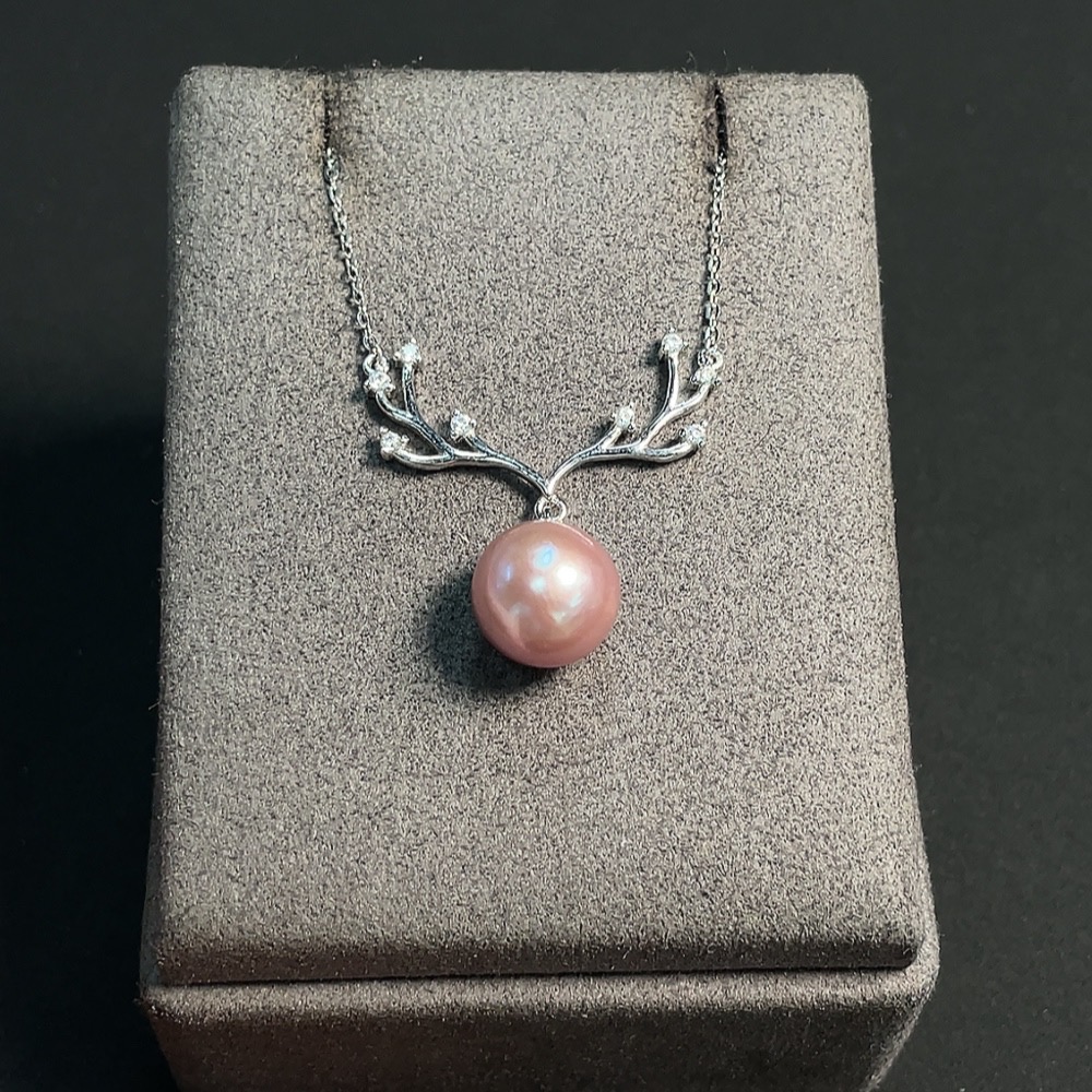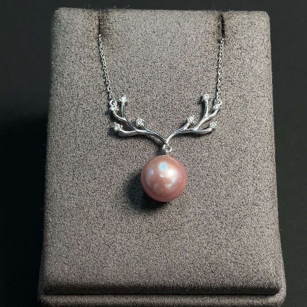 Pearl inlaid necklace, non-gold setting, approx. 10.7mm, total weight including chain approx. 3.81g