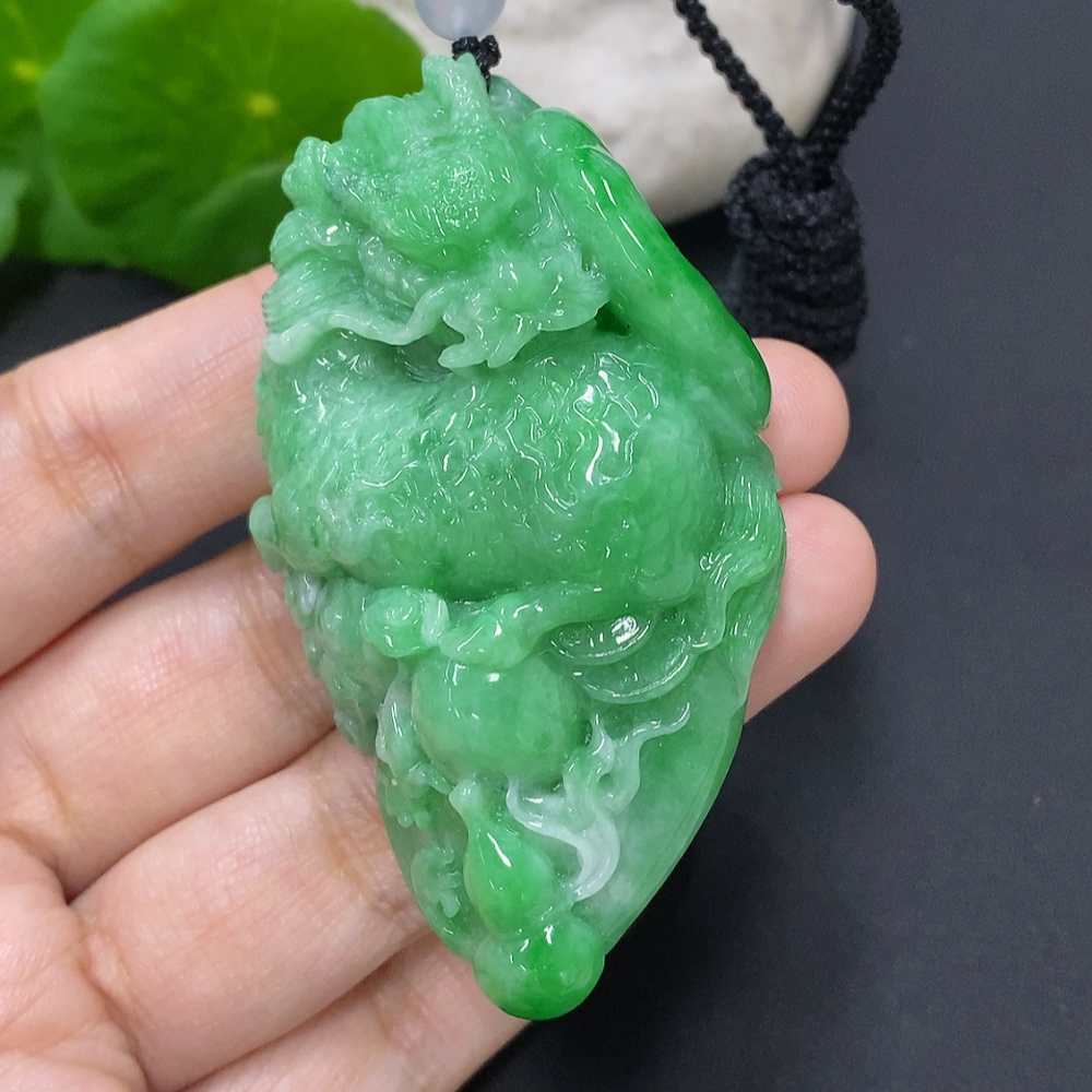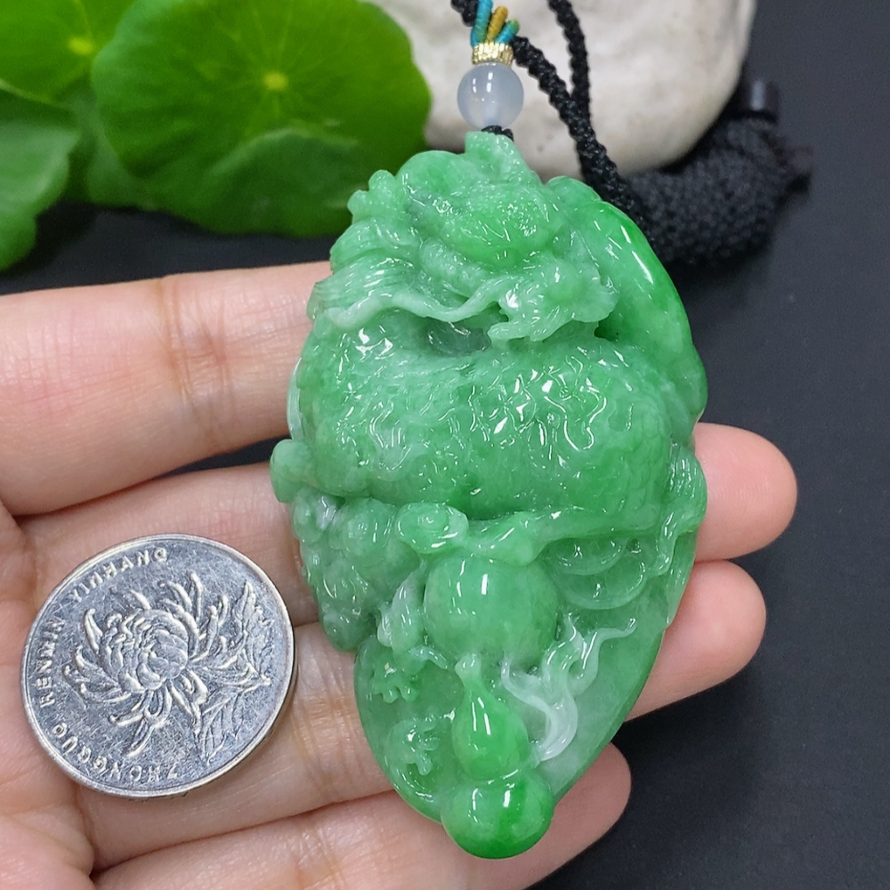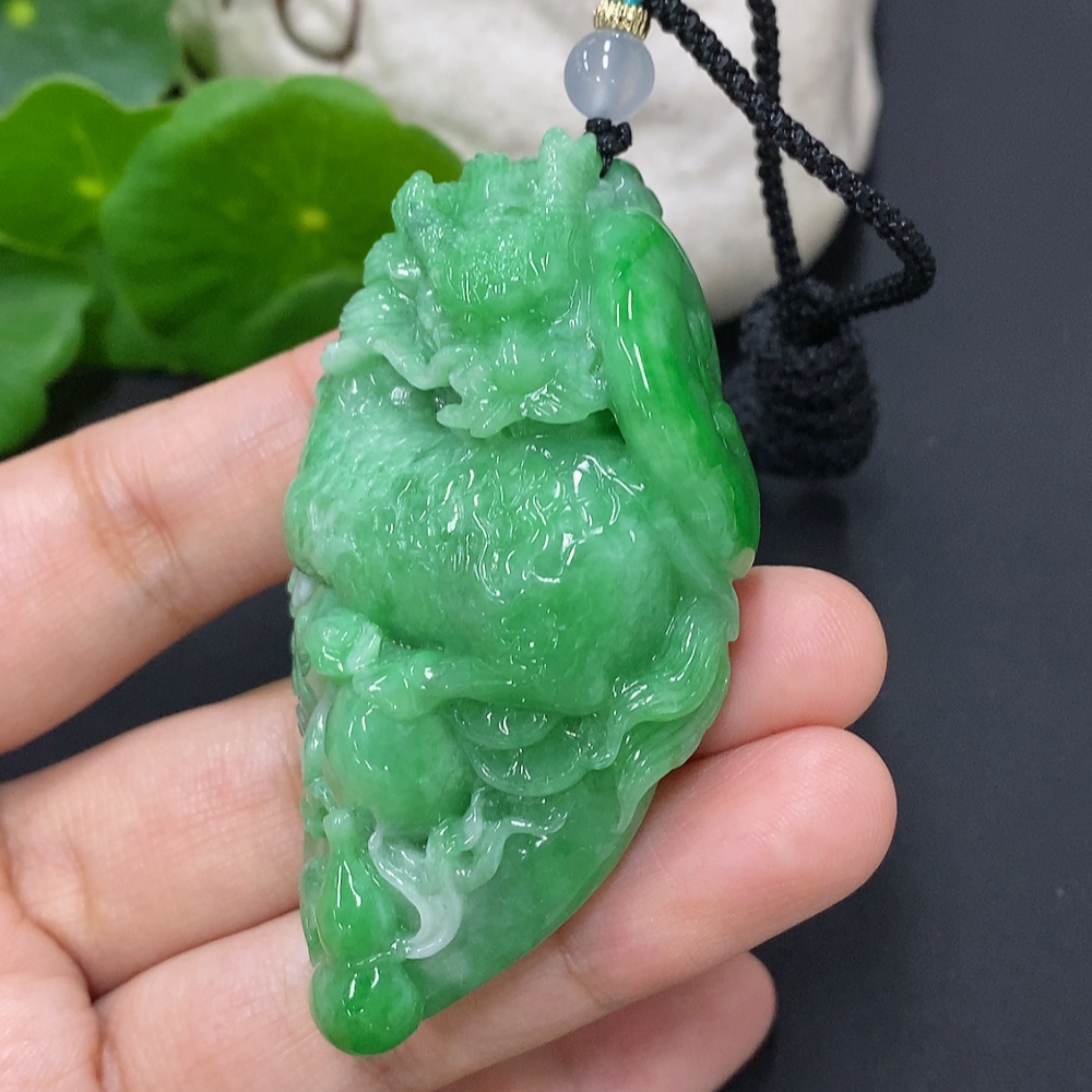 Jadeite Kylin Pendant Total Weight Including Rope Approx. 73.1g (Beads Non-Grade A)