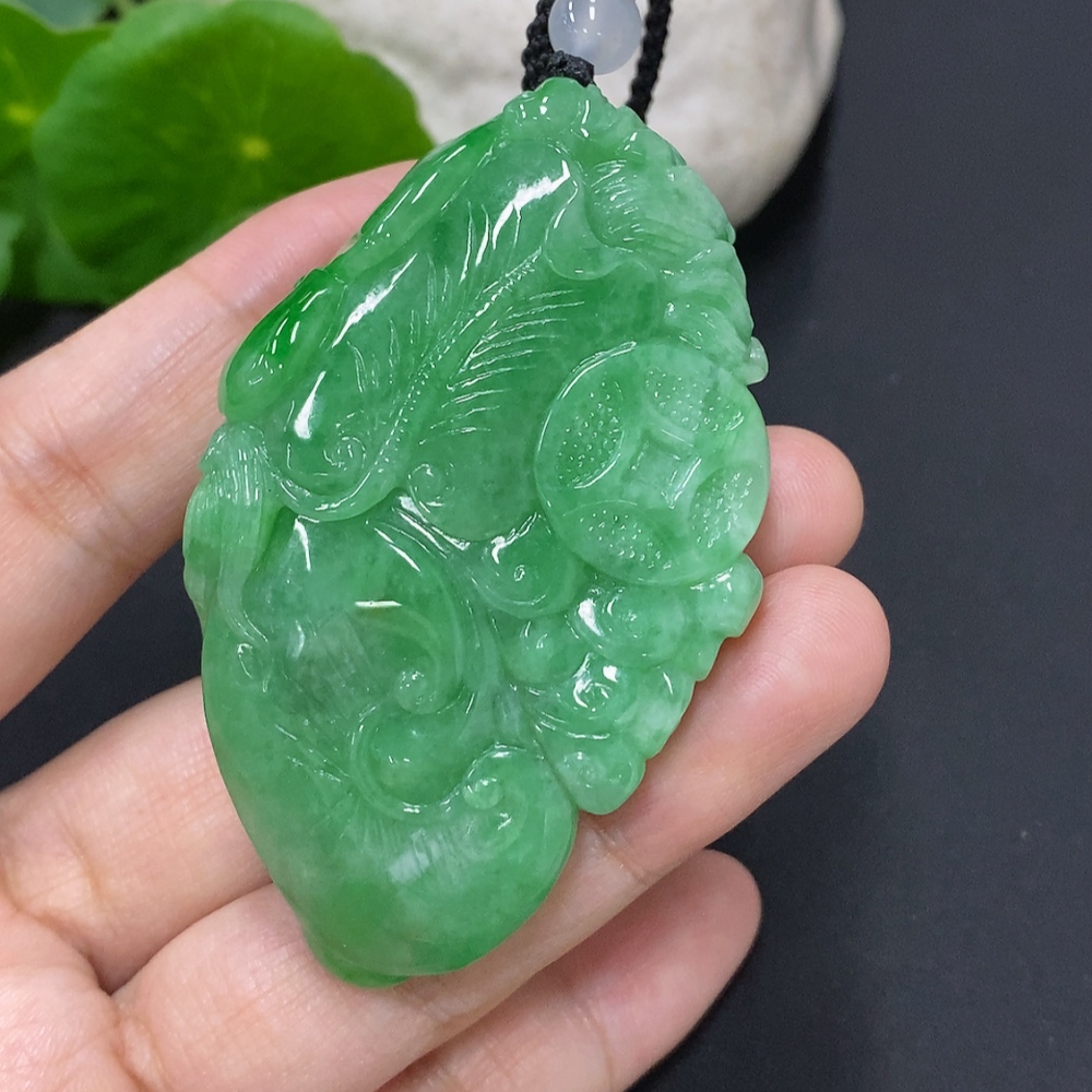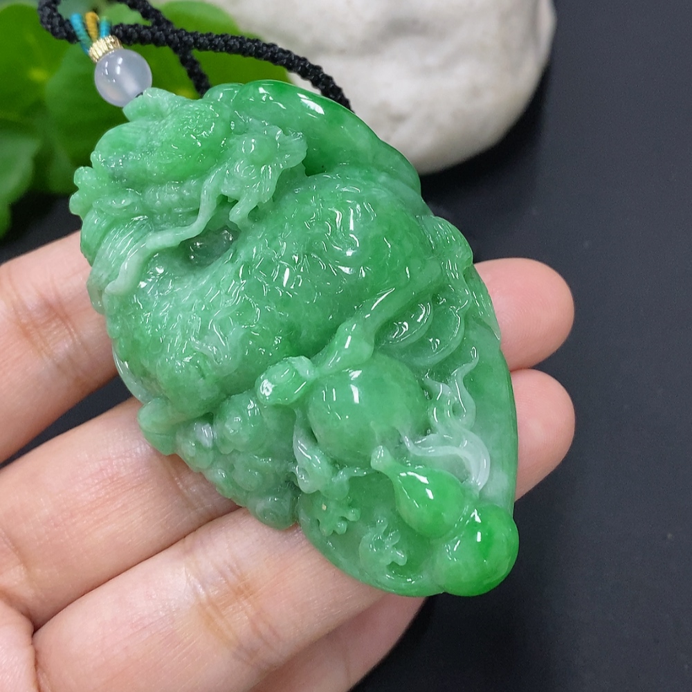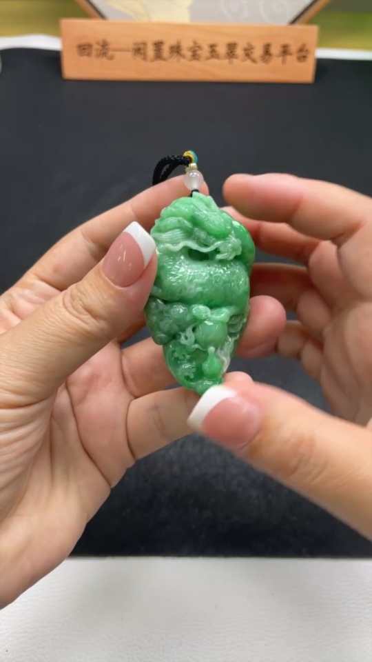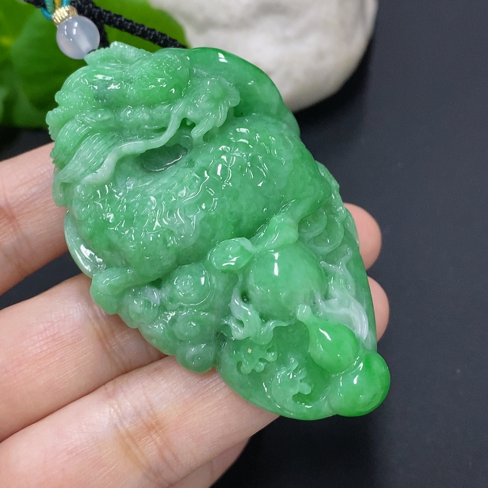 Jadeite Kylin Pendant Total Weight Including Rope Approx. 73.1g (Beads Non-Grade A)