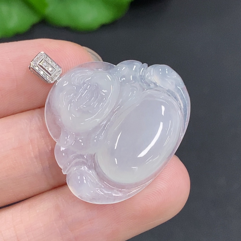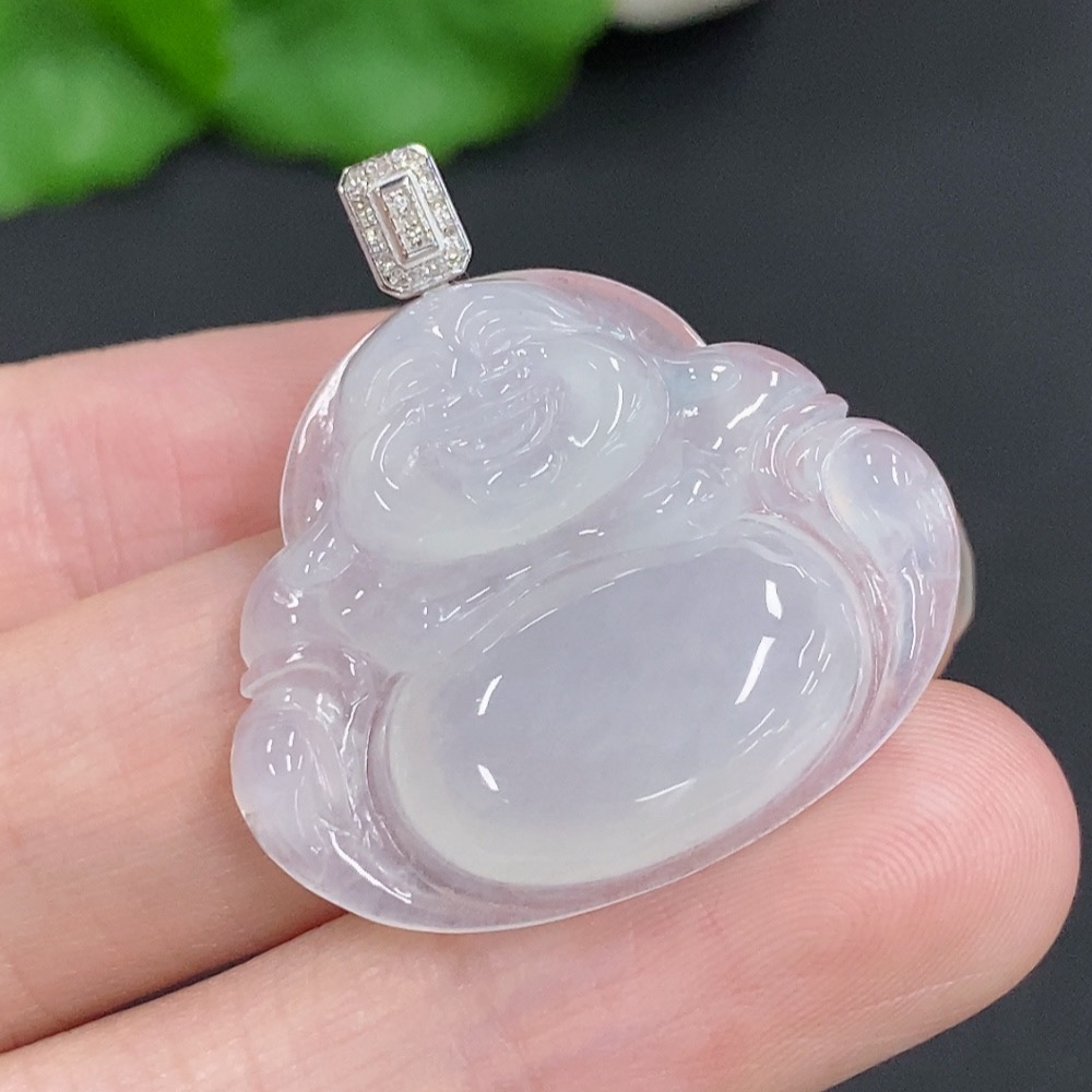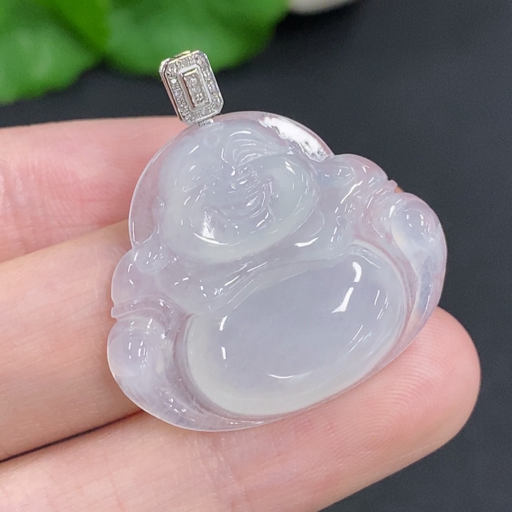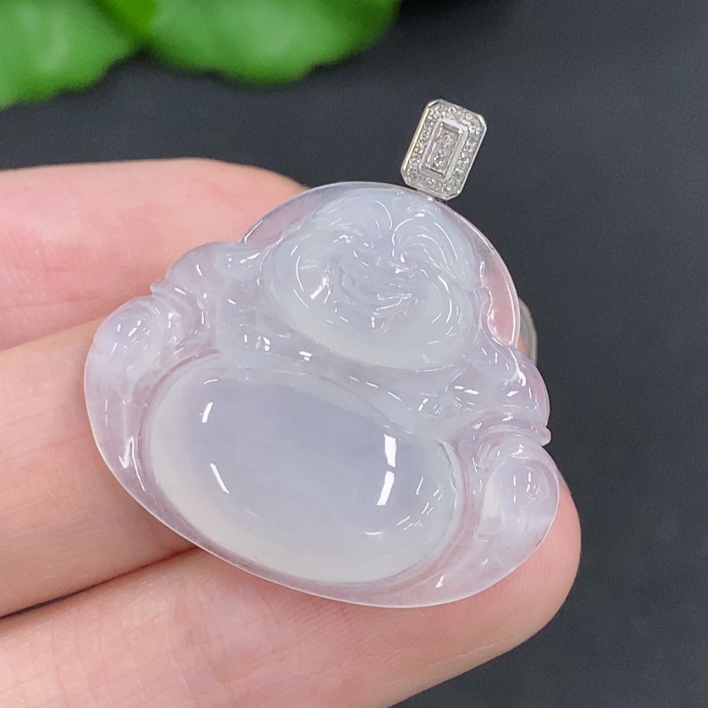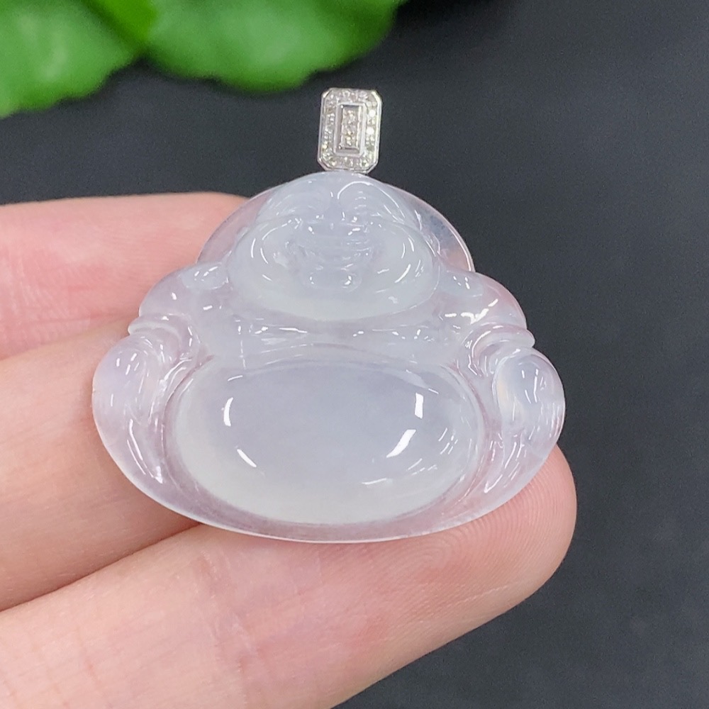 Jadeite Buddha Pendant with 18K Gold Clasp, Total Weight Approximately 5.5g, Diamond Accents
