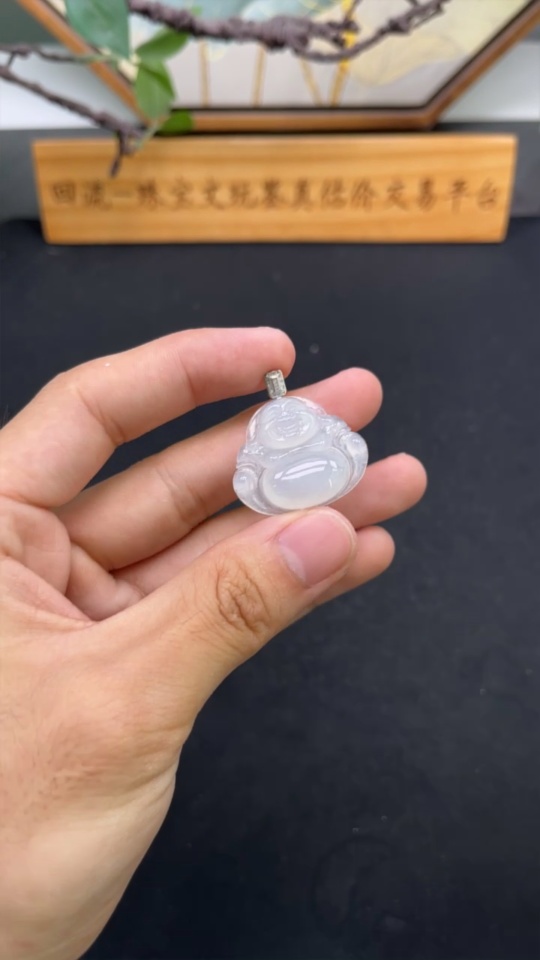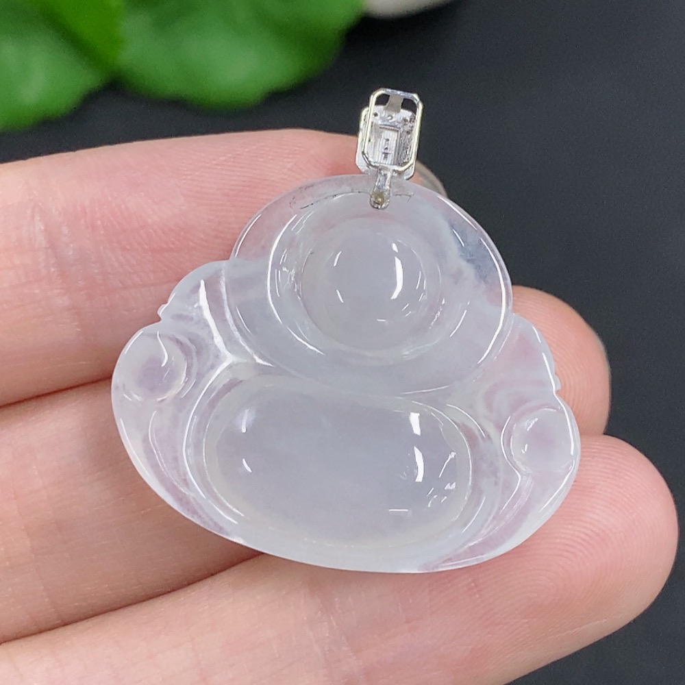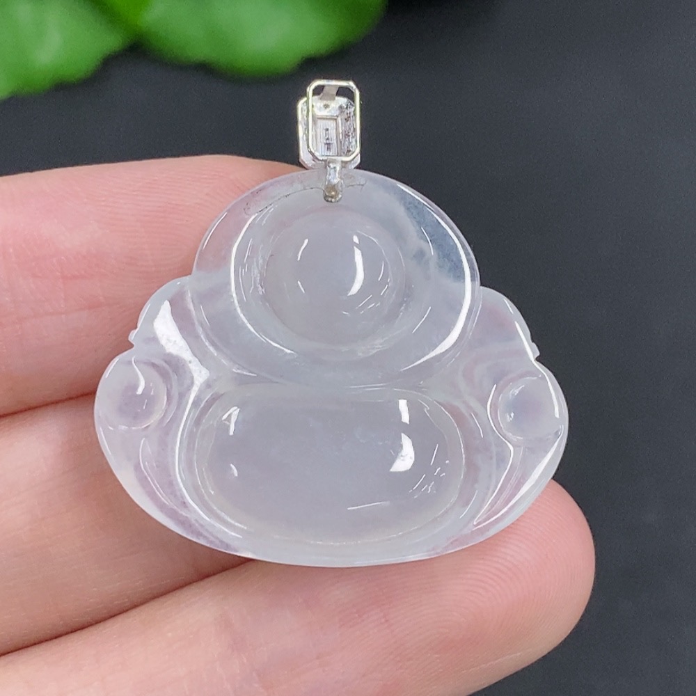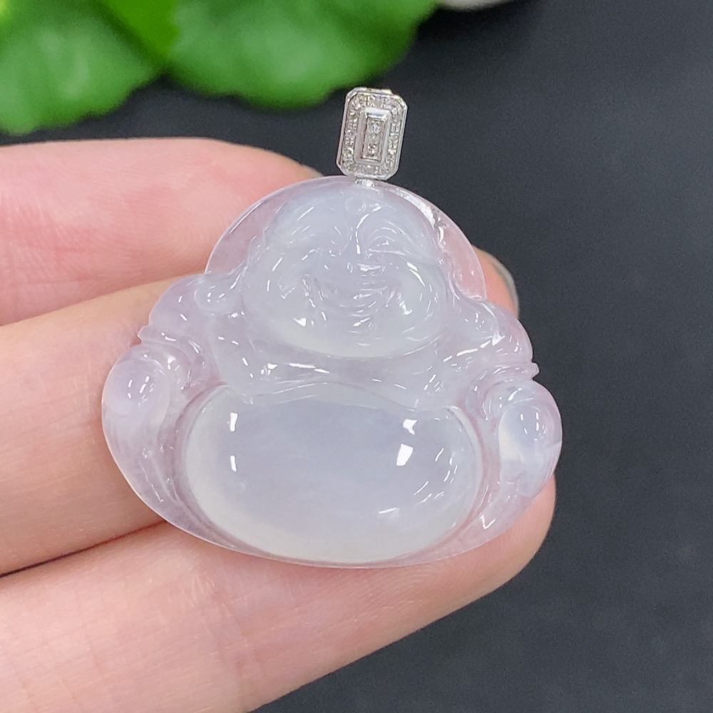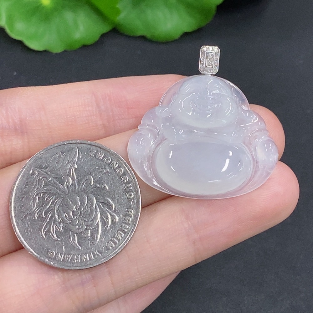 Jadeite Buddha Pendant with 18K Gold Clasp, Total Weight Approximately 5.5g, Diamond Accents
