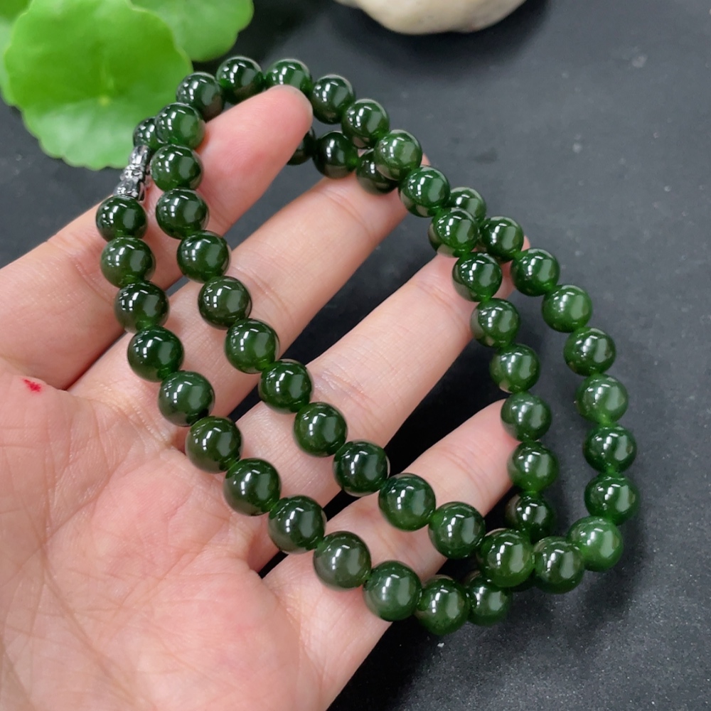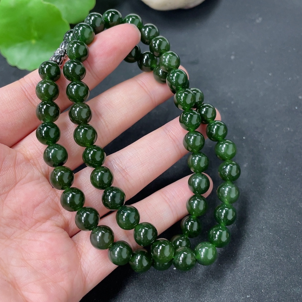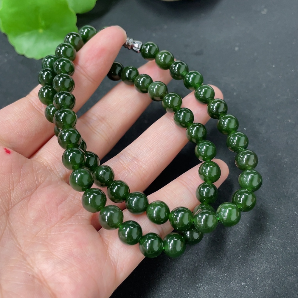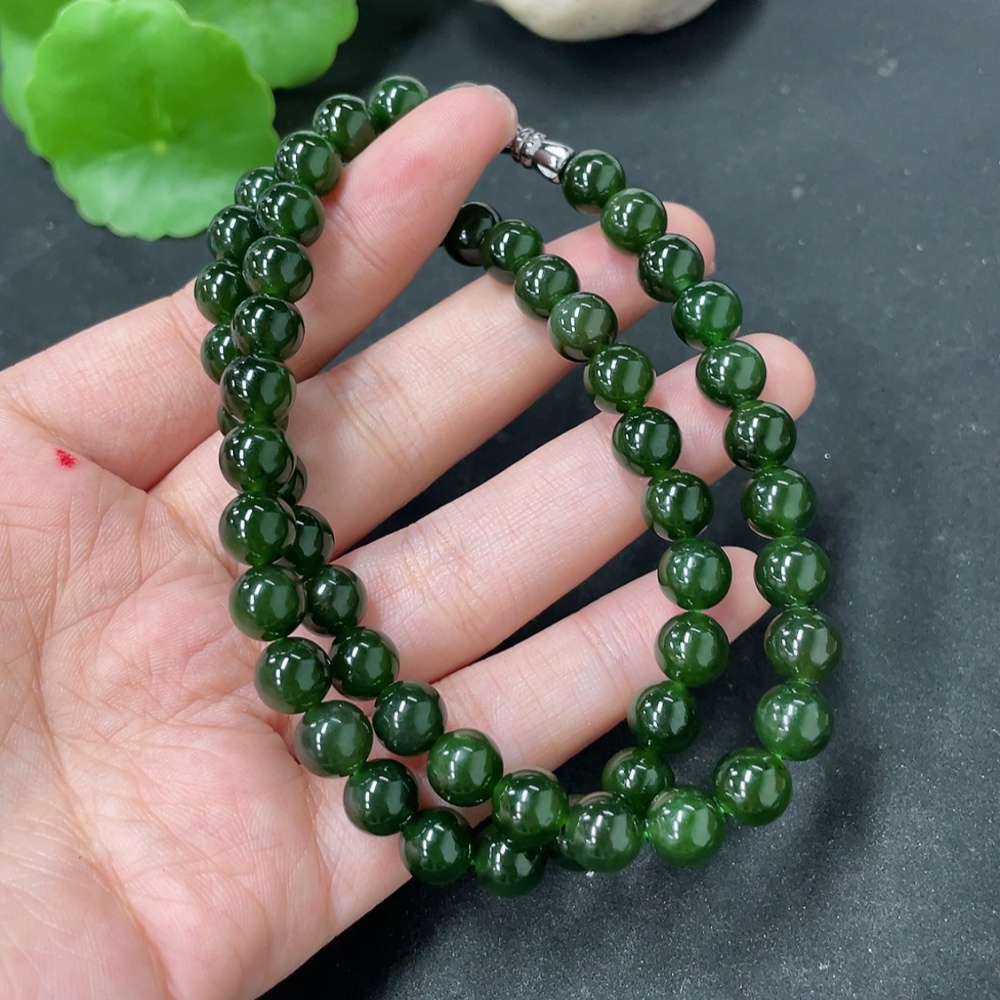 Trezaar - Hetian Jade Bead Necklace Approx. 7.5mm Total Weight Approx. 41.8g