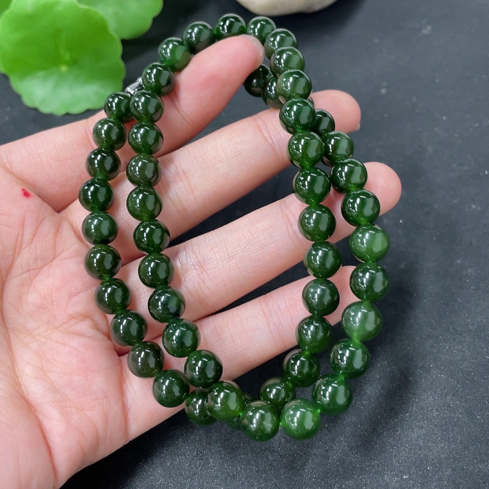 Hetian Jade Bead Necklace Approx. 7.5mm Total Weight Approx. 41.8g
