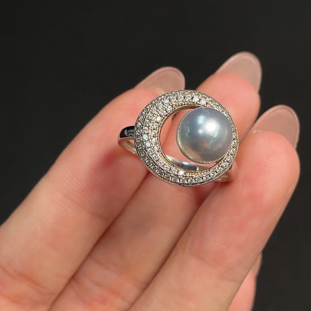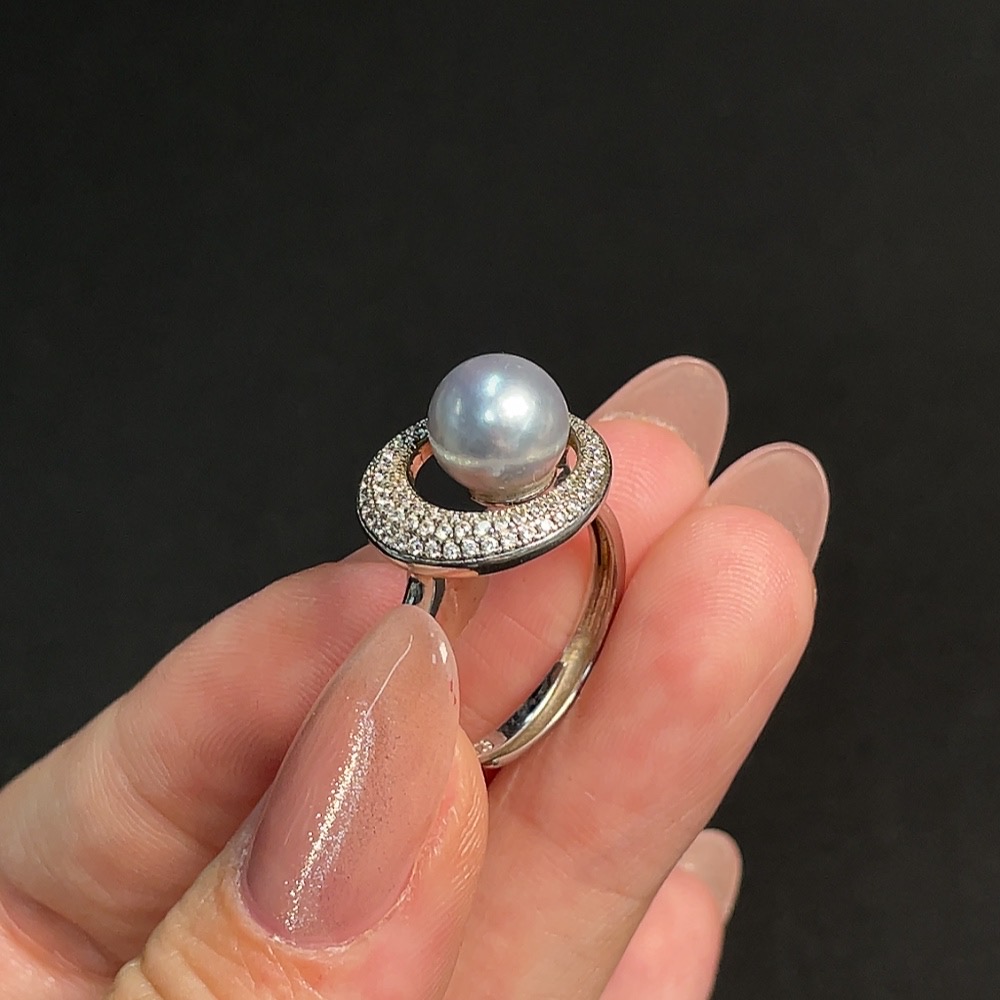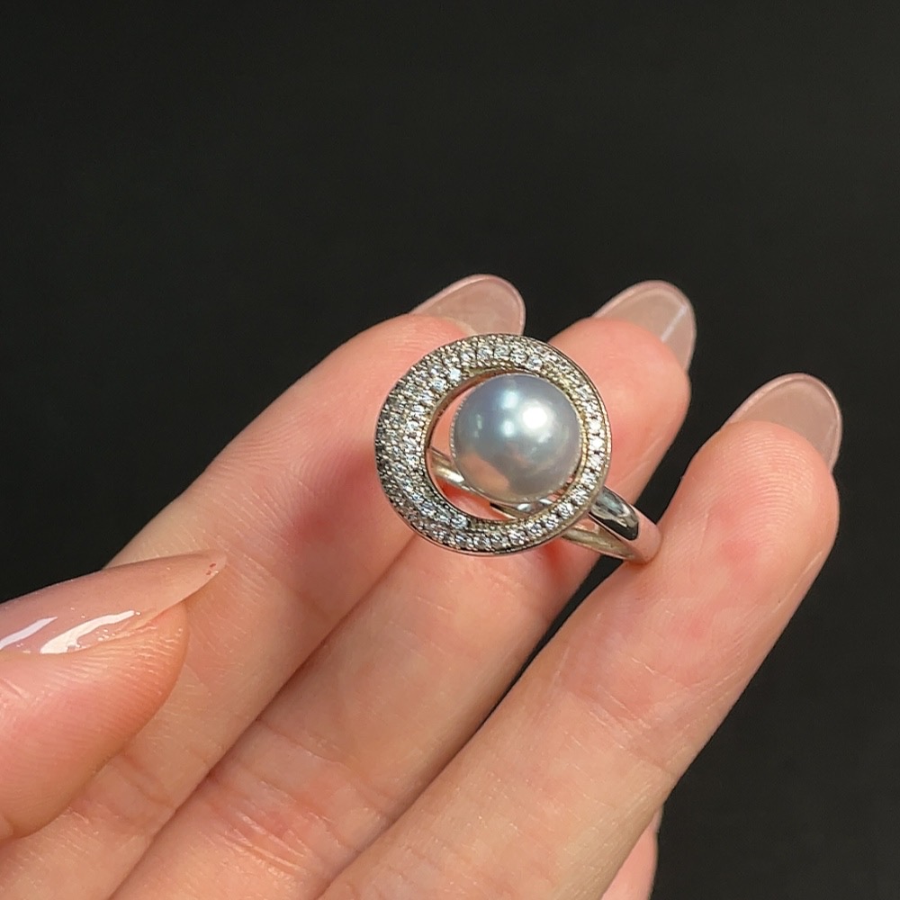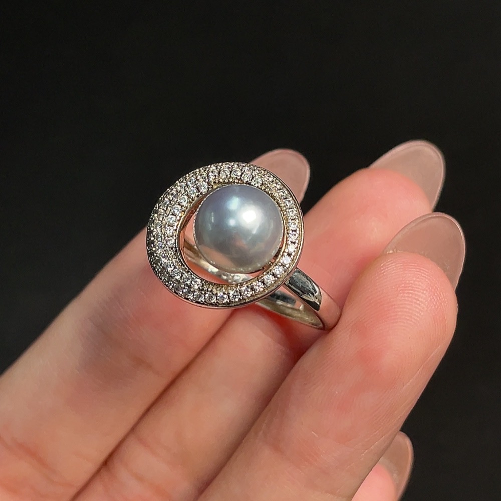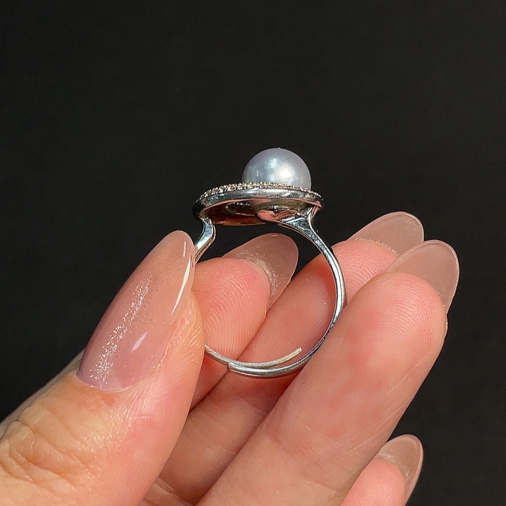 Seawater Pearl Inlay Ring Non-Gold Setting Adjustable Size Approximately 8.6mm Total Weight About 3.95g Color Origin Undetermined