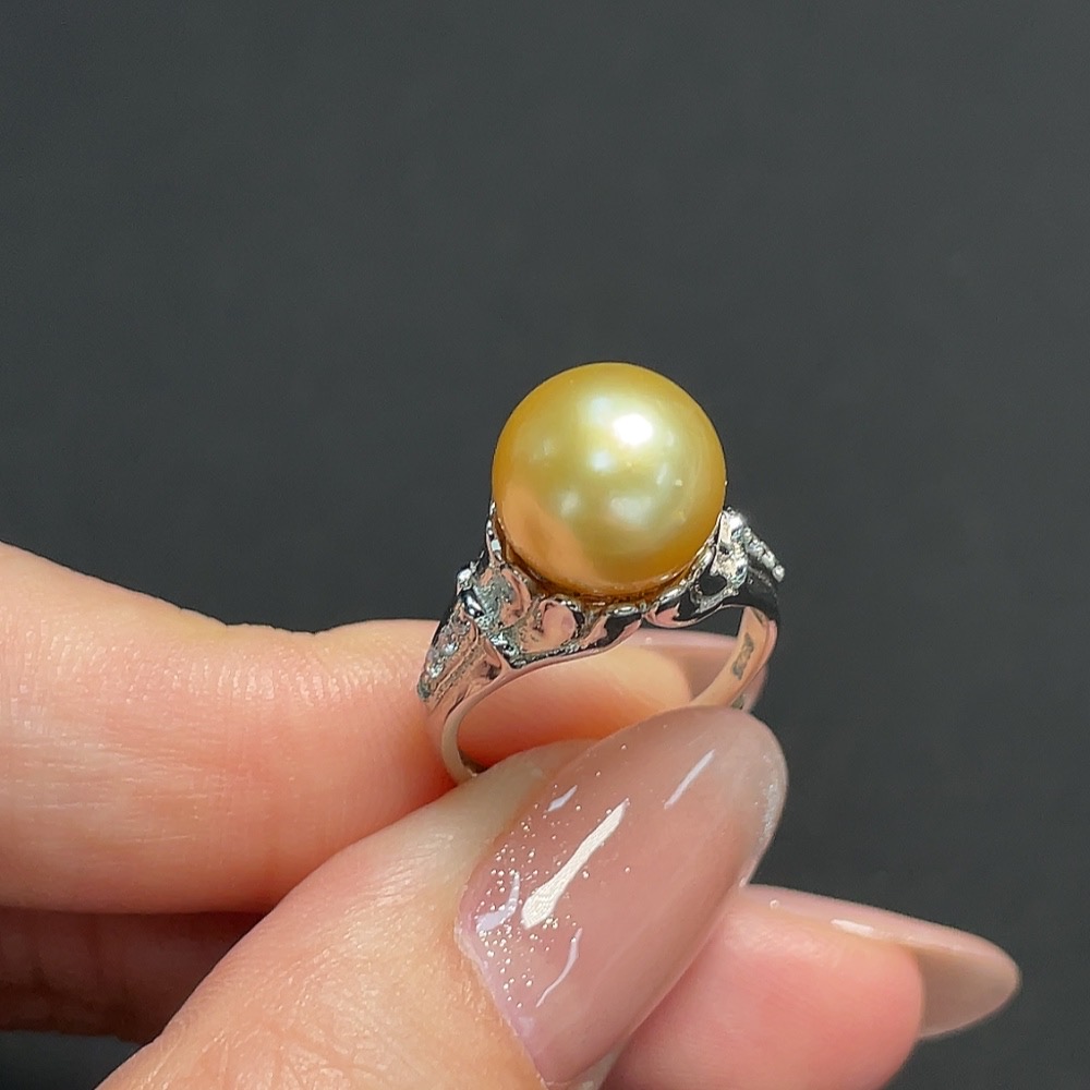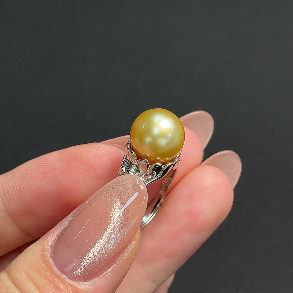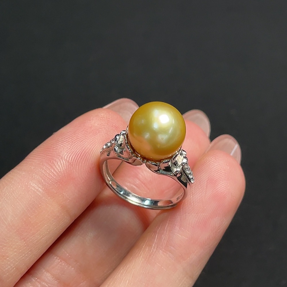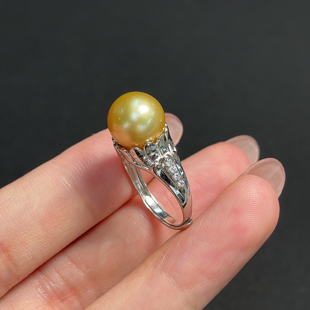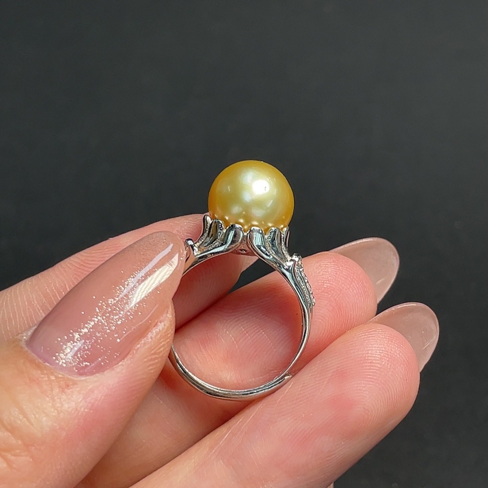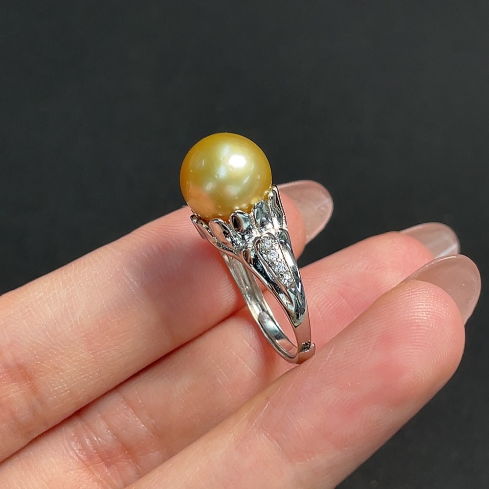 Seawater Pearl Inlaid Ring, Non-Gold Setting, Adjustable, Stone Size Approximately 10mm, Total Weight About 4.23g, Color Origin Undetermined