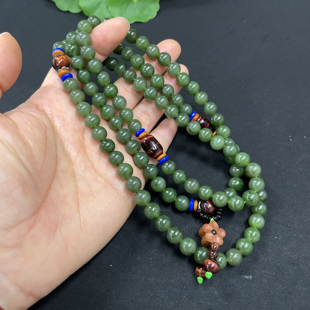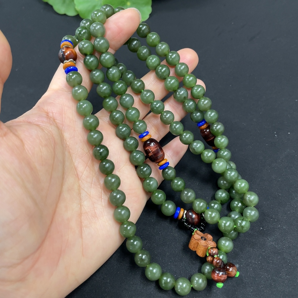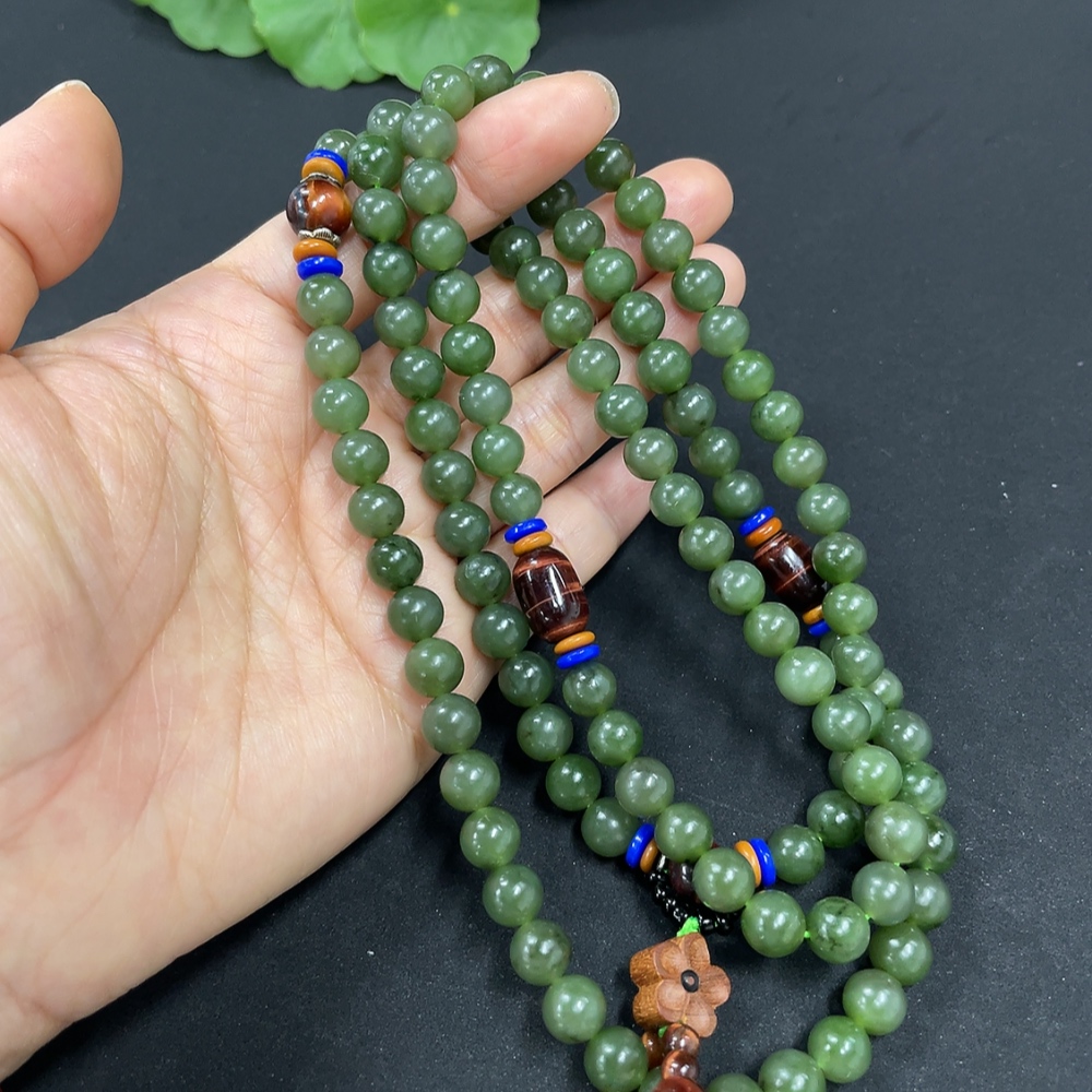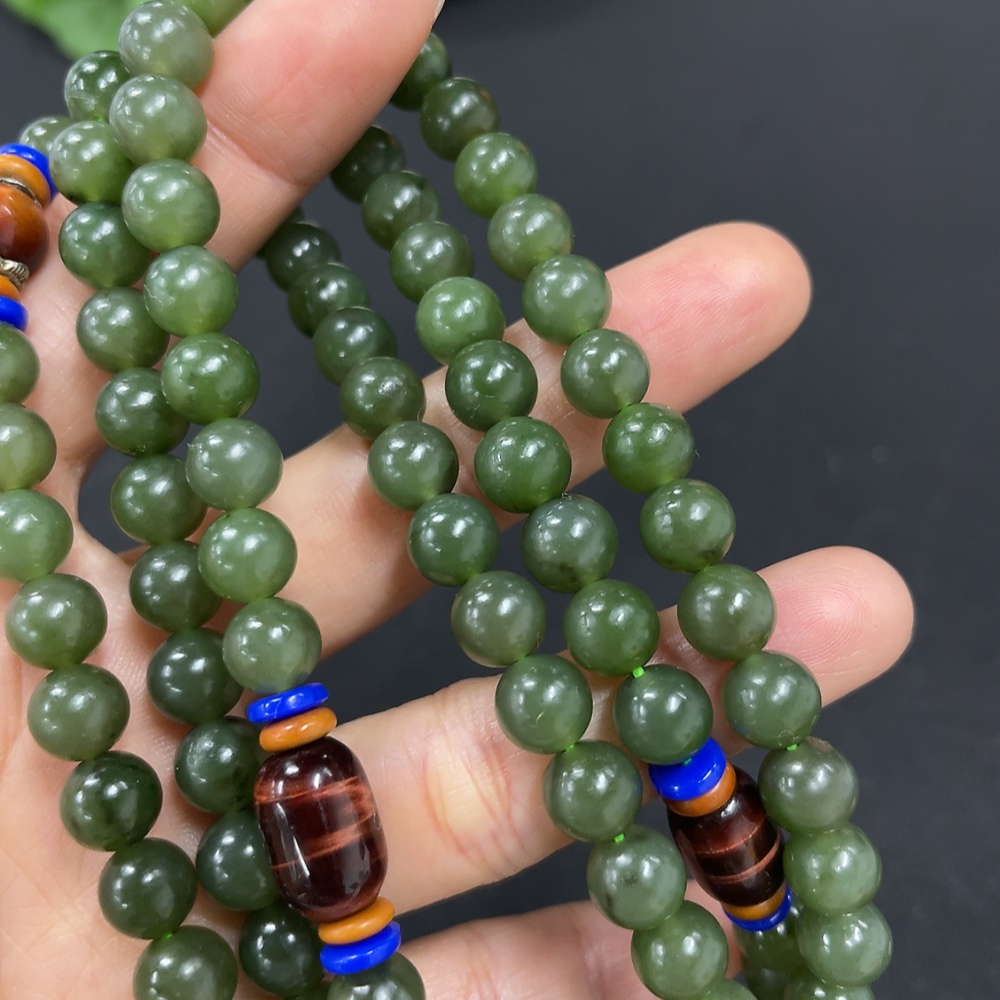 Hetian Jade Bead Necklace, approx. 7.4mm, total weight approx. 76.7g, non-Hetian jade accessory beads
