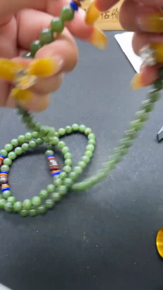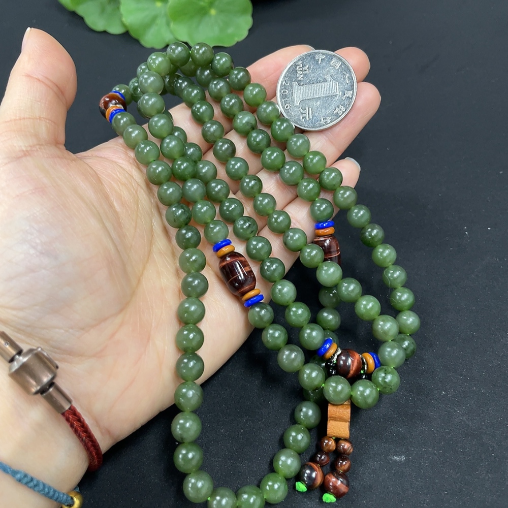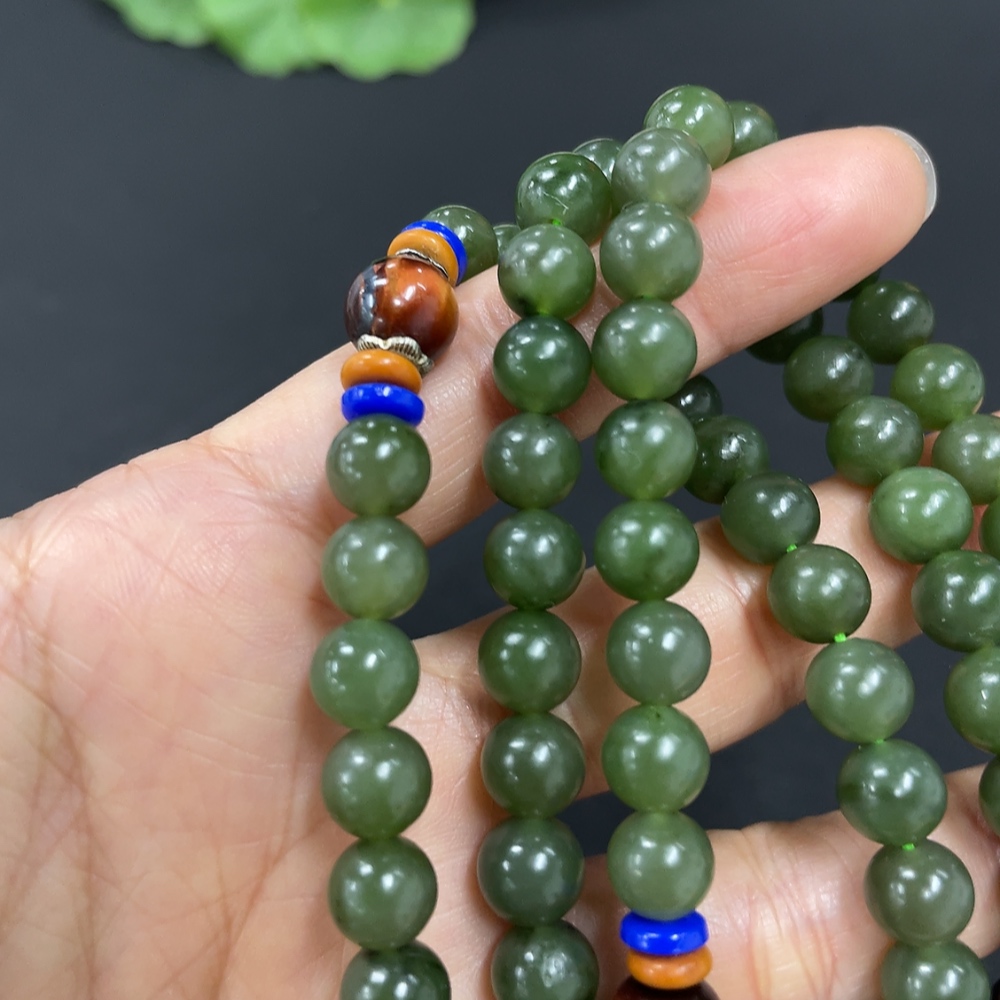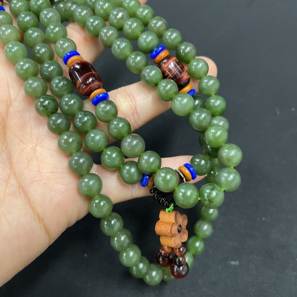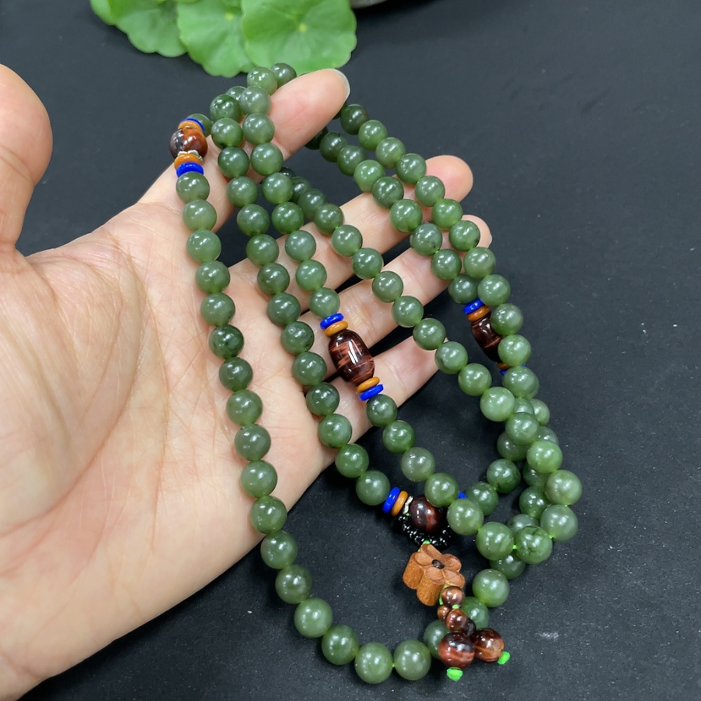 Hetian Jade Bead Necklace, approx. 7.4mm, total weight approx. 76.7g, non-Hetian jade accessory beads