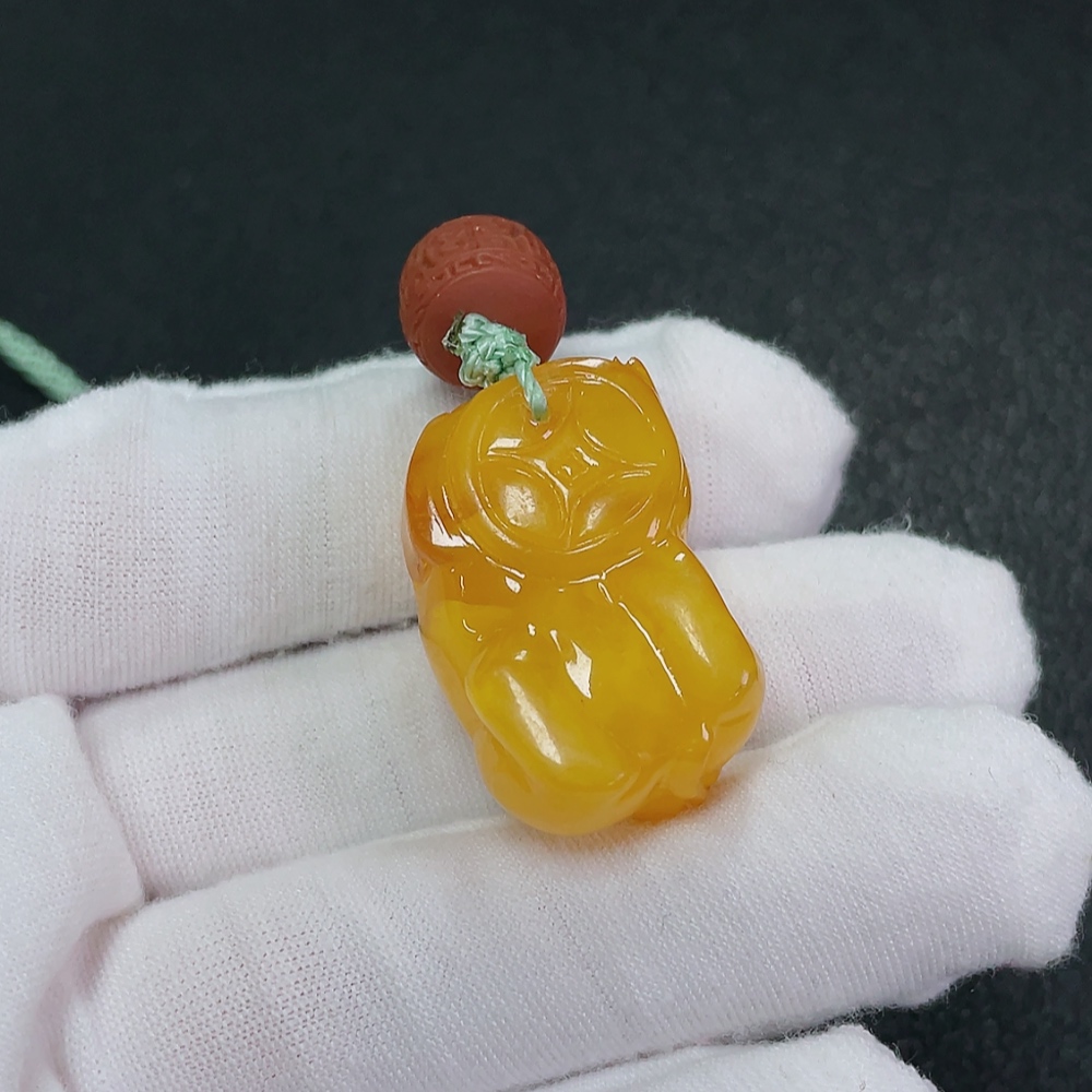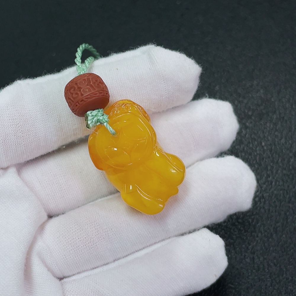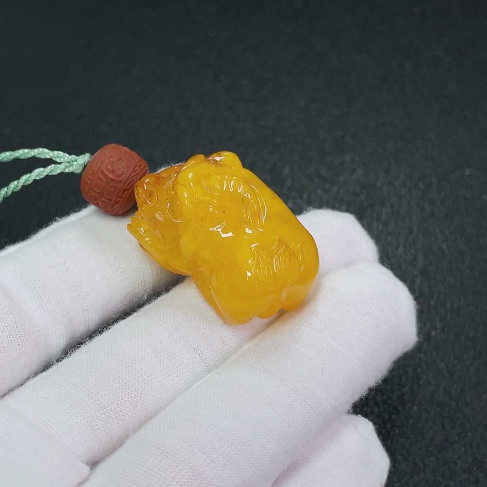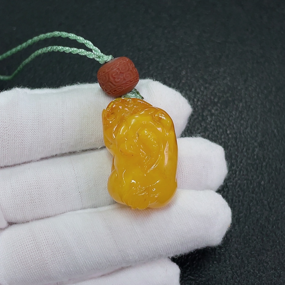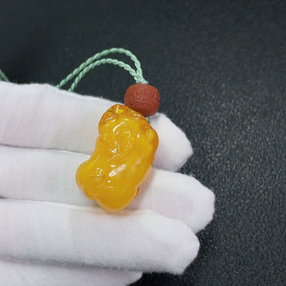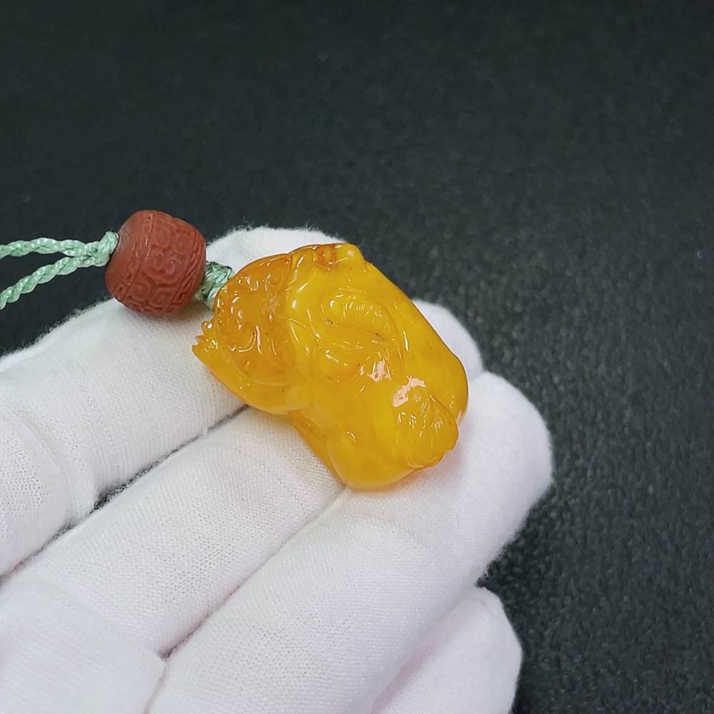 Amber Beeswax Pendant with Colorless Coating, Non-Natural Accent Stones, Non-Gold, Total Weight Approx. 10.14g, Including Cord