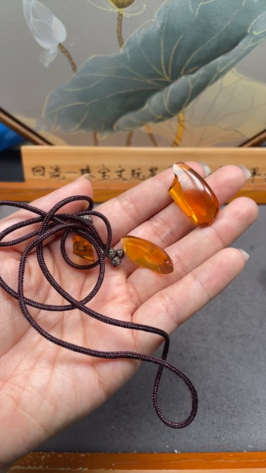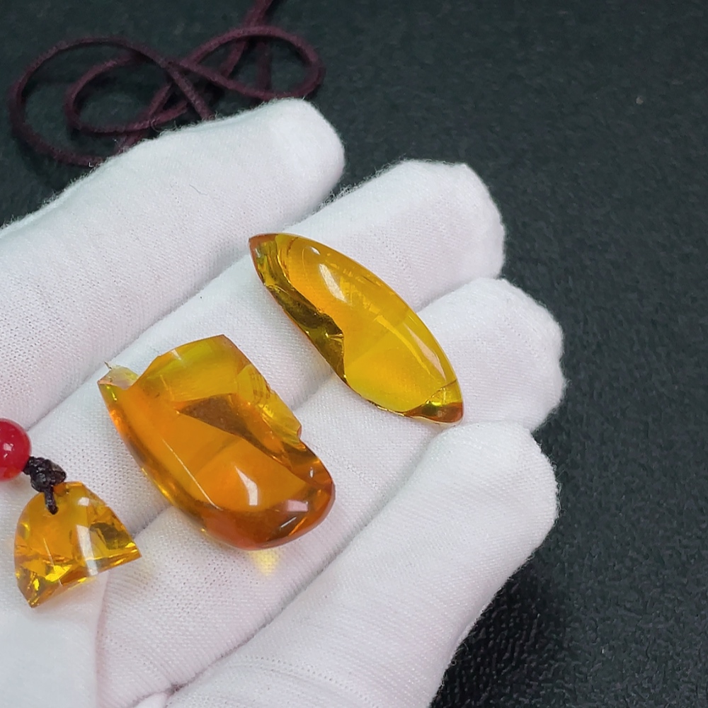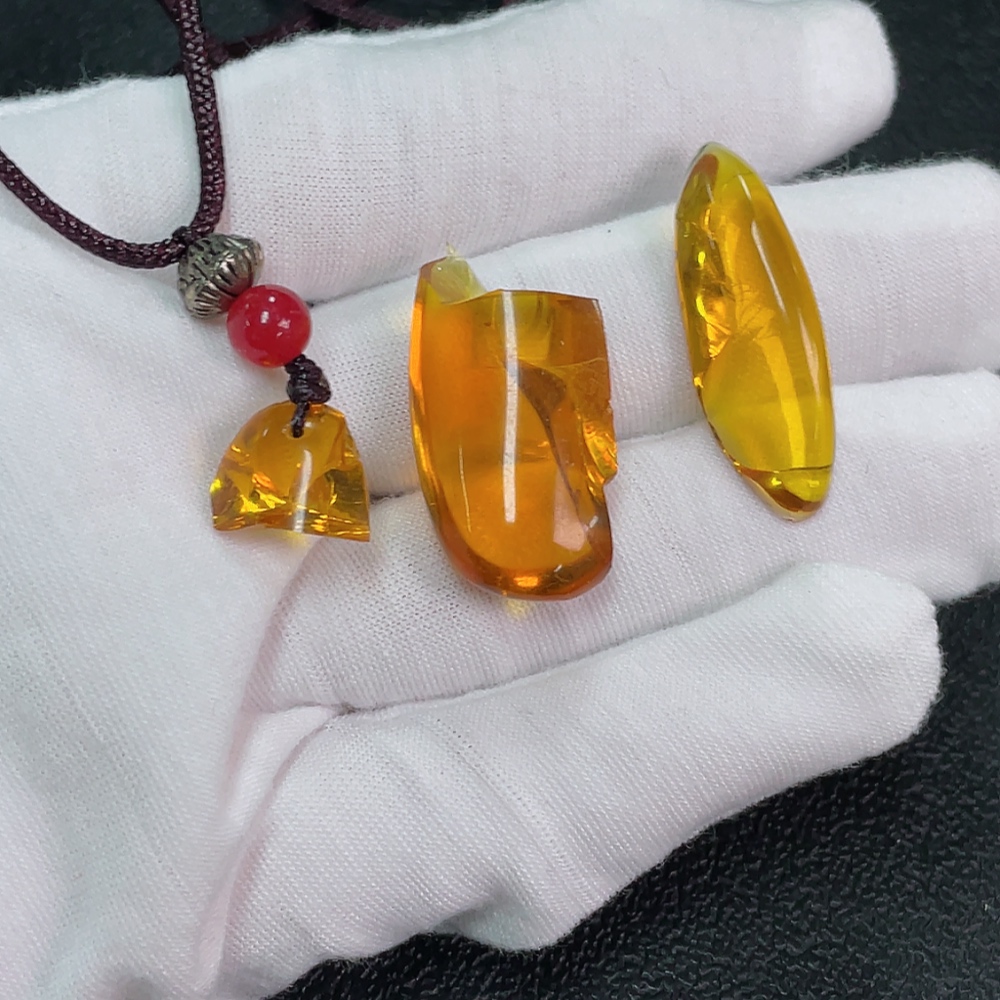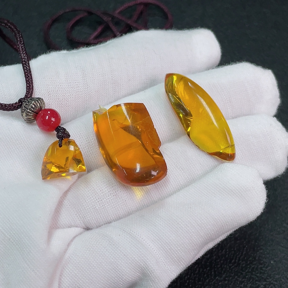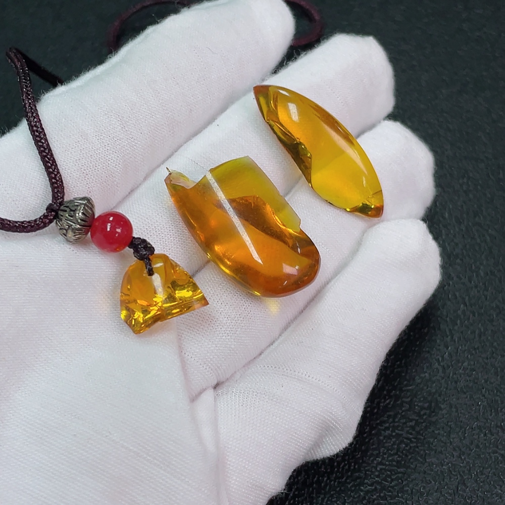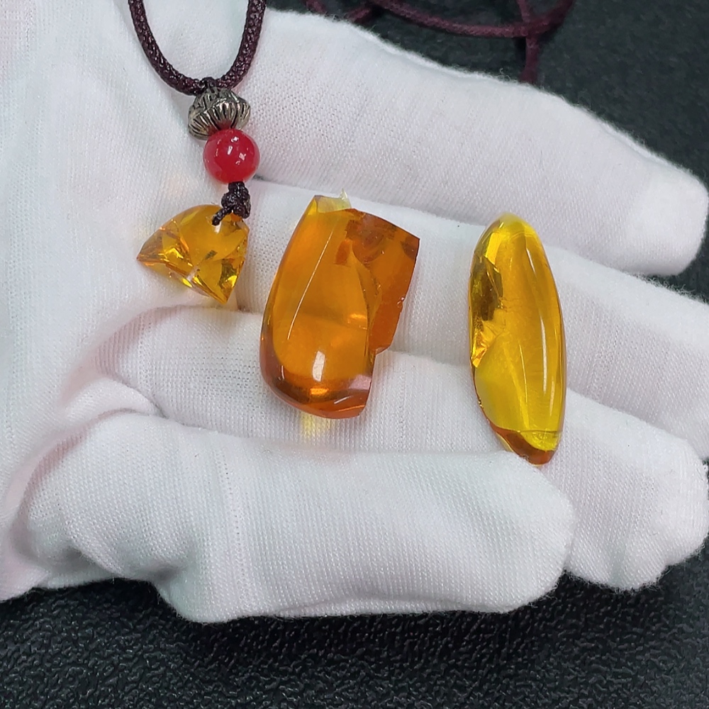 Amber Beeswax Pendant with Damage and Breaks, Non-Natural Accent Stones, Non-Gold, Total Weight Approximately 6.68g Including Cord