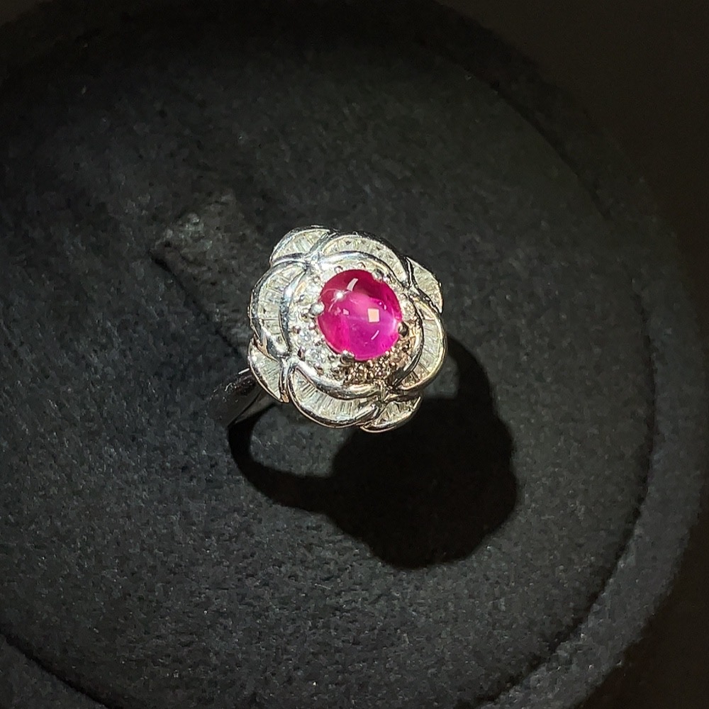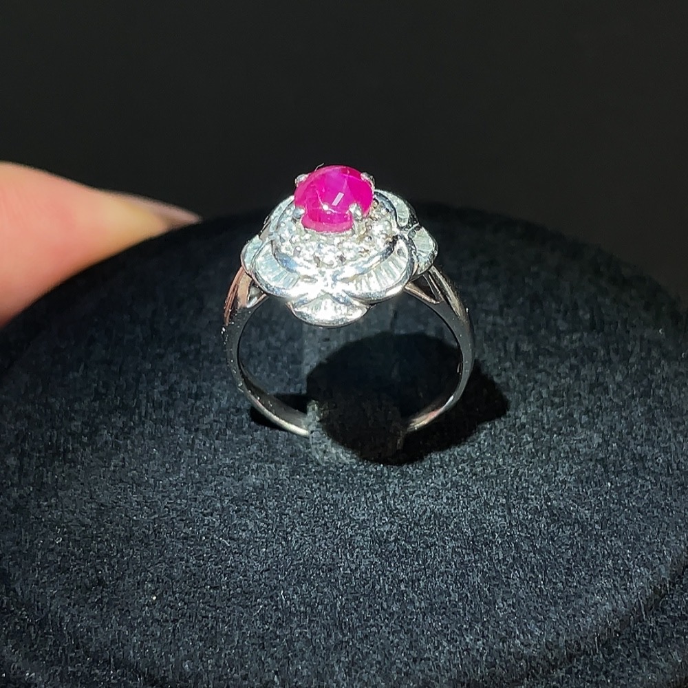 Ruby Inlaid Ring Pt900 Size 10 Total Weight Approx. 5.45g With Diamond Accents