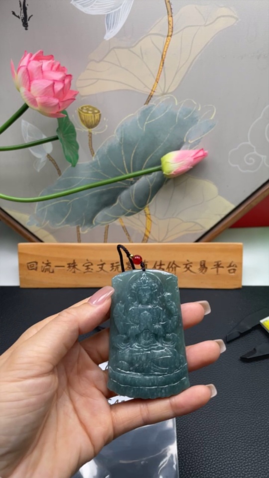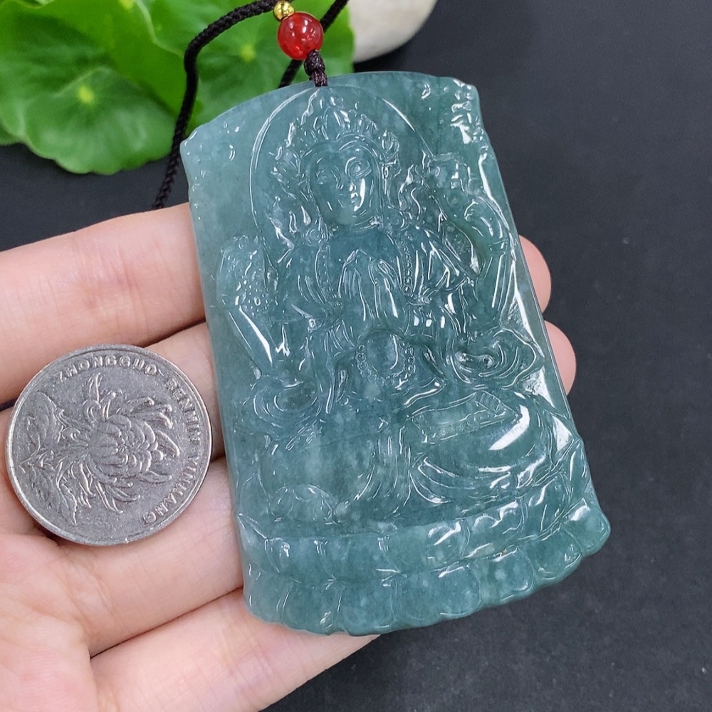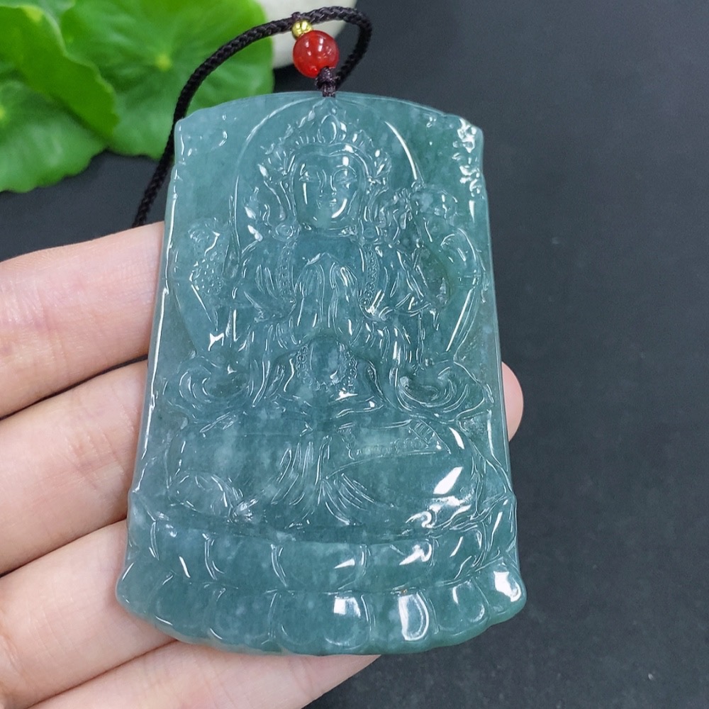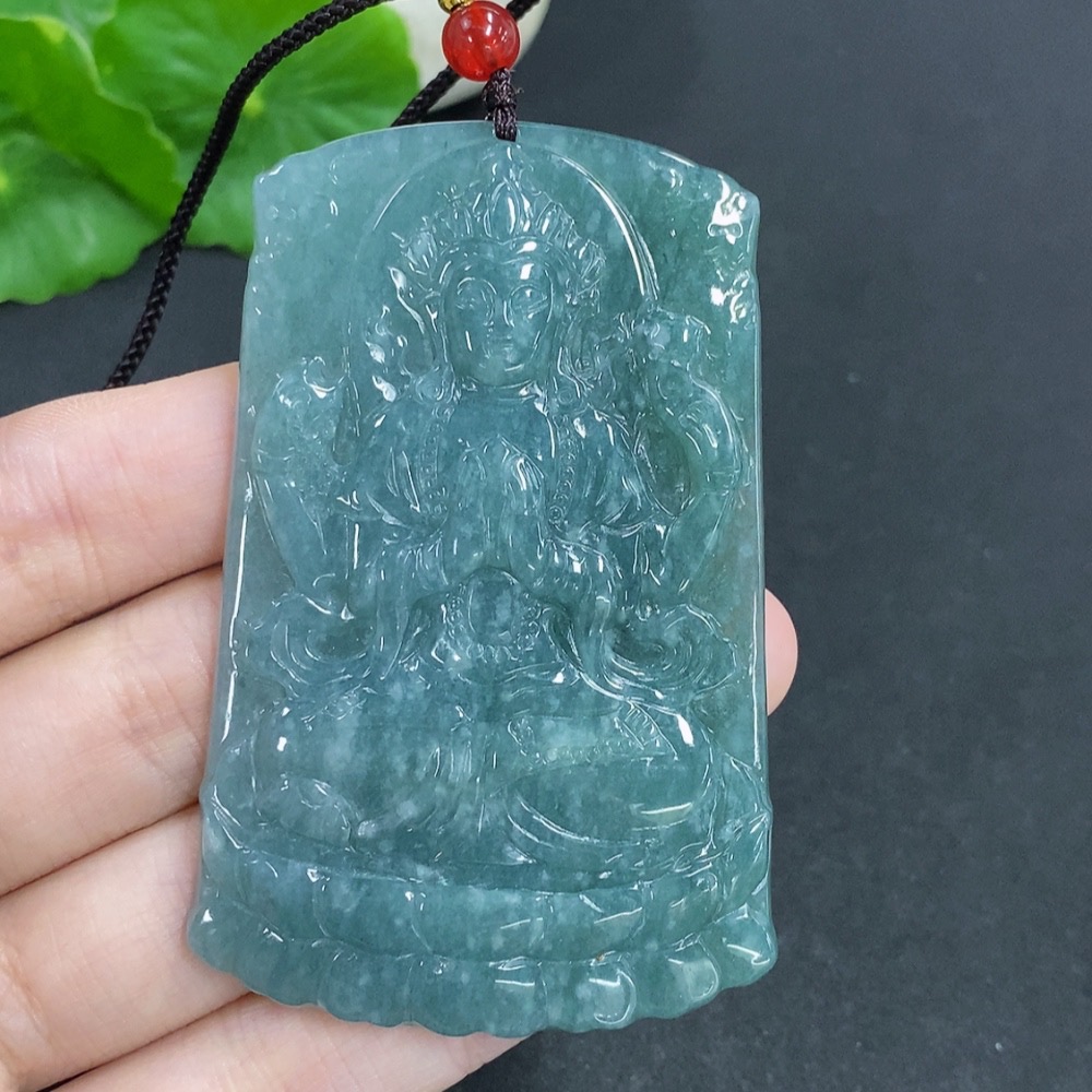 Jadeite Guanyin Pendant Total Weight Approx. 42.8g (including rope weight)