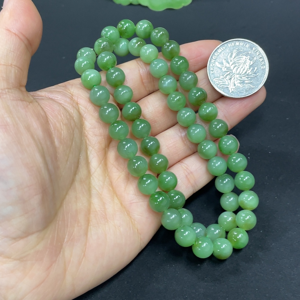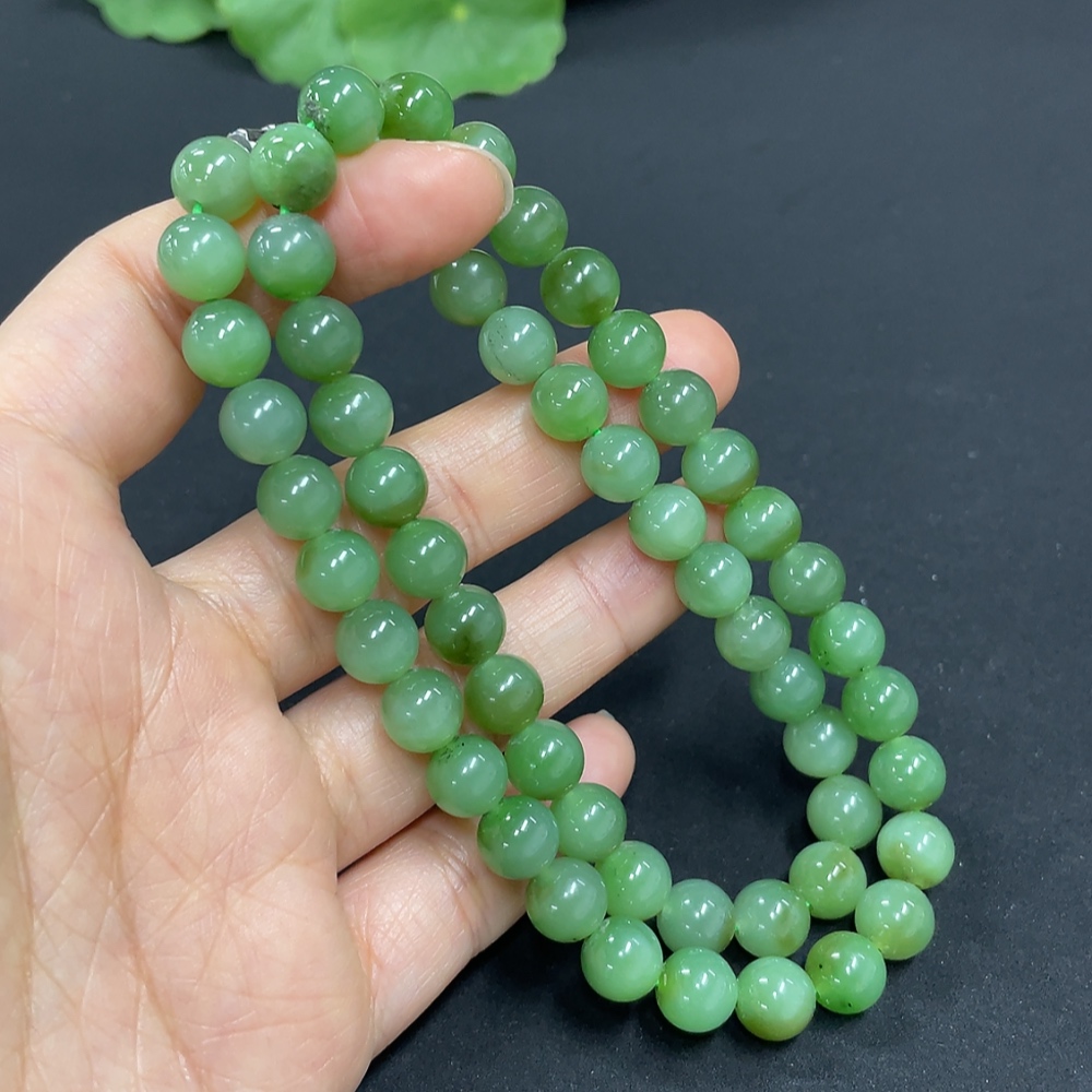Hetian Jade Jasper Bead Necklace, Approx. 7.8mm, Total Weight Approx. 44.5g