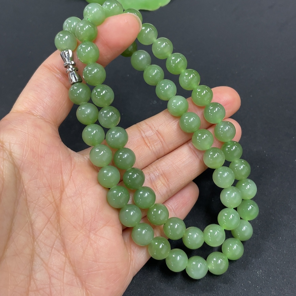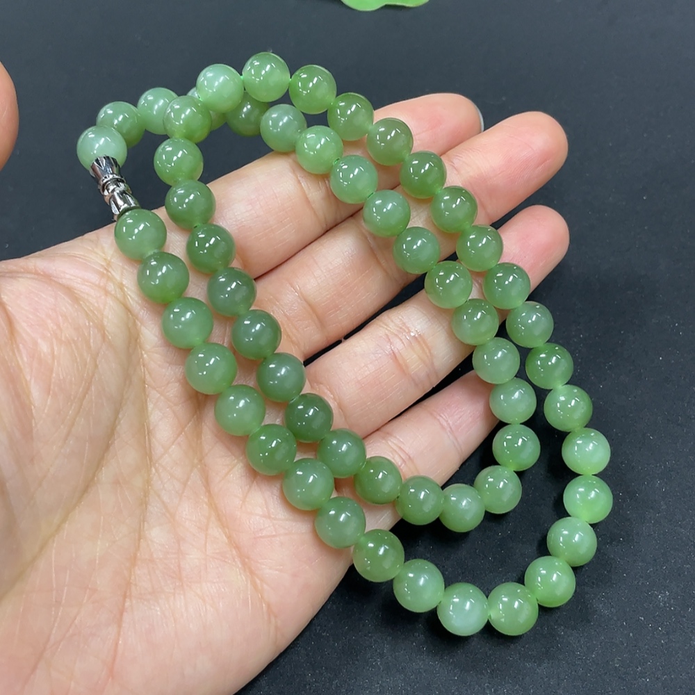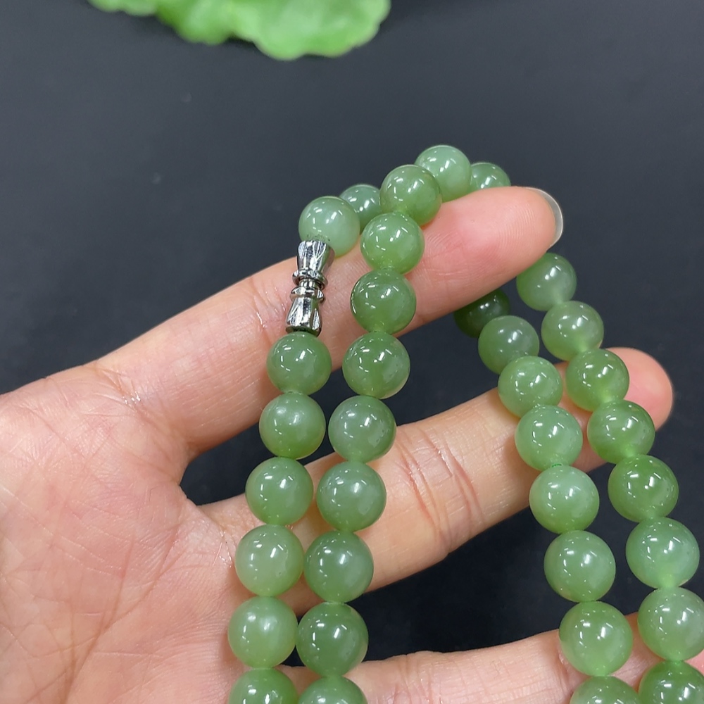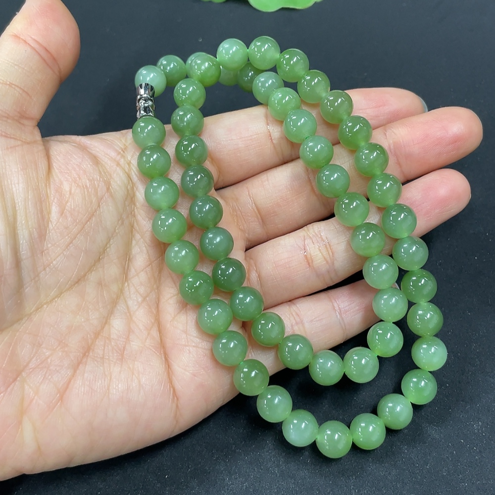 Hetian Jade Jasper Bead Necklace, Approx. 7.6mm, Total Weight Approx. 43.5g