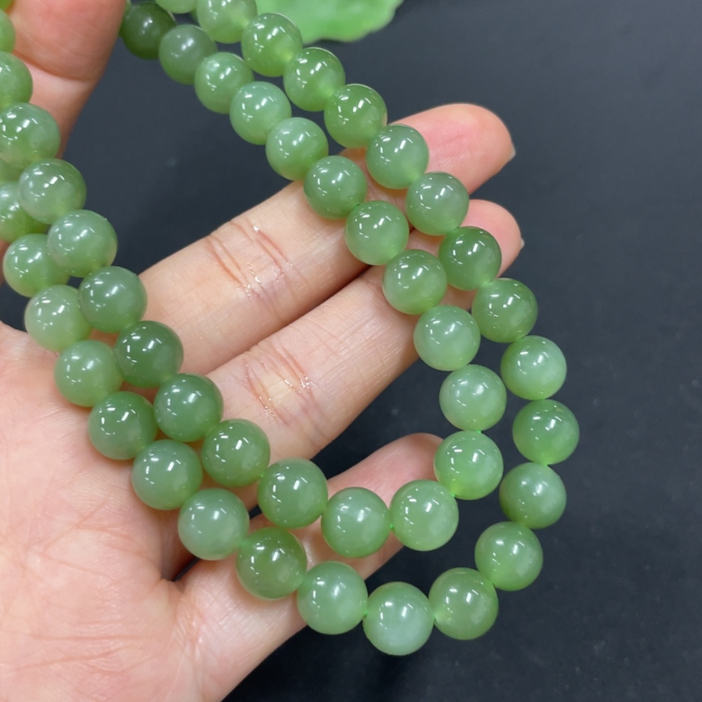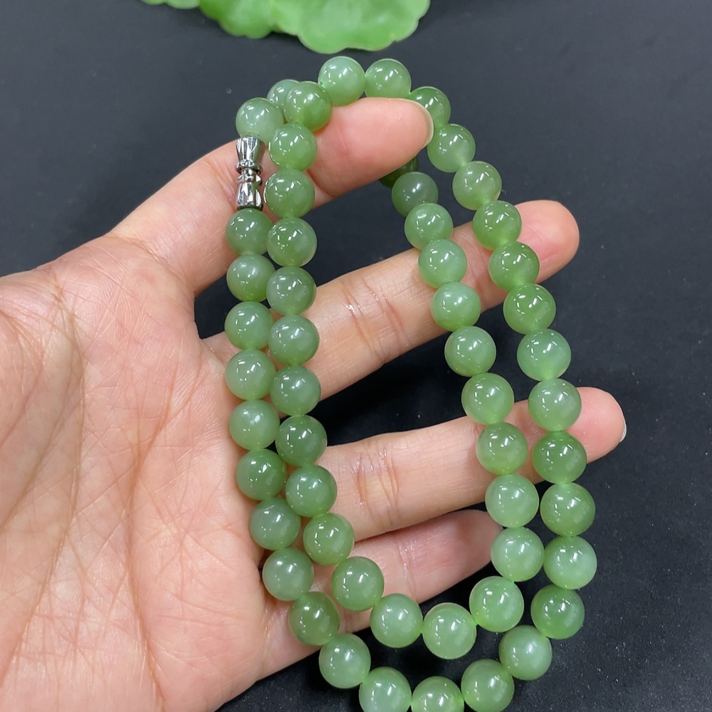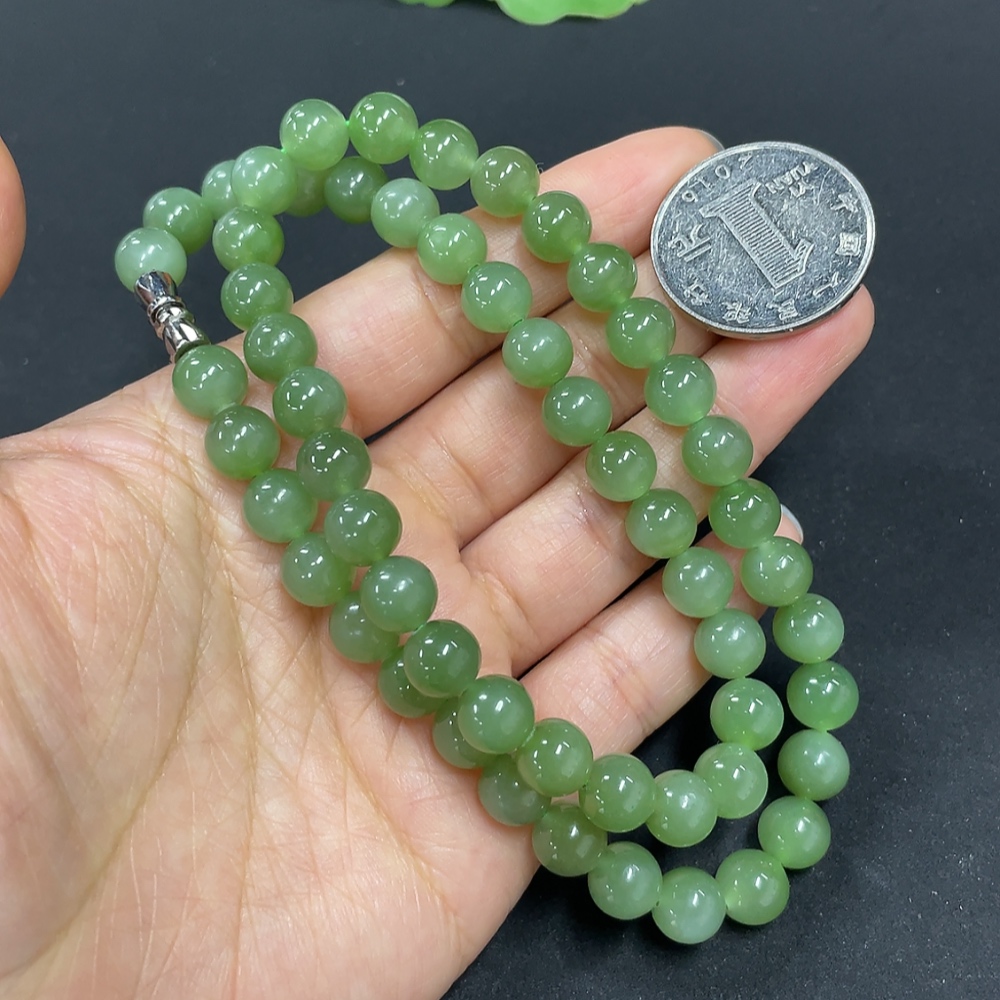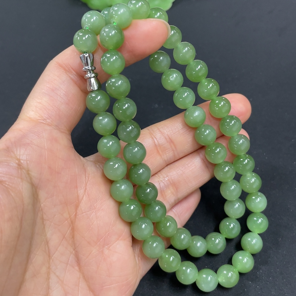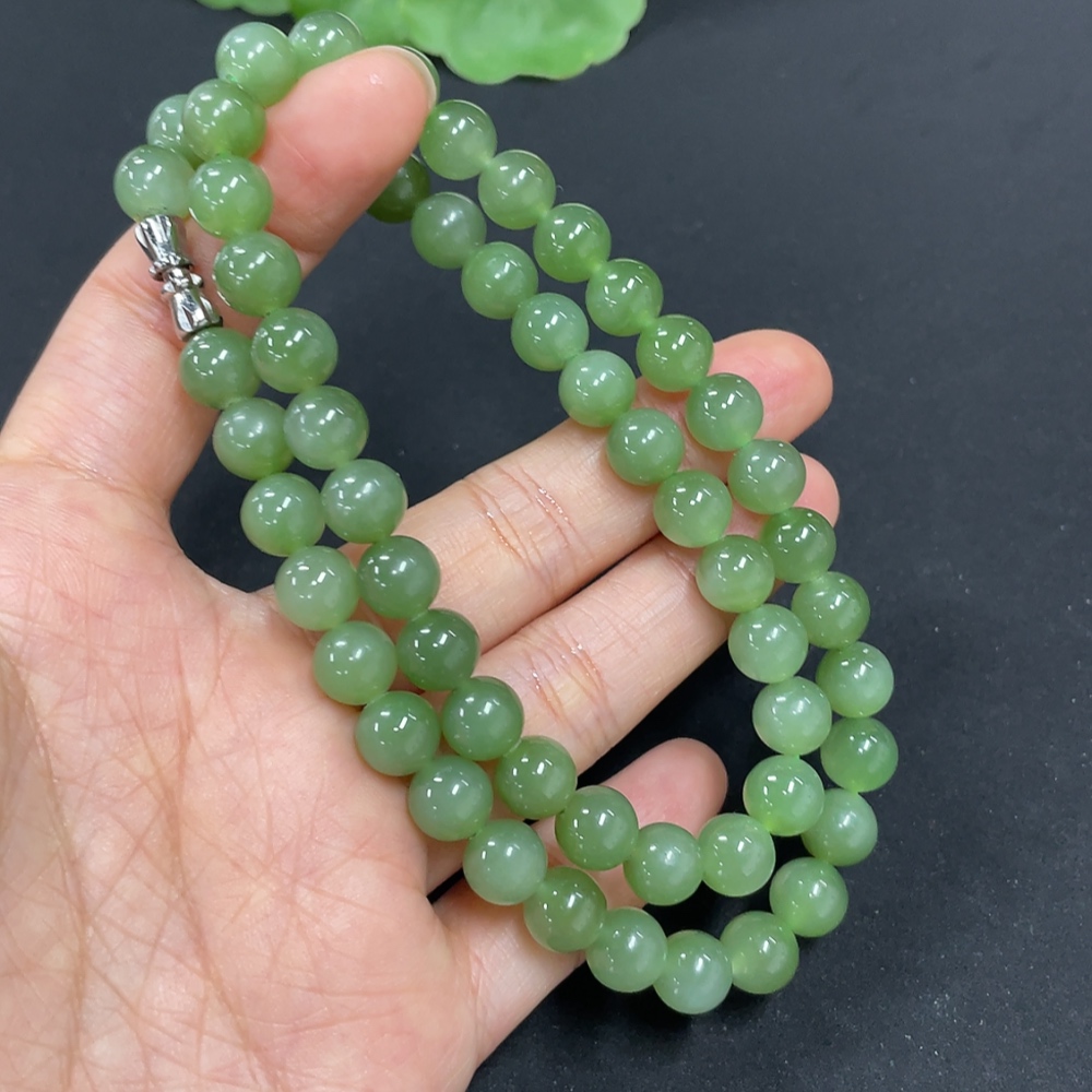 Hetian Jade Jasper Bead Necklace, Approx. 7.6mm, Total Weight Approx. 43.5g