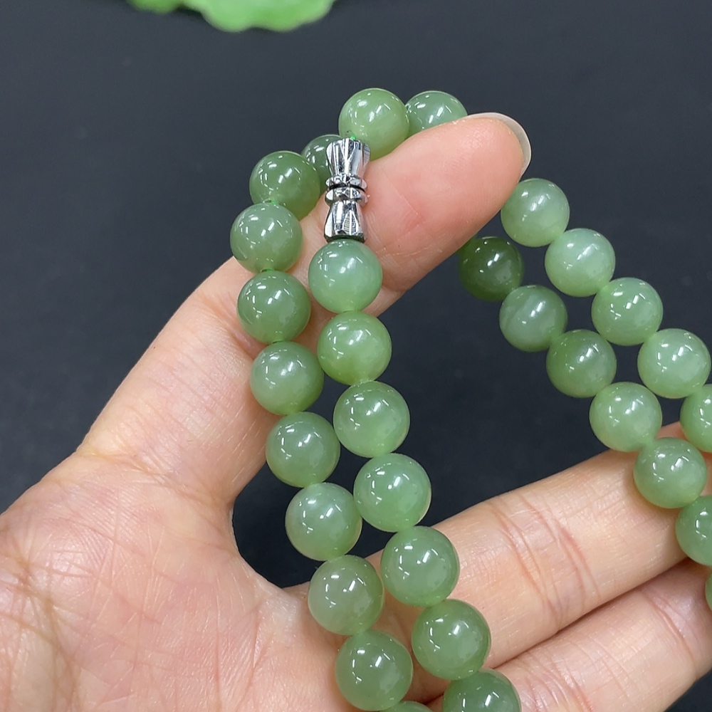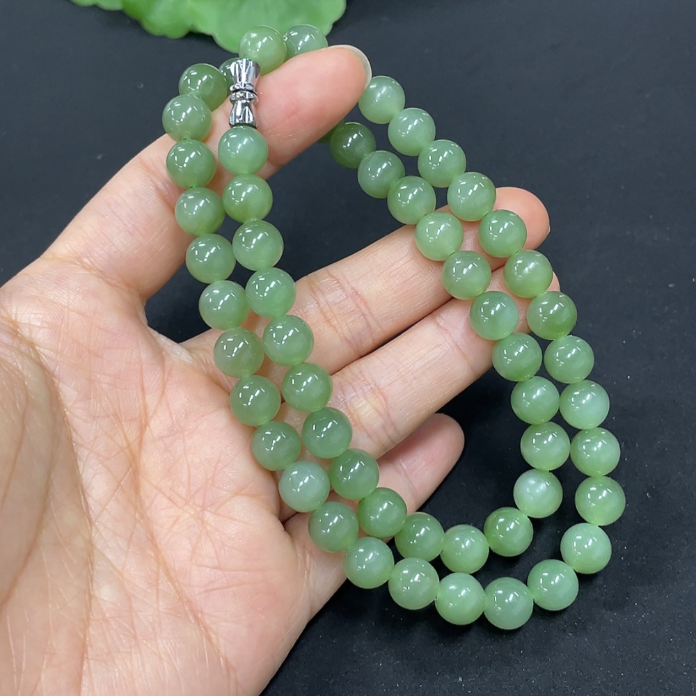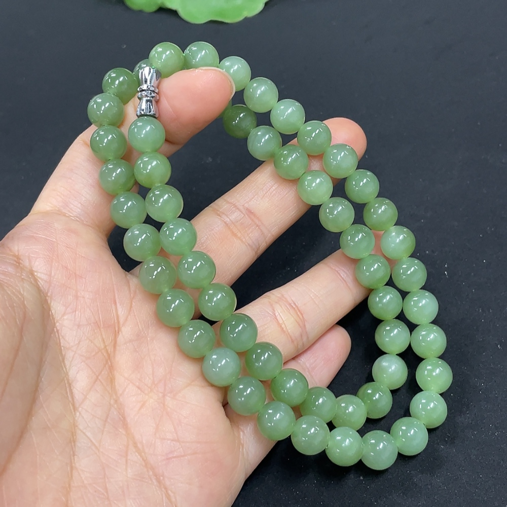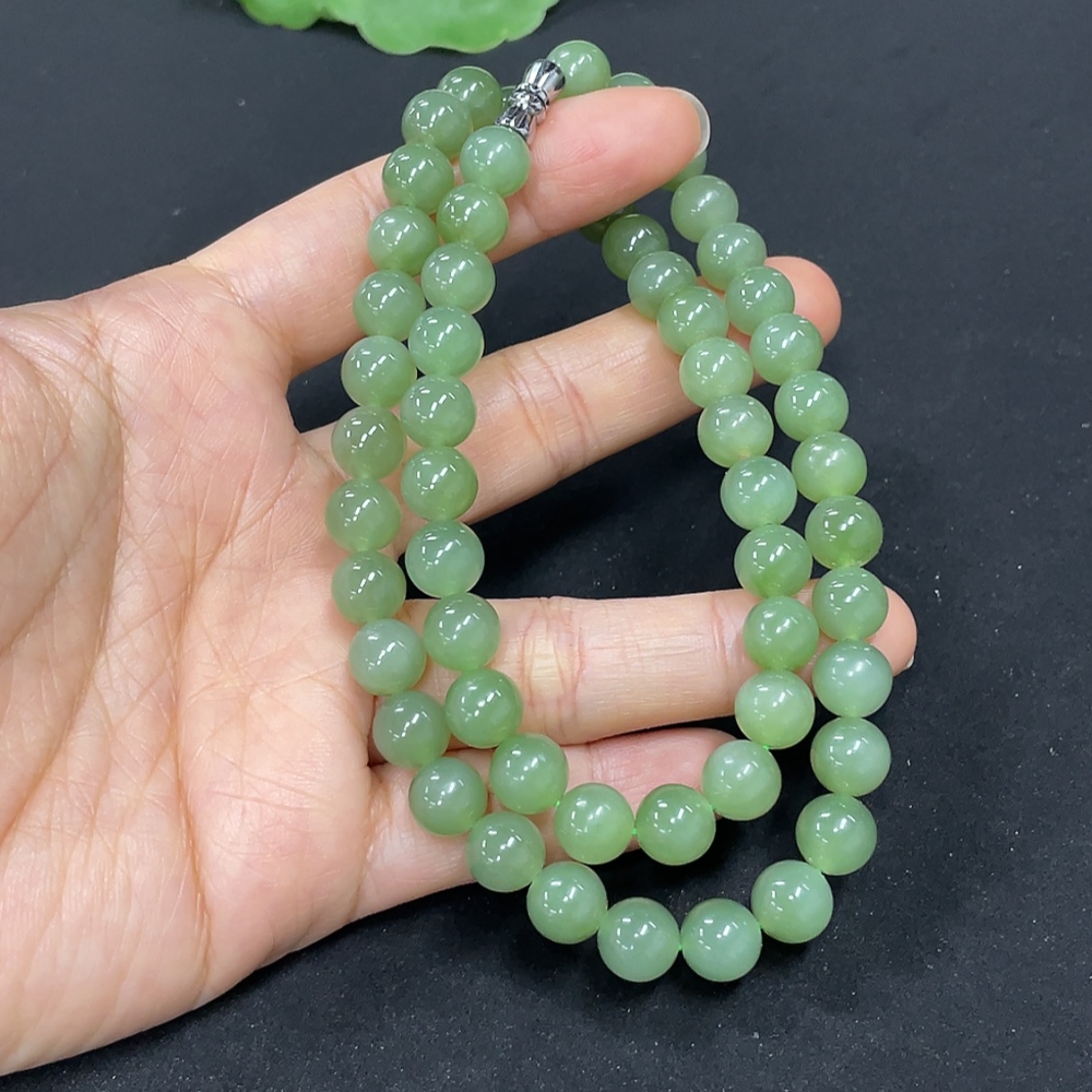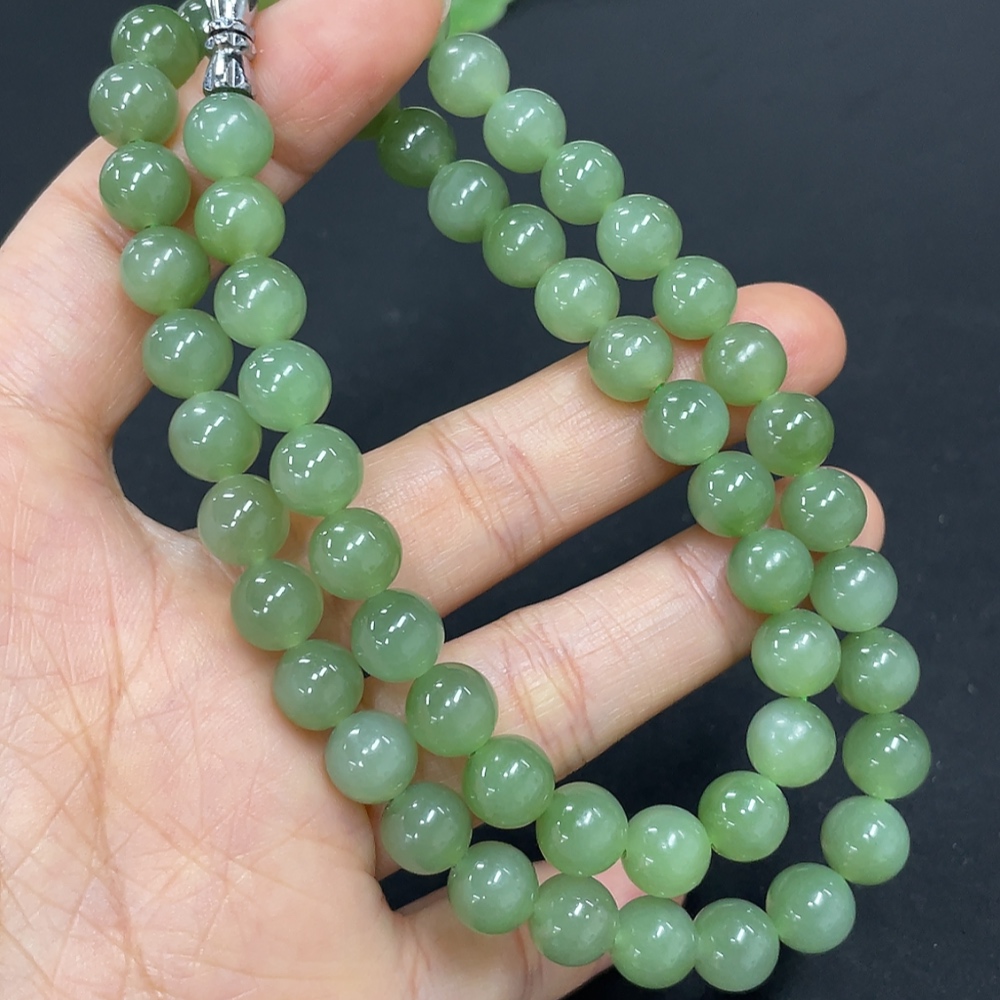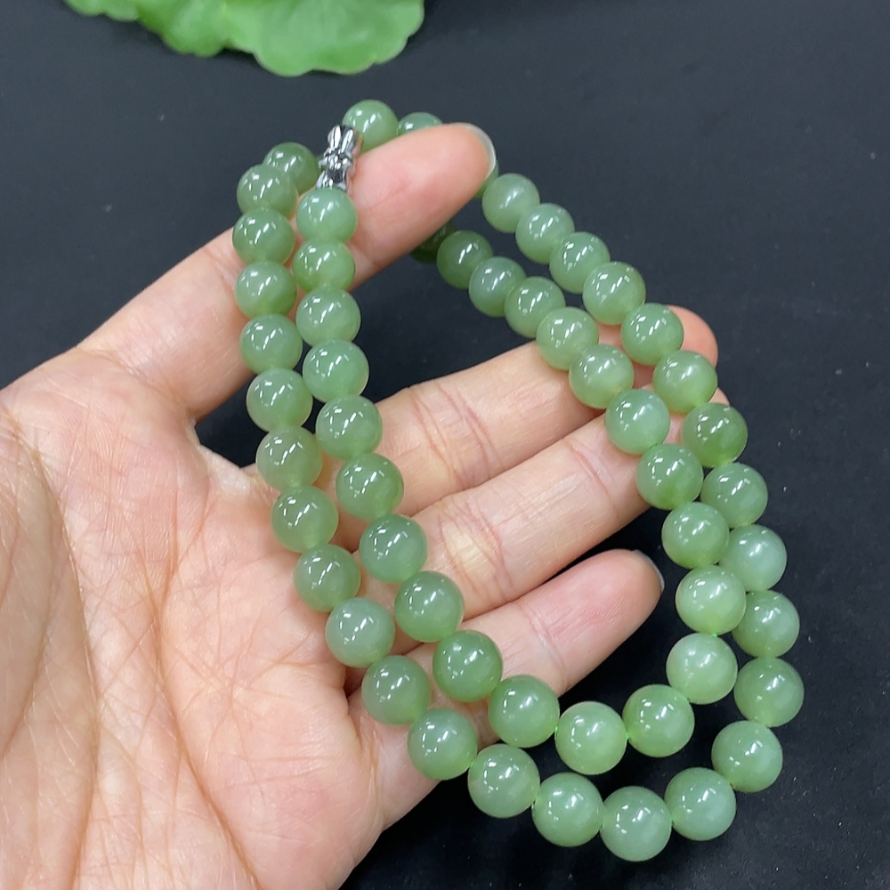 Hetian Jade Jasper Bead Necklace, approx. 7.6mm, total weight approx. 43.3g