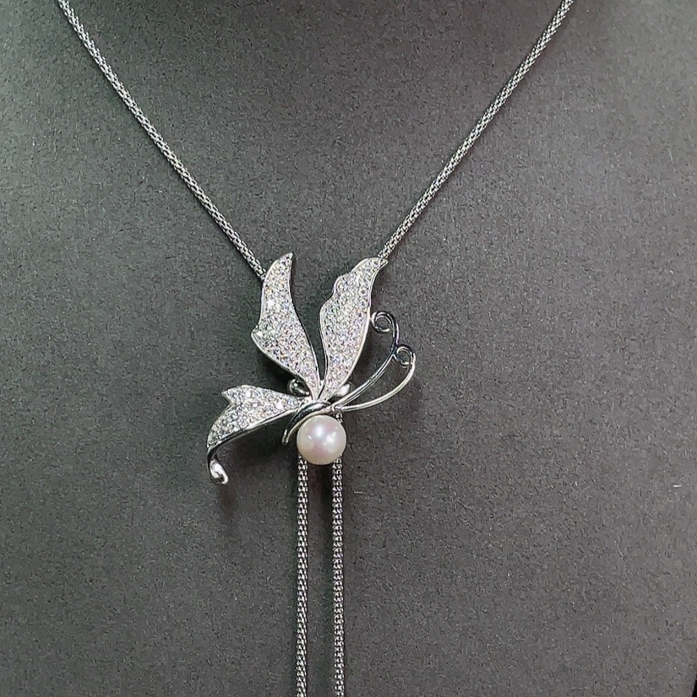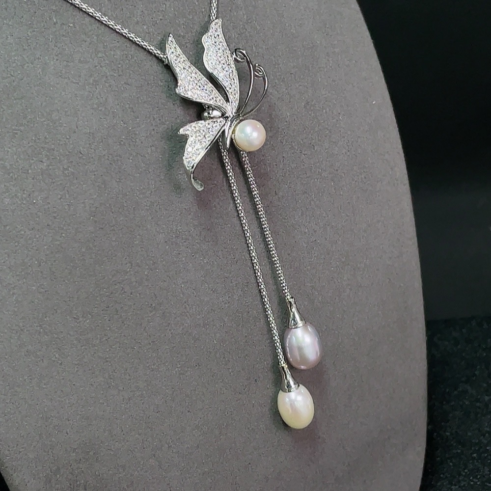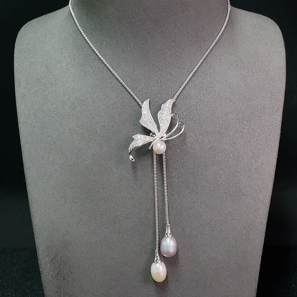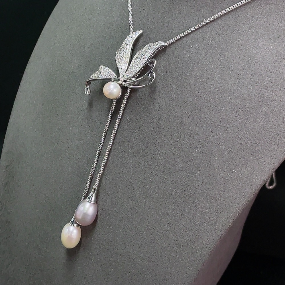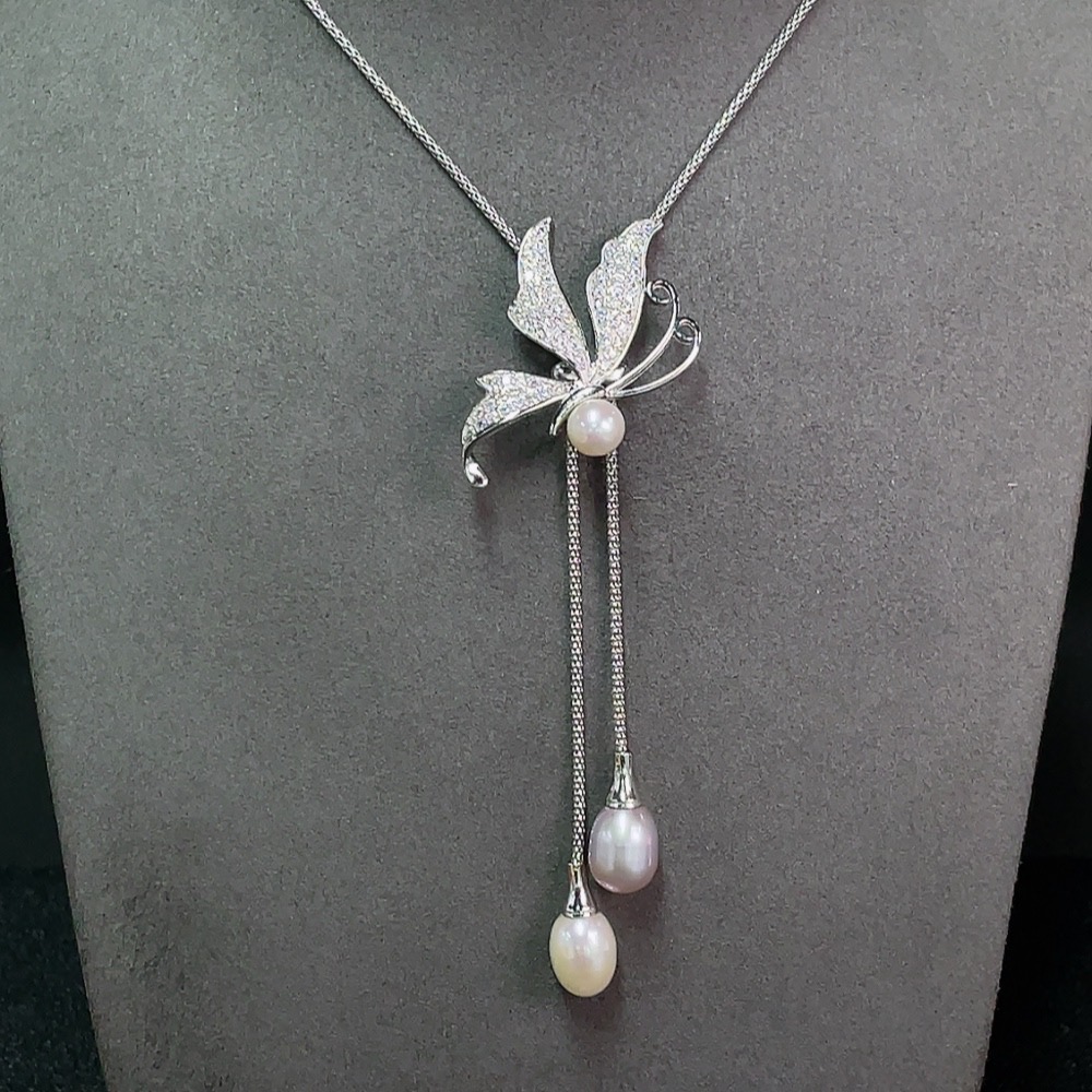 Pearl Inlaid Necklace Non-Gold Setting Approx. 7.5-9.4mm Total Weight Including Chain Approx. 15.52g
