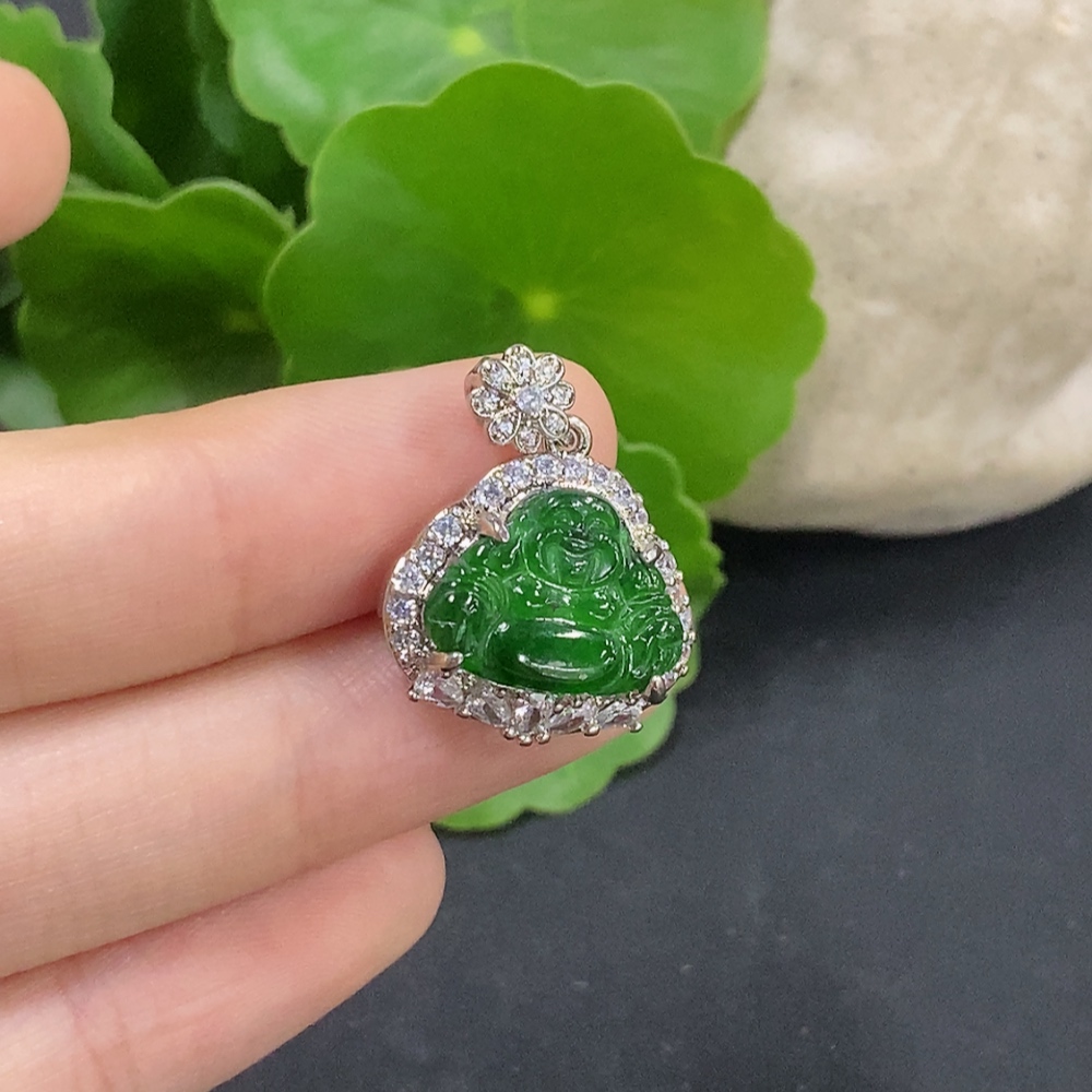 Jadeite Pendant Buddha Non-Gold Total Weight Approx. 3.47g
