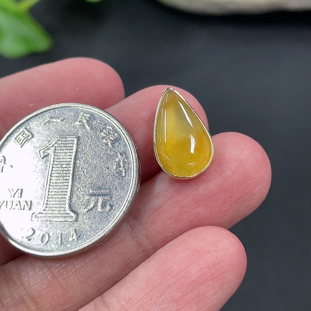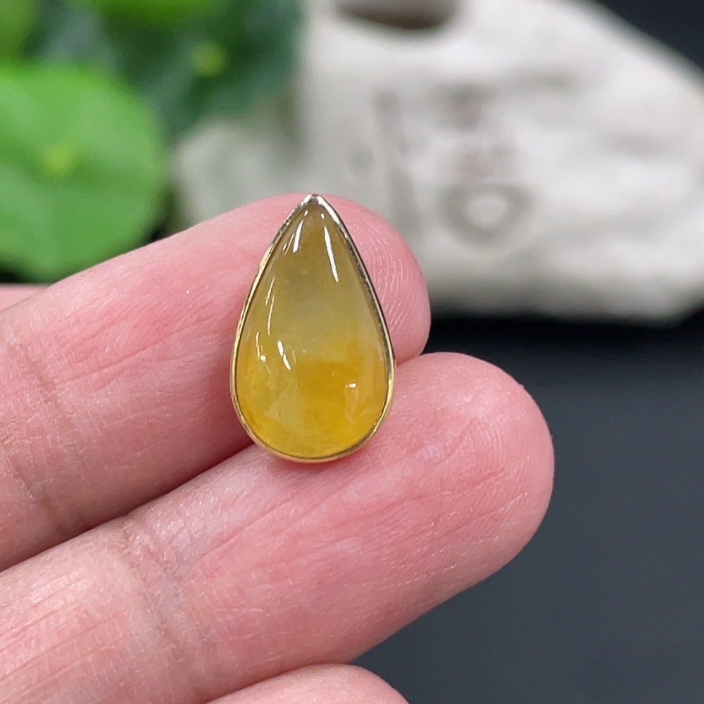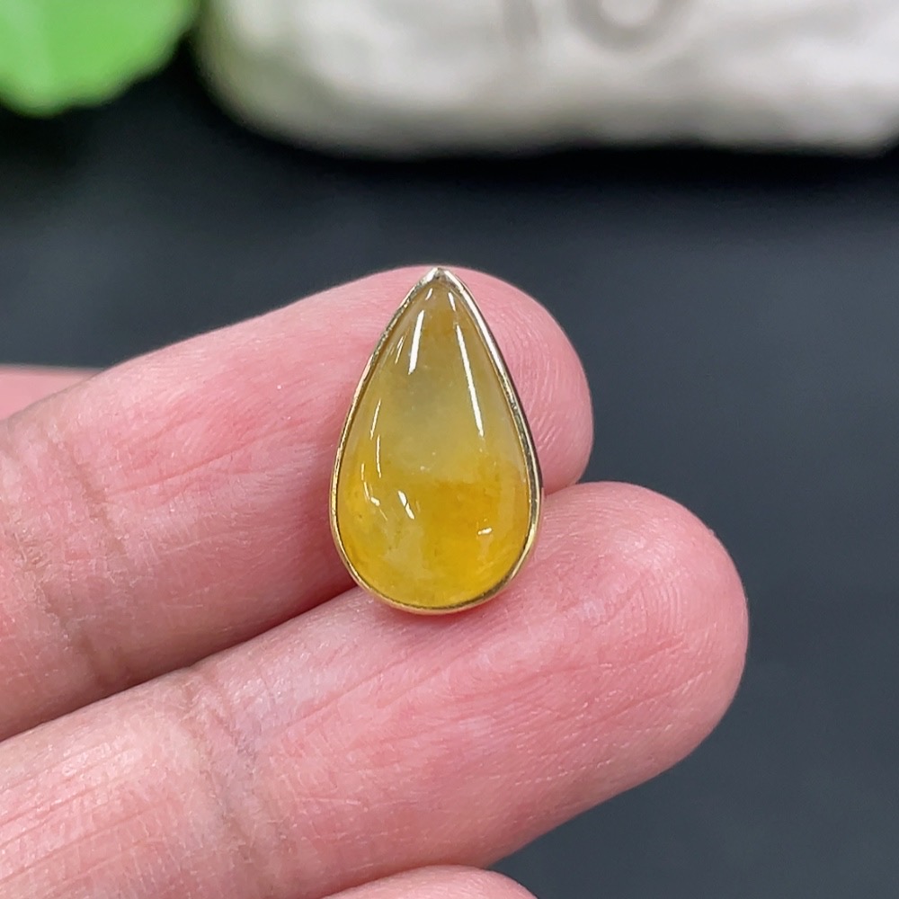 Jadeite Water Drop Pendant 18K Gold Inlaid Total Weight Approx. 1.33g Overall Size