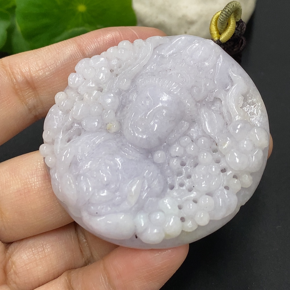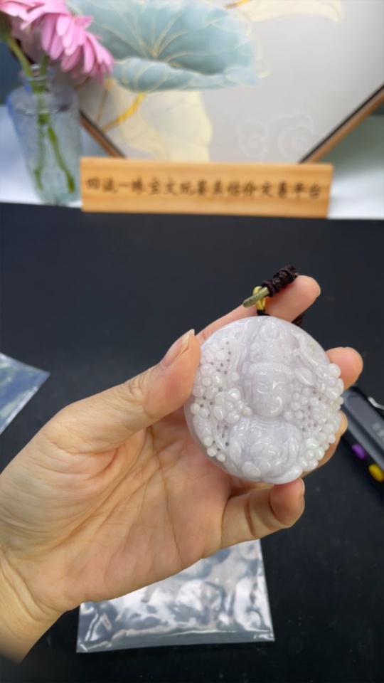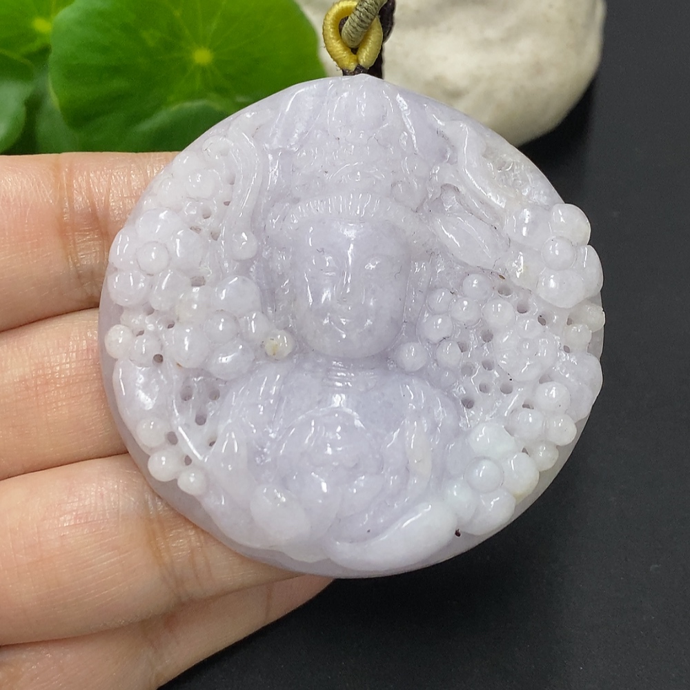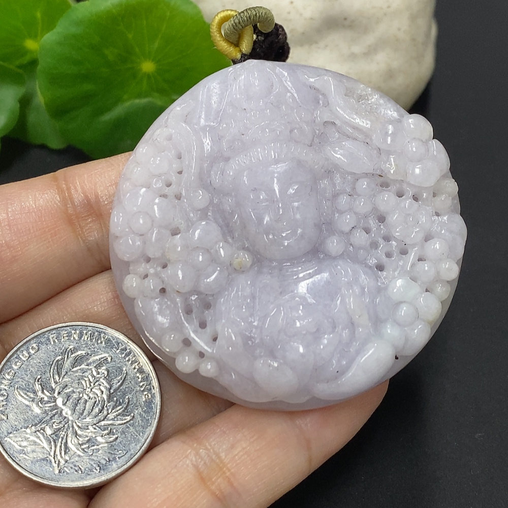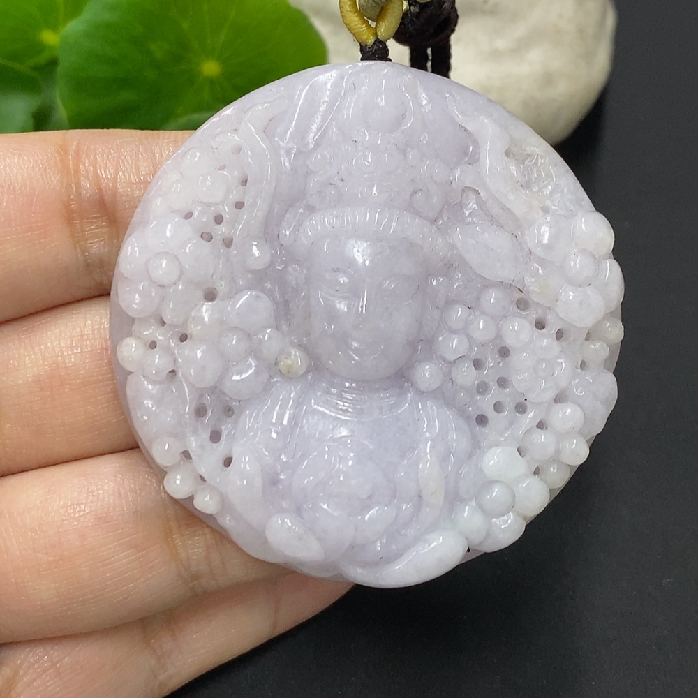 Jadeite Guanyin Pendant, Total Weight Approximately 64.7g