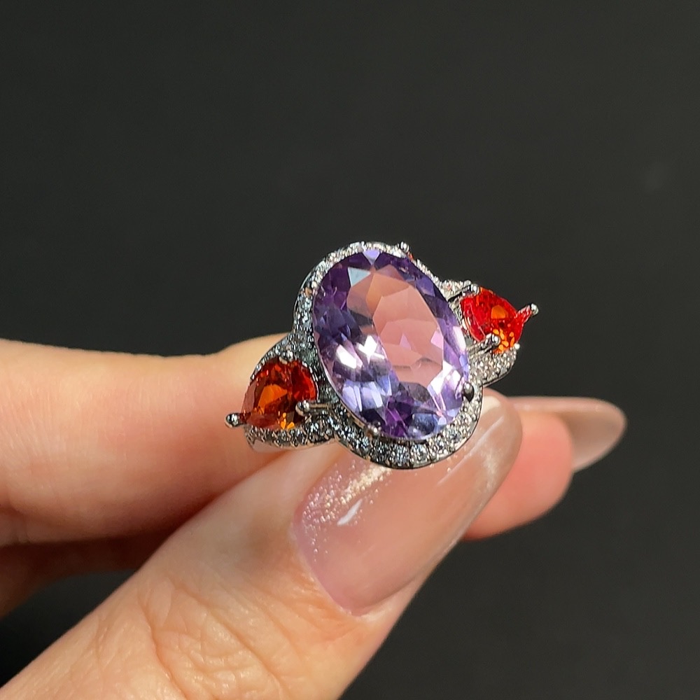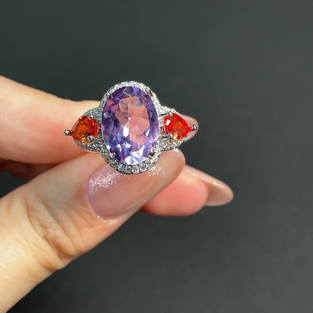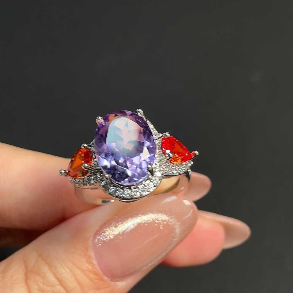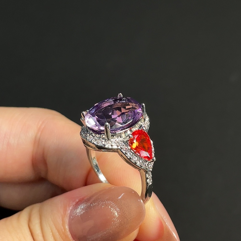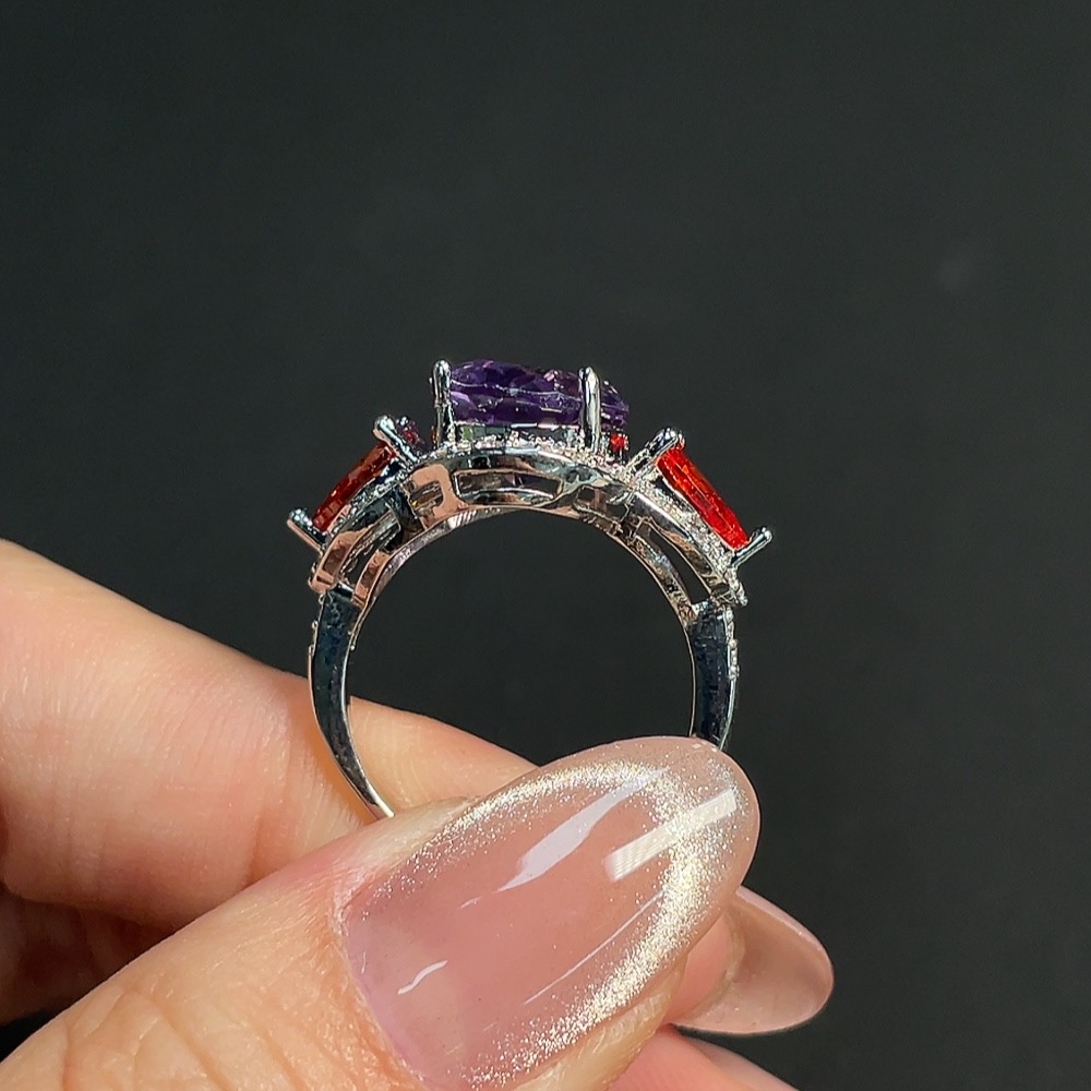 Crystal Inlaid Ring, Non-Gold Setting, Adjustable, Total Weight Approx. 4.5g, Accent Stones May Be Non-Natural