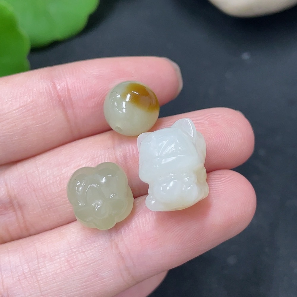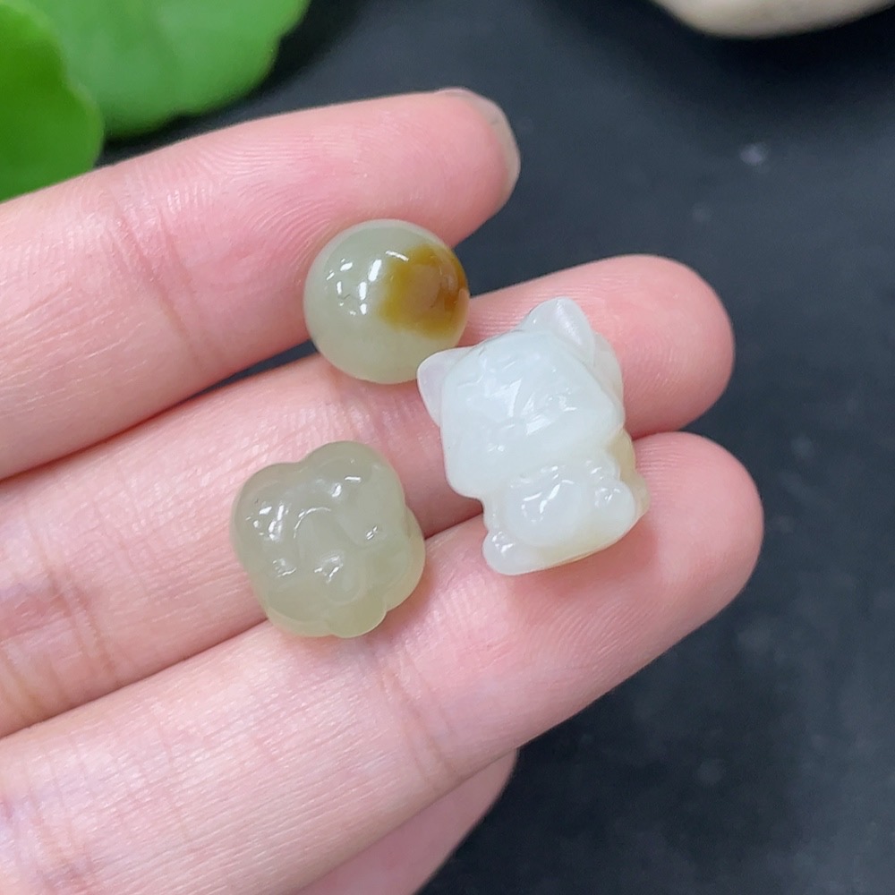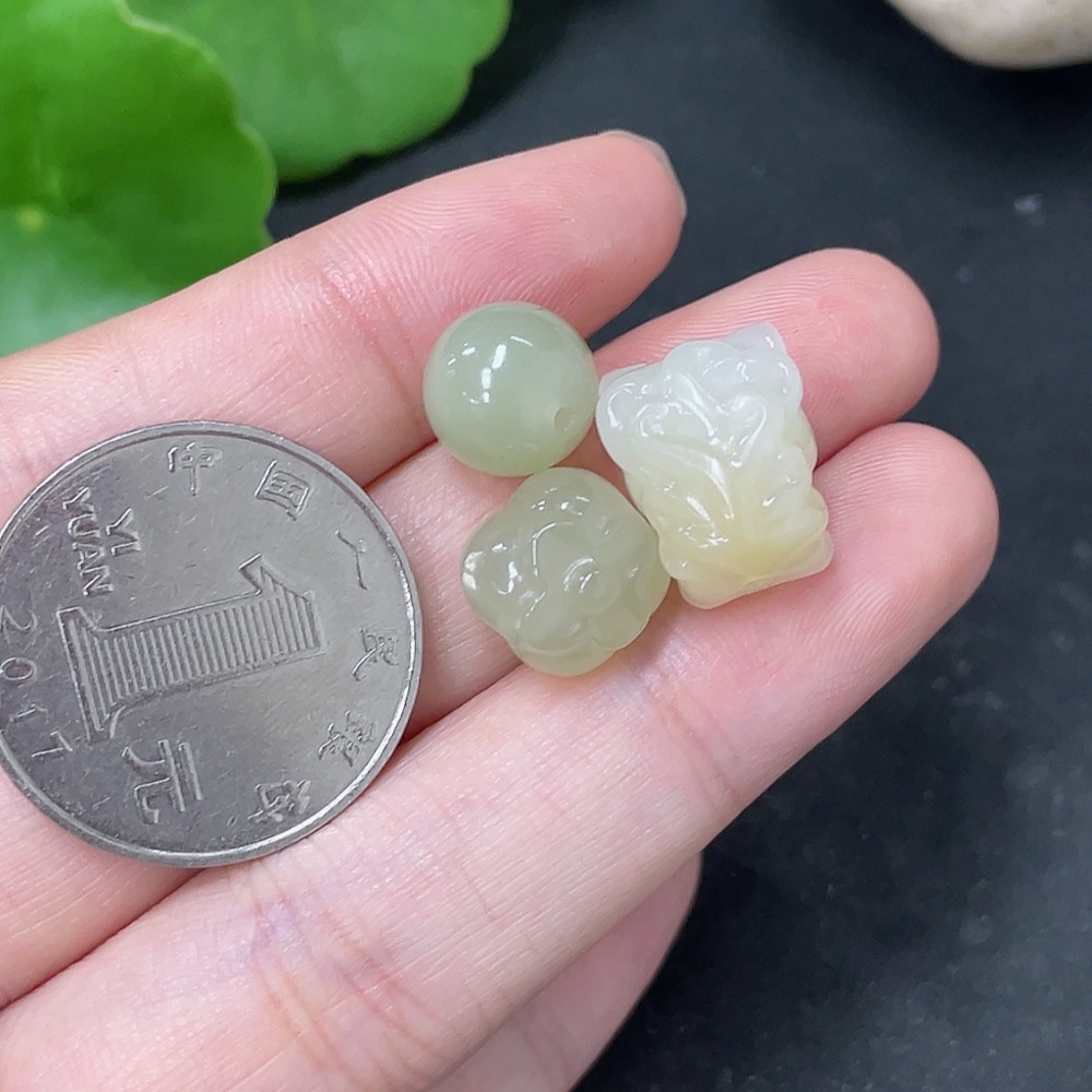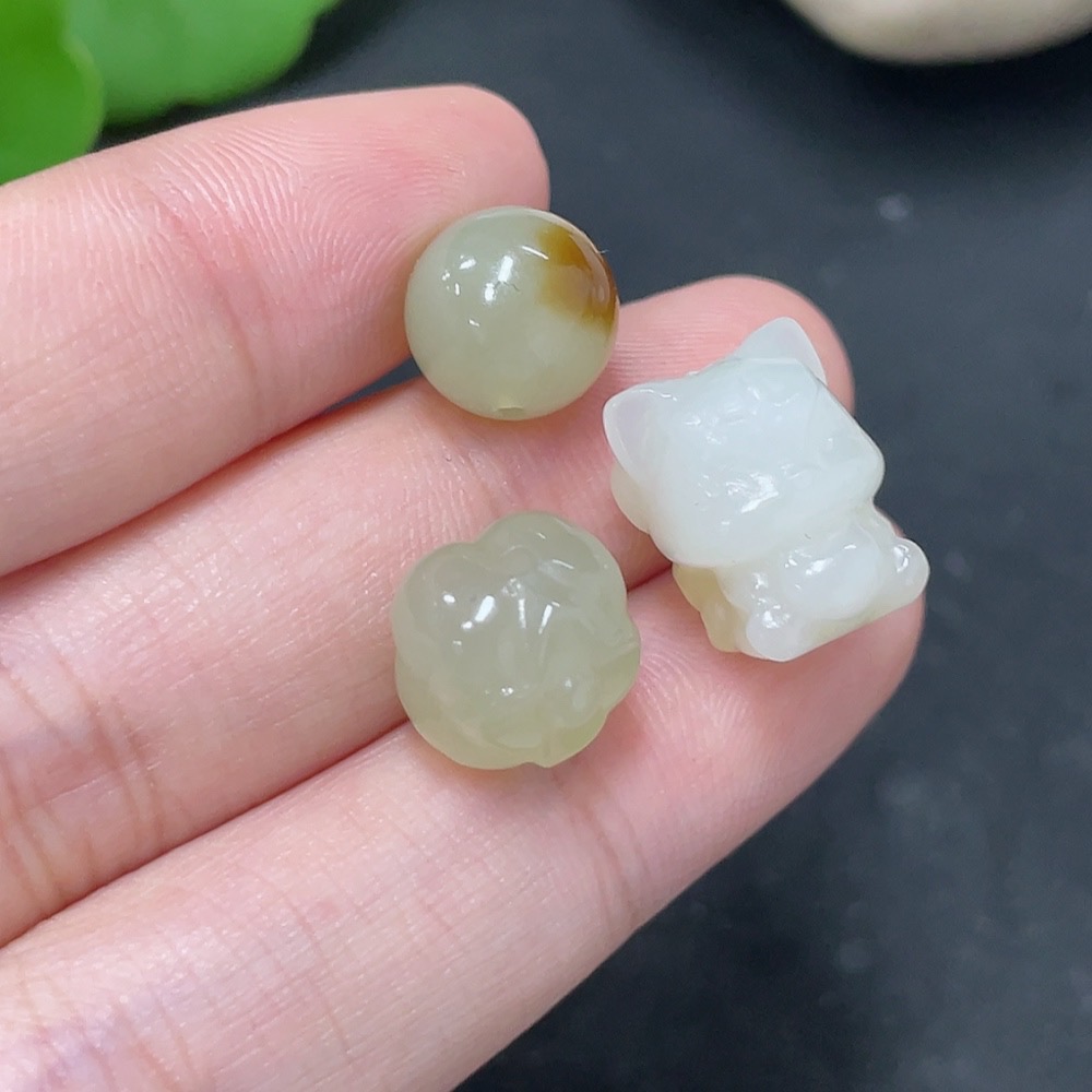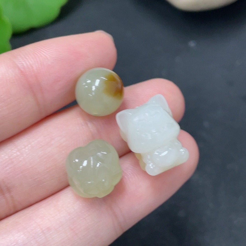Hetian Jade Loose Beads Total Weight Approx. 6.2g