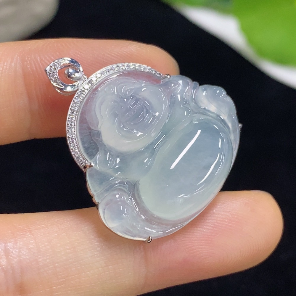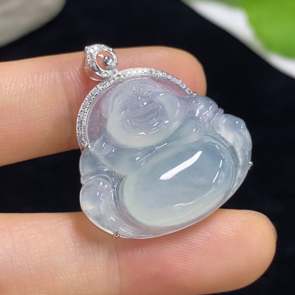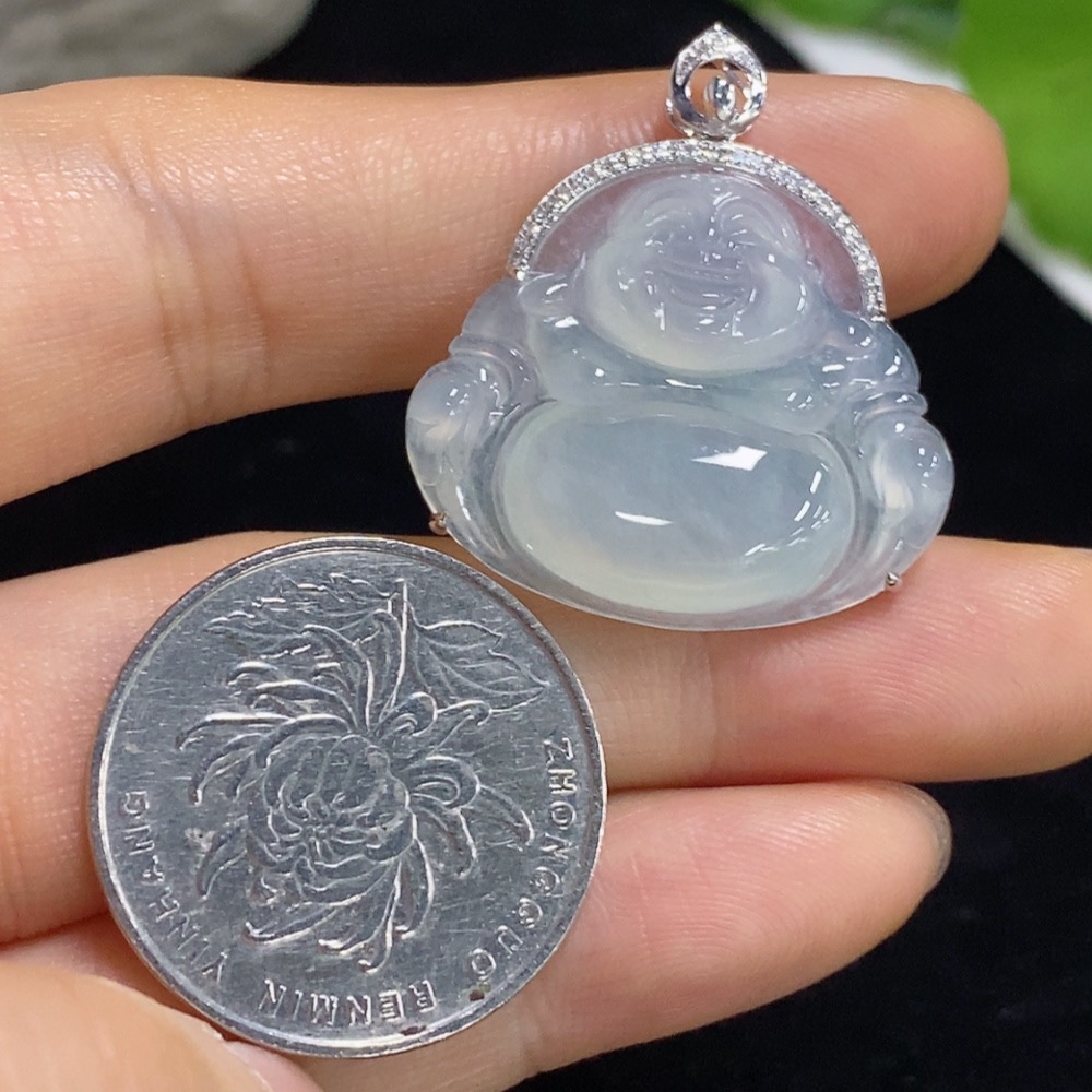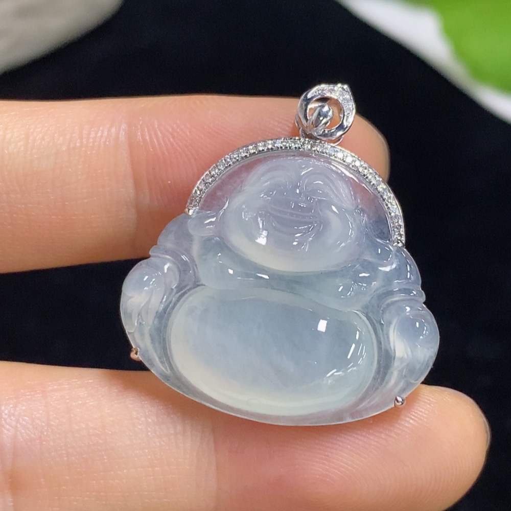 Jadeite Pendant Buddha with 18K Gold and Diamond Accents, Total Weight Approximately 5.4g