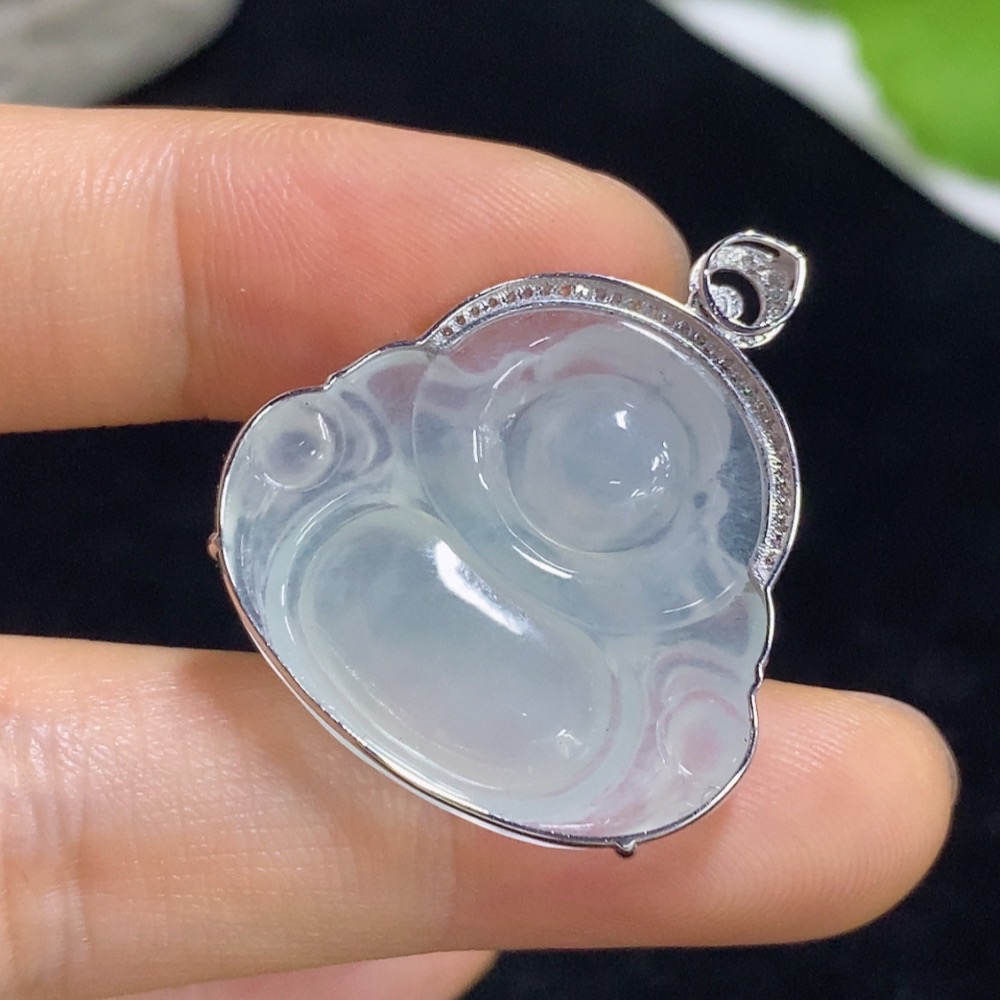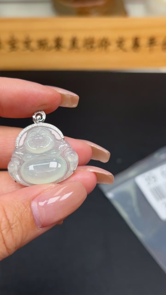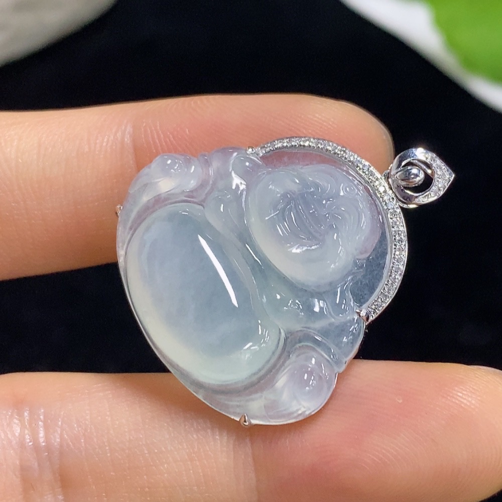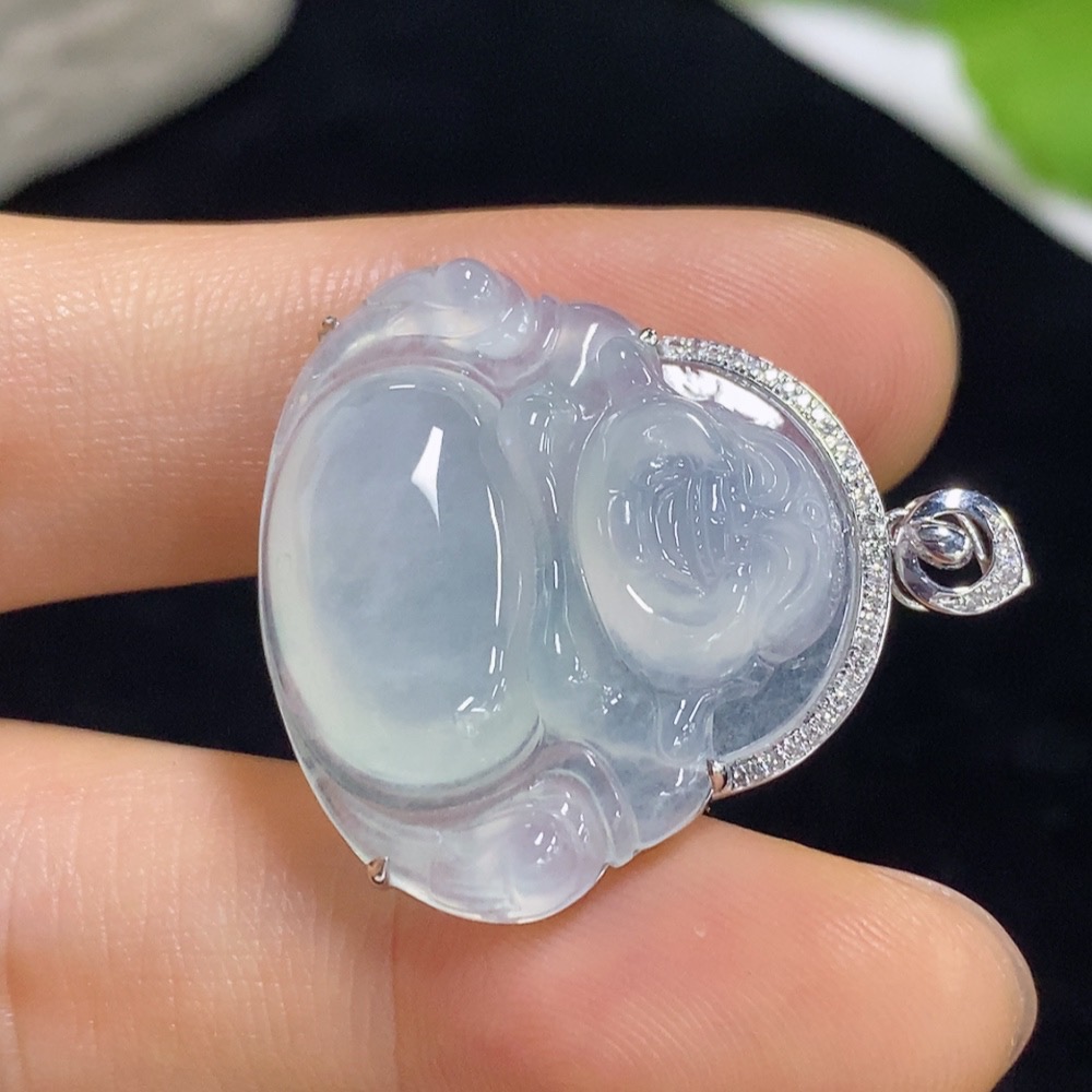 Jadeite Pendant Buddha with 18K Gold and Diamond Accents, Total Weight Approximately 5.4g
