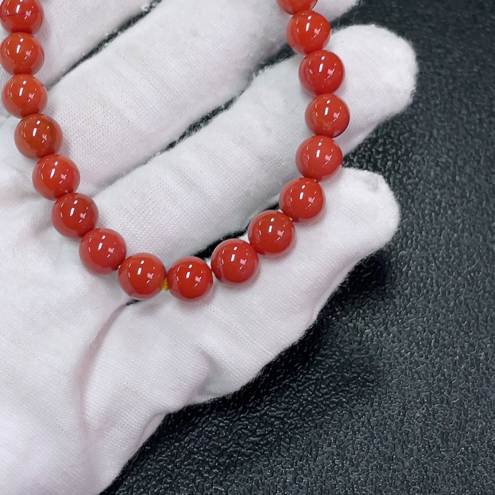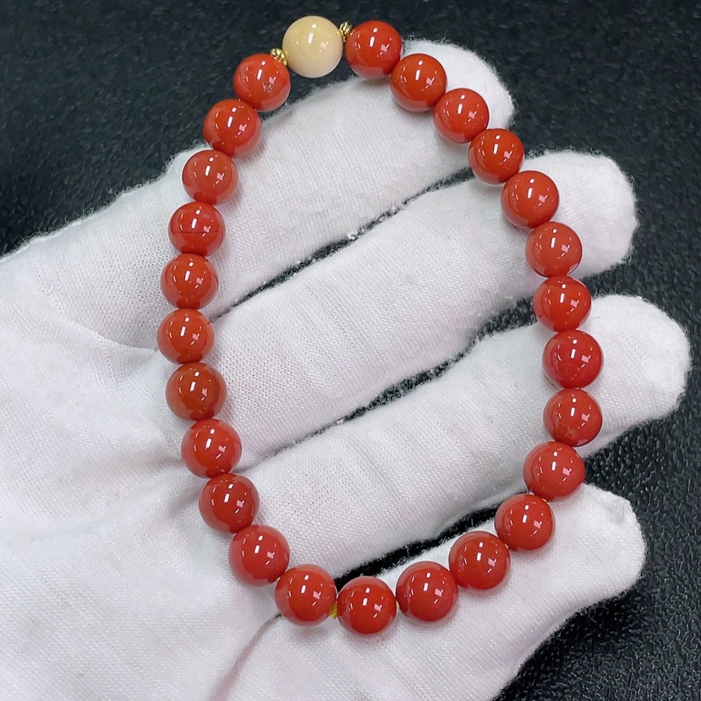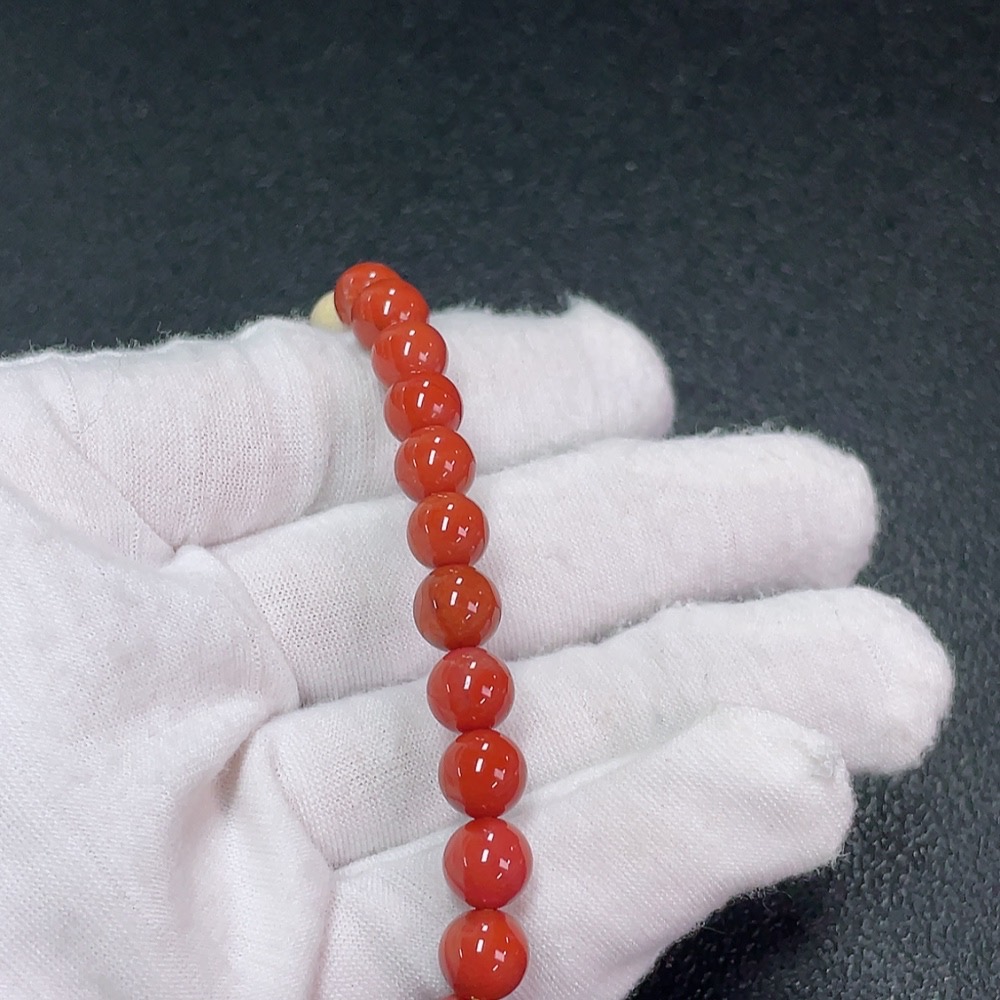 Red Agate Bracelet (Non-Gold Inlaid, Approx. 7.6mm, Total Weight ~15.47g, Visible Organic Matter, Non-Natural Accent Stones Considered)
