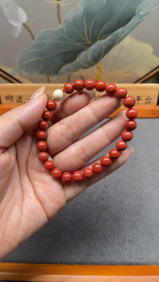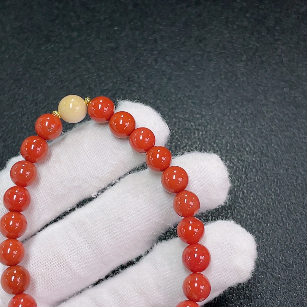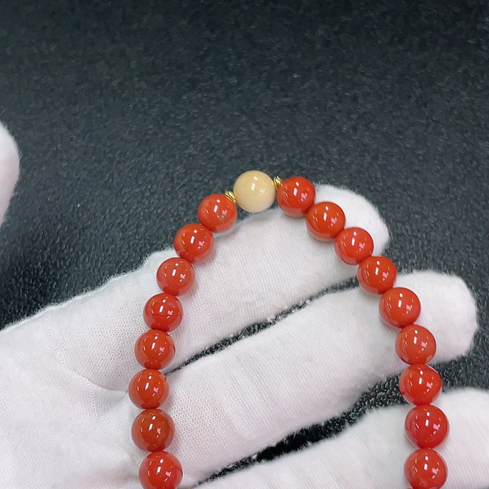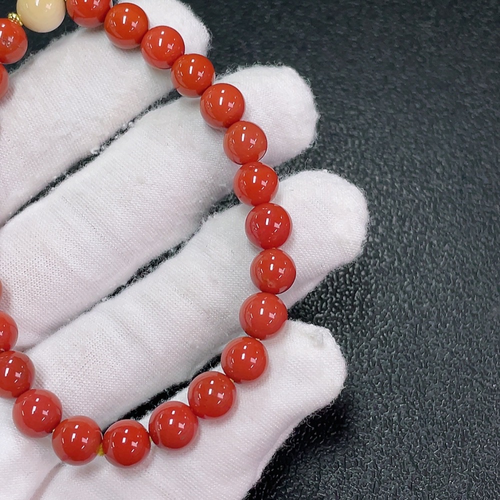 Red Agate Bracelet (Non-Gold Inlaid, Approx. 7.6mm, Total Weight ~15.47g, Visible Organic Matter, Non-Natural Accent Stones Considered)