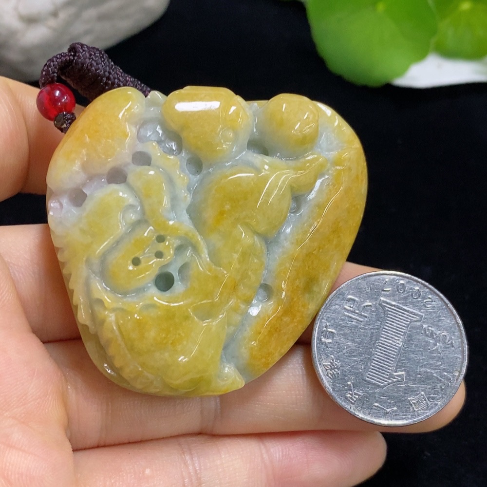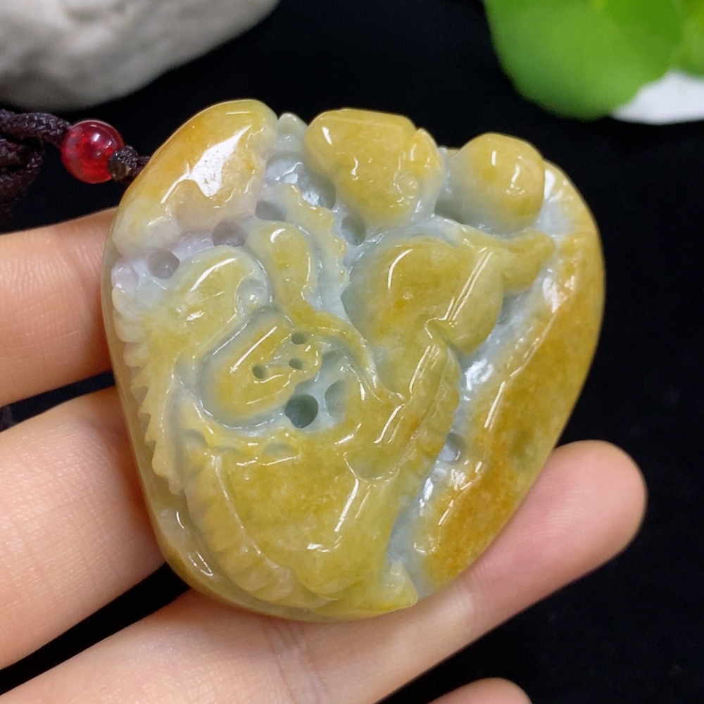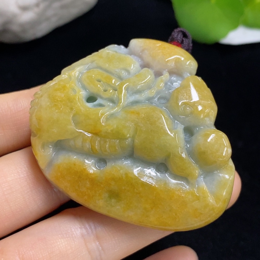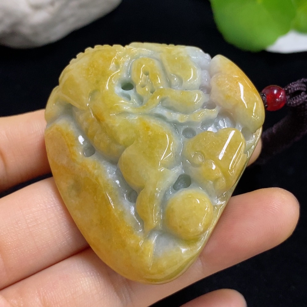 Jadeite Pi Xiu Pendant Total Weight Approx. 80.95g (Including Rope Weight)