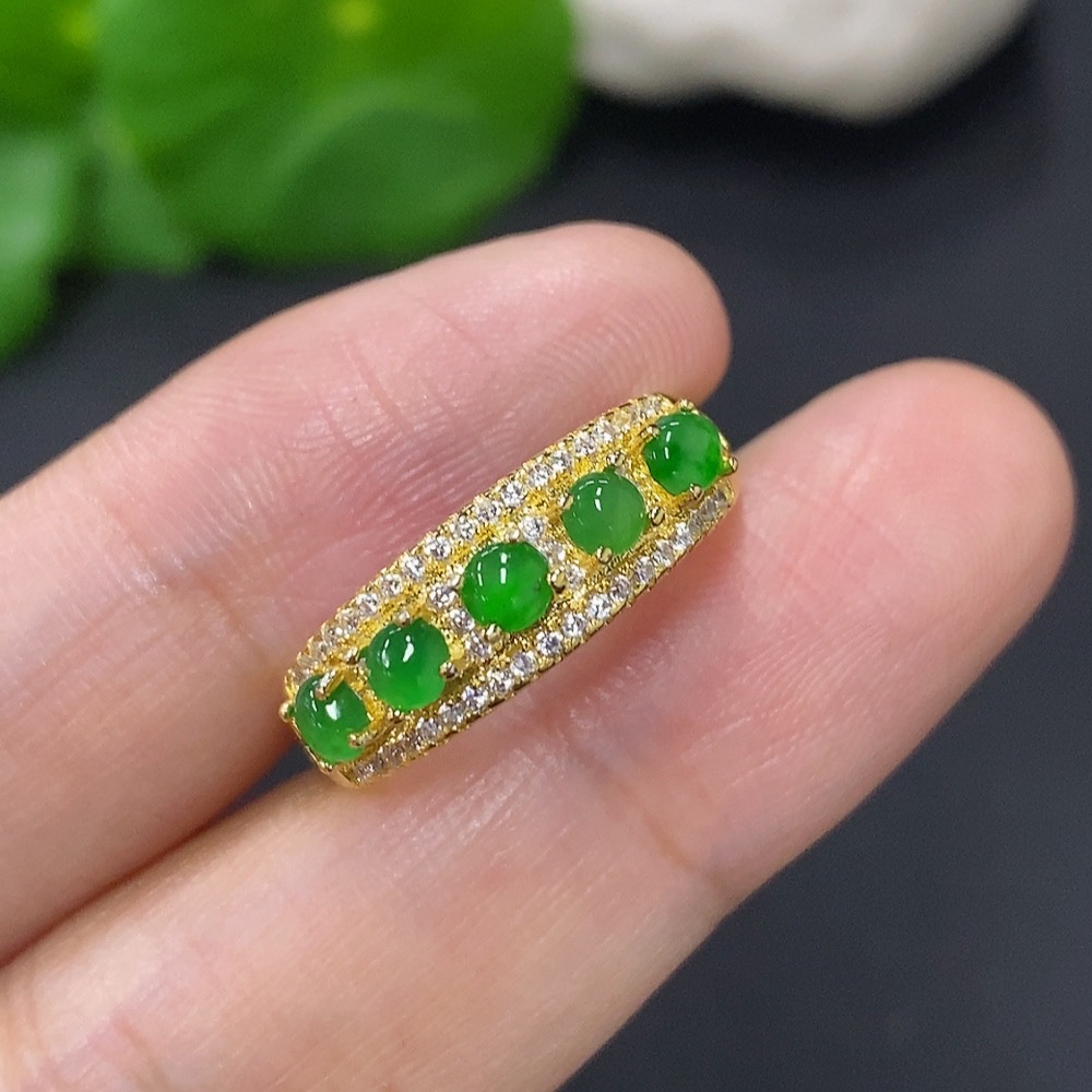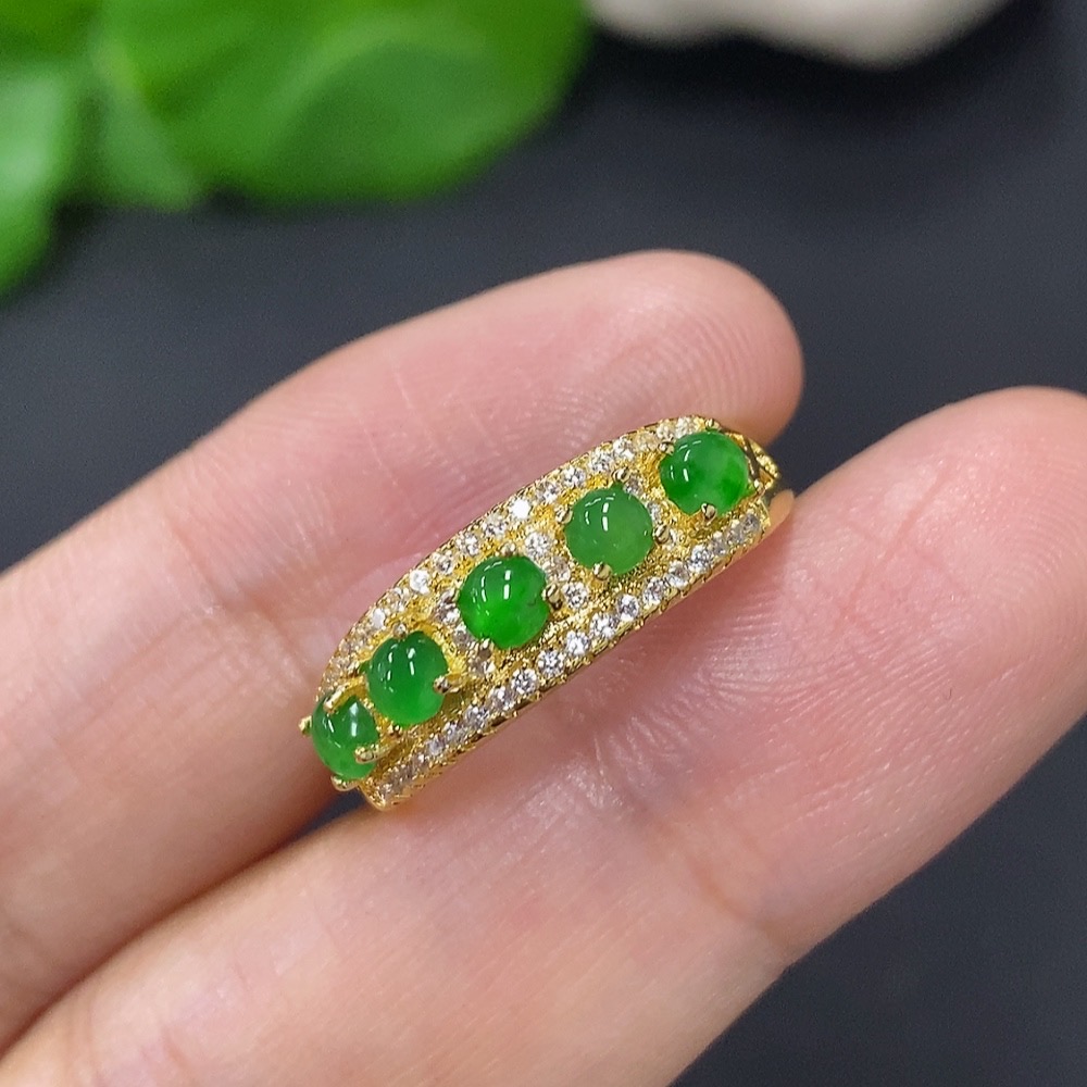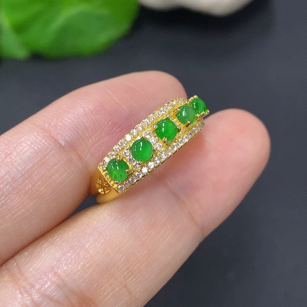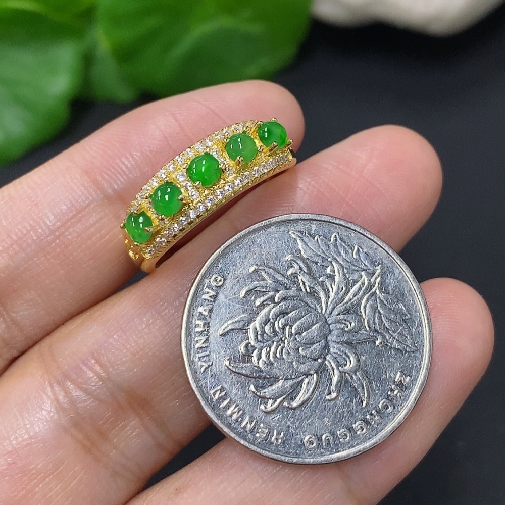 Jadeite Cabochon Ring Non-Gold Adjustable Size Total Weight Approx. 2g
