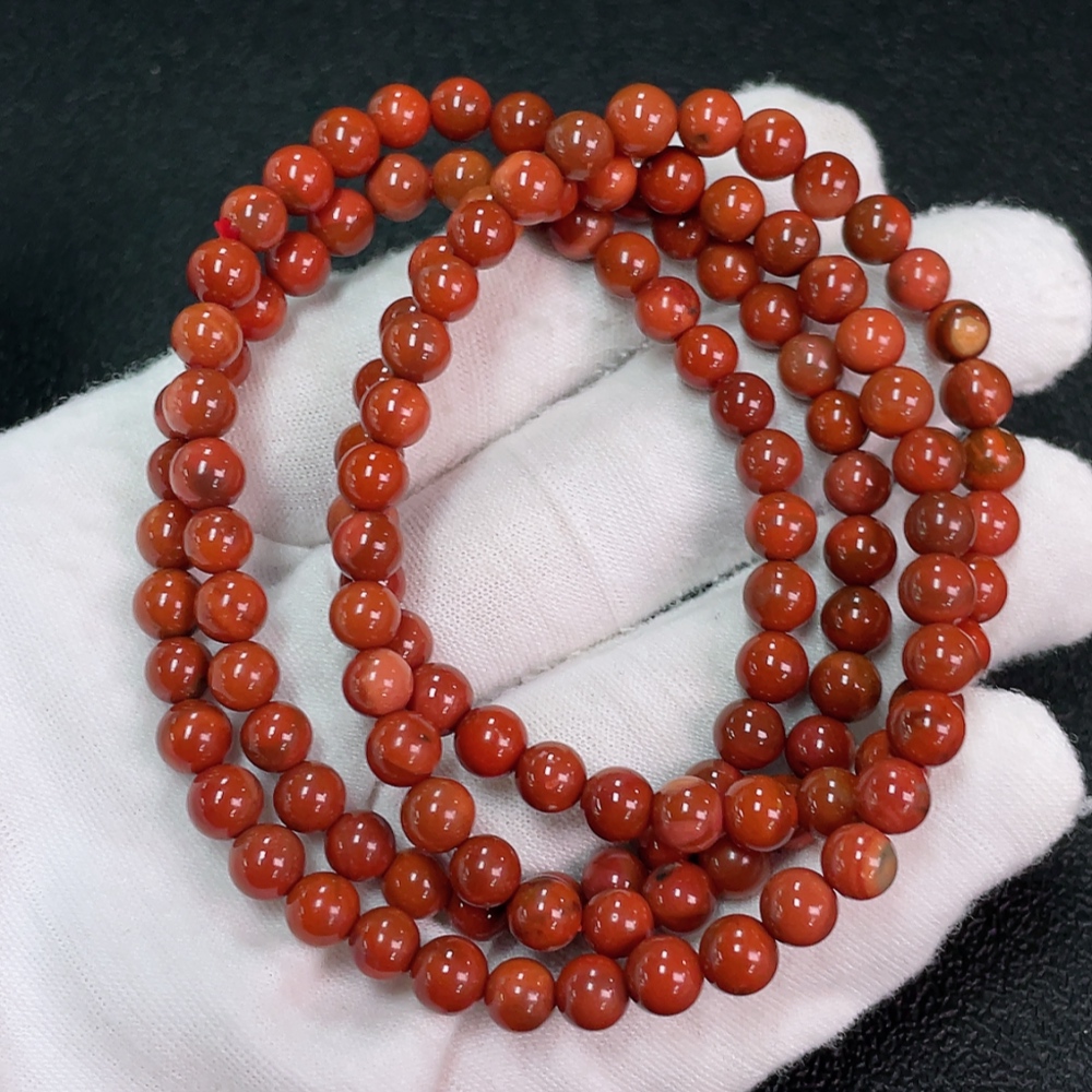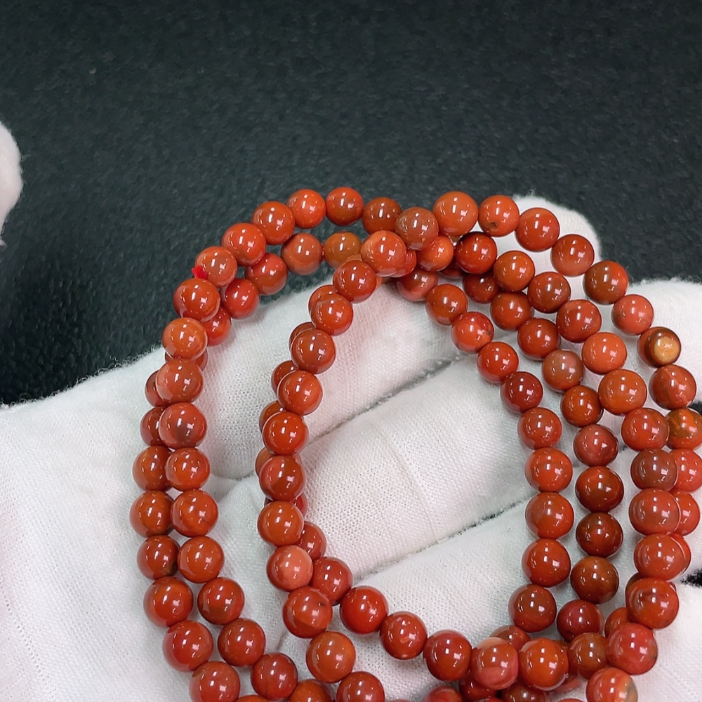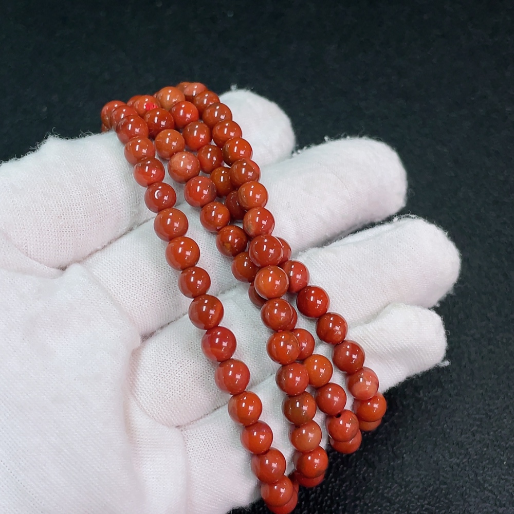 Red Agate Bead Strand with Visible Organic Matter, Total Weight Approx. 31.93g, Size About 5.8mm