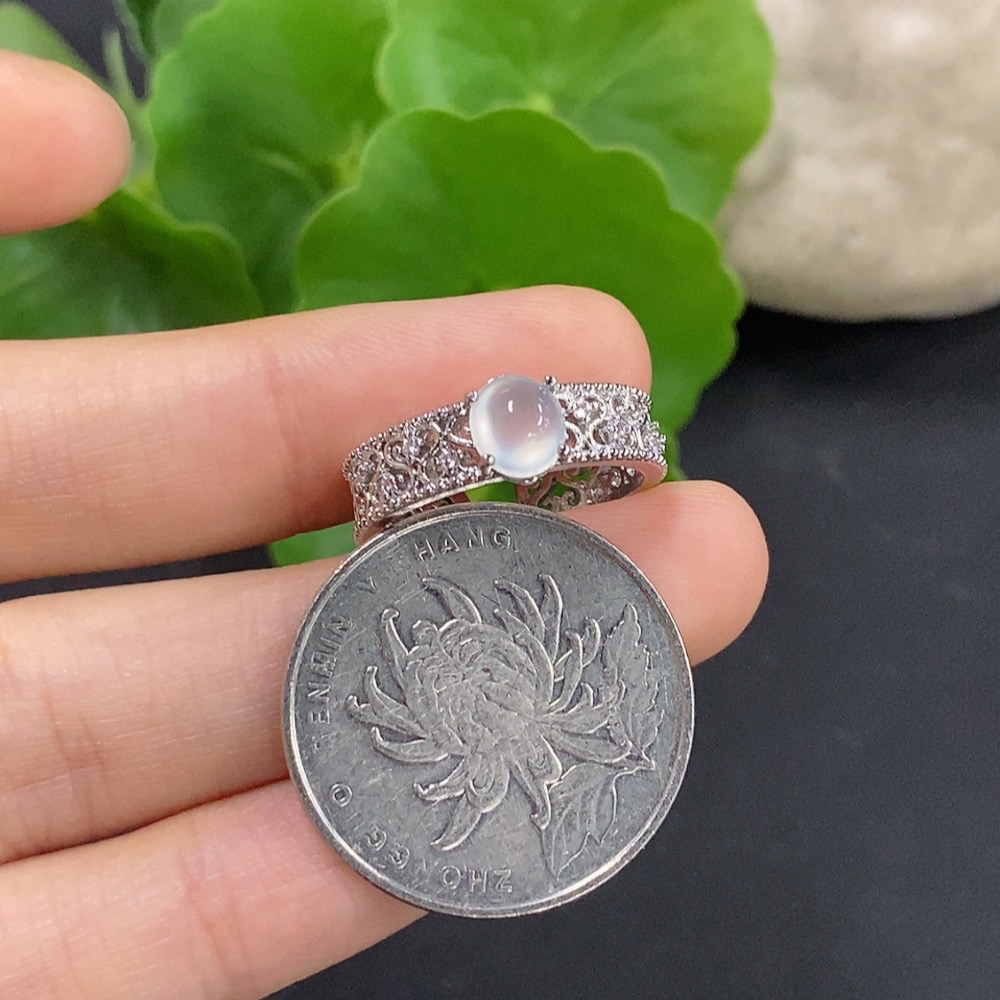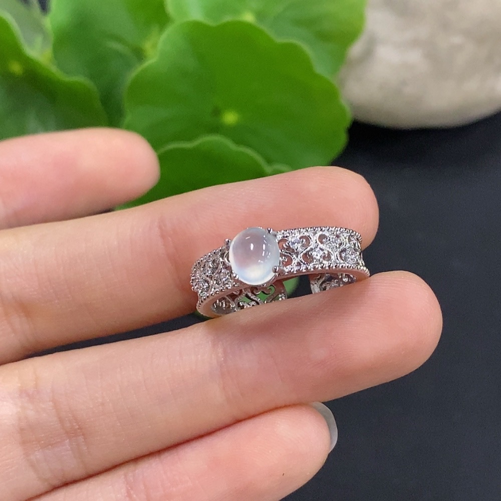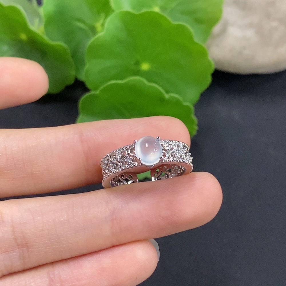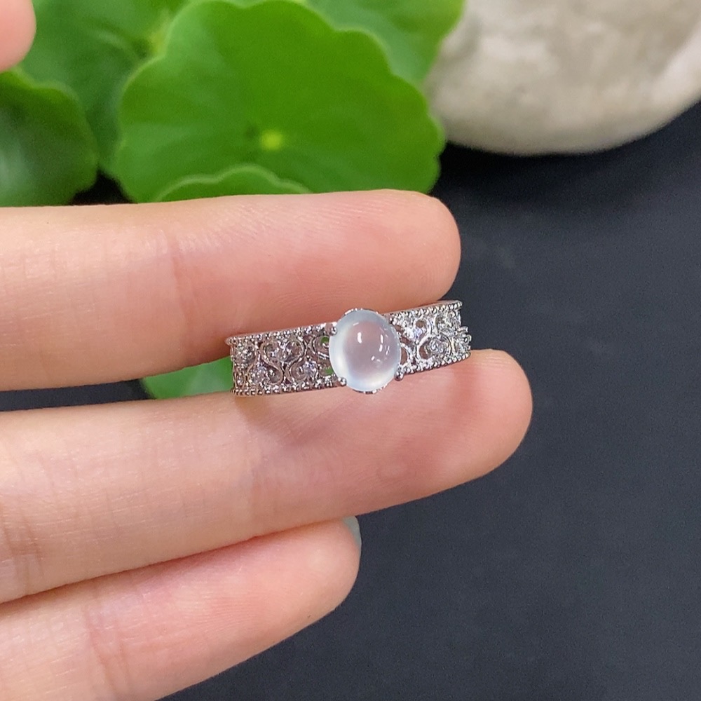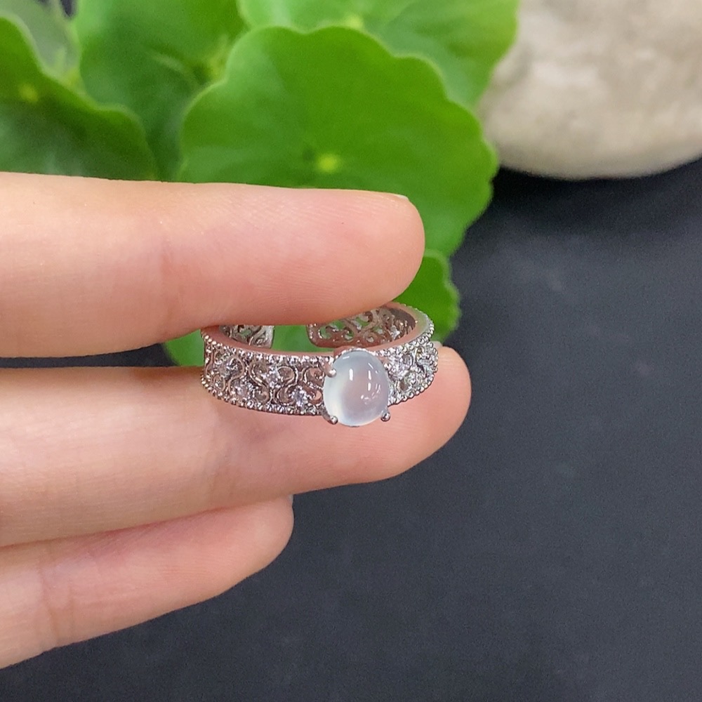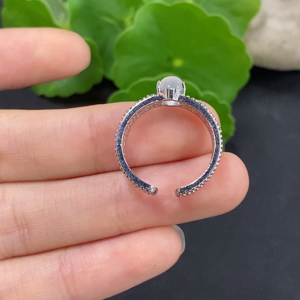 Jadeite Cabochon Inlay Ring Non-Gold Setting Adjustable Total Weight Approx. 2.49g