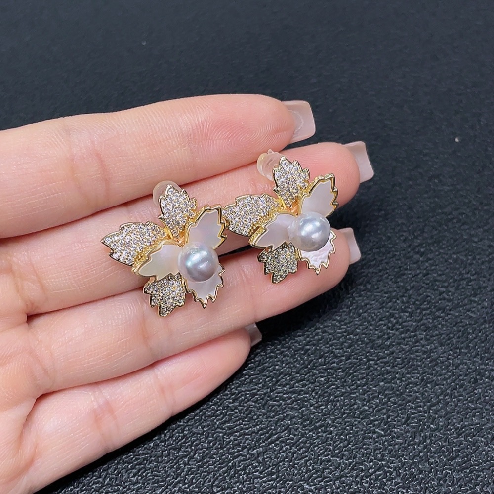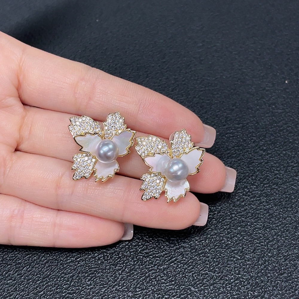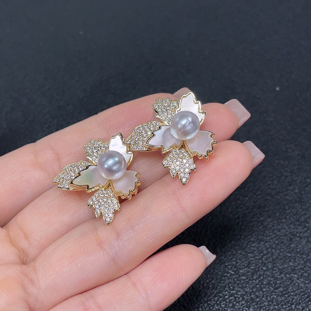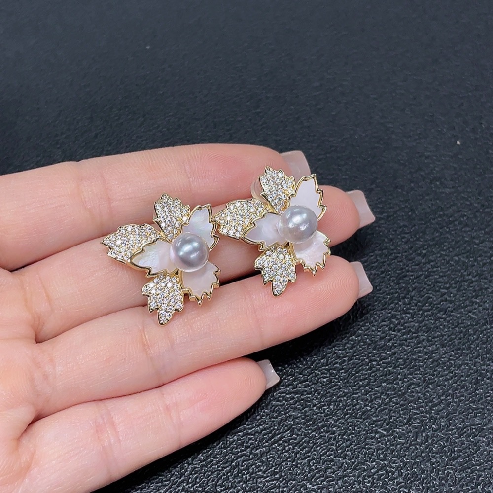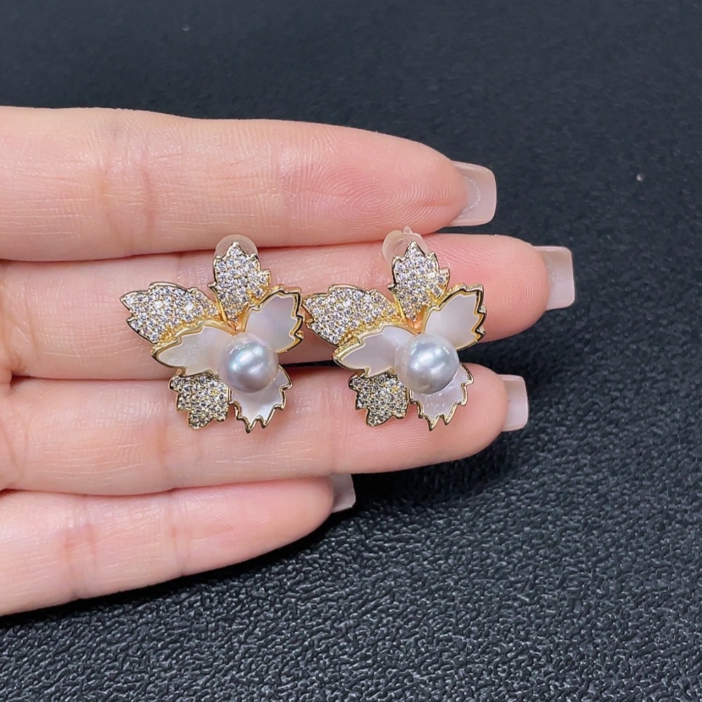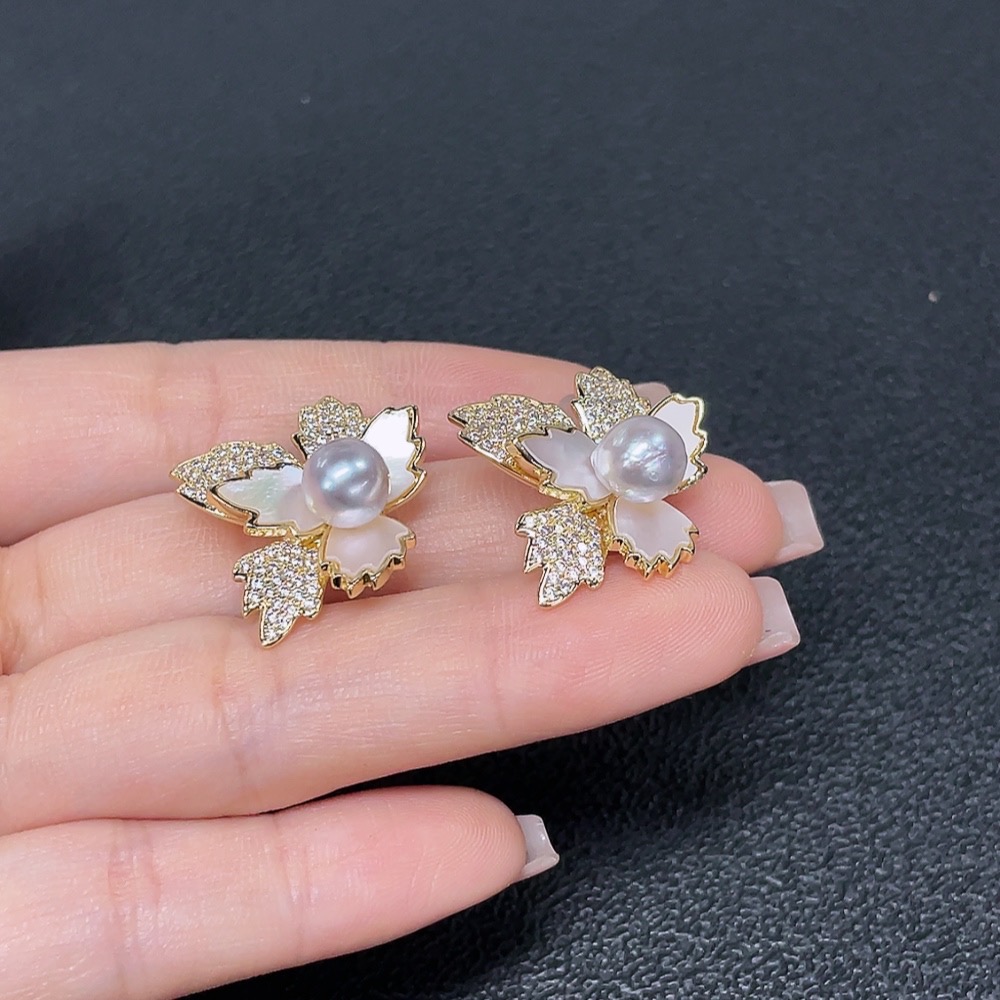 Seawater pearl stud earrings non-gold setting approx. 7.1mm total weight about 8.06g color origin undetermined