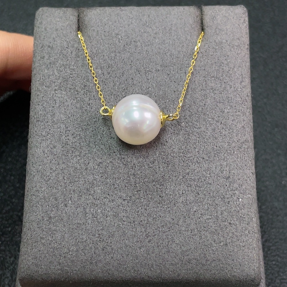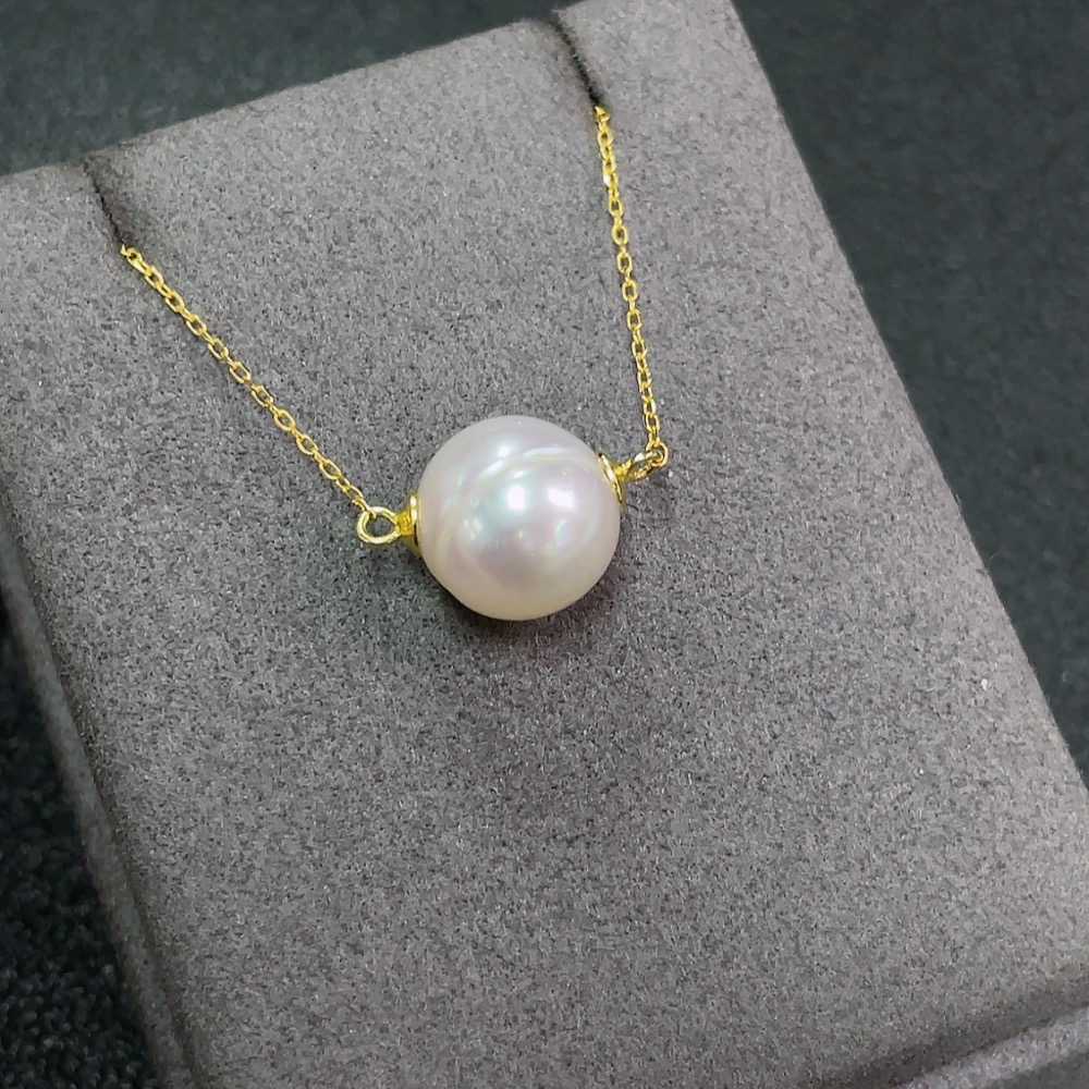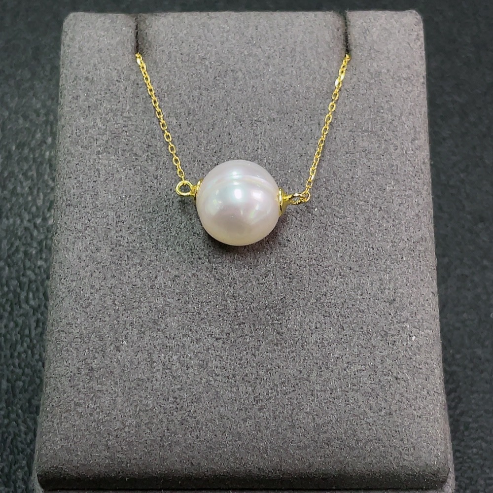 Seawater pearl inlaid necklace, non-gold setting, size approx. 11.9mm, total weight including chain approx. 3.57g