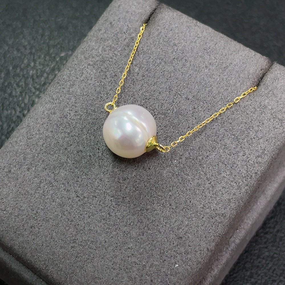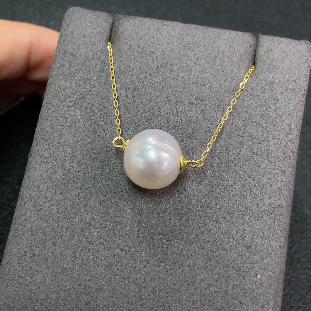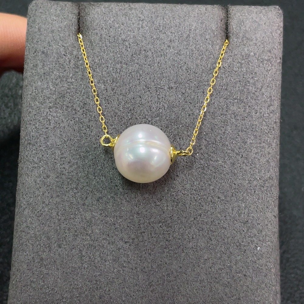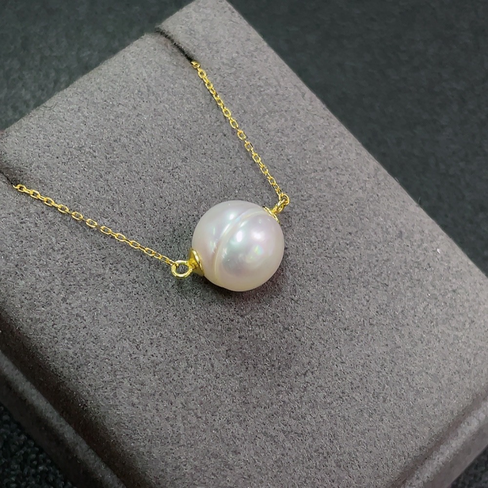 Seawater pearl inlaid necklace, non-gold setting, size approx. 11.9mm, total weight including chain approx. 3.57g