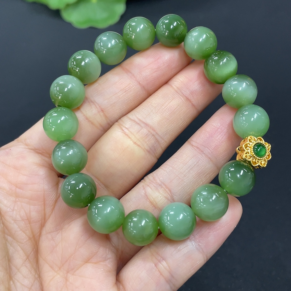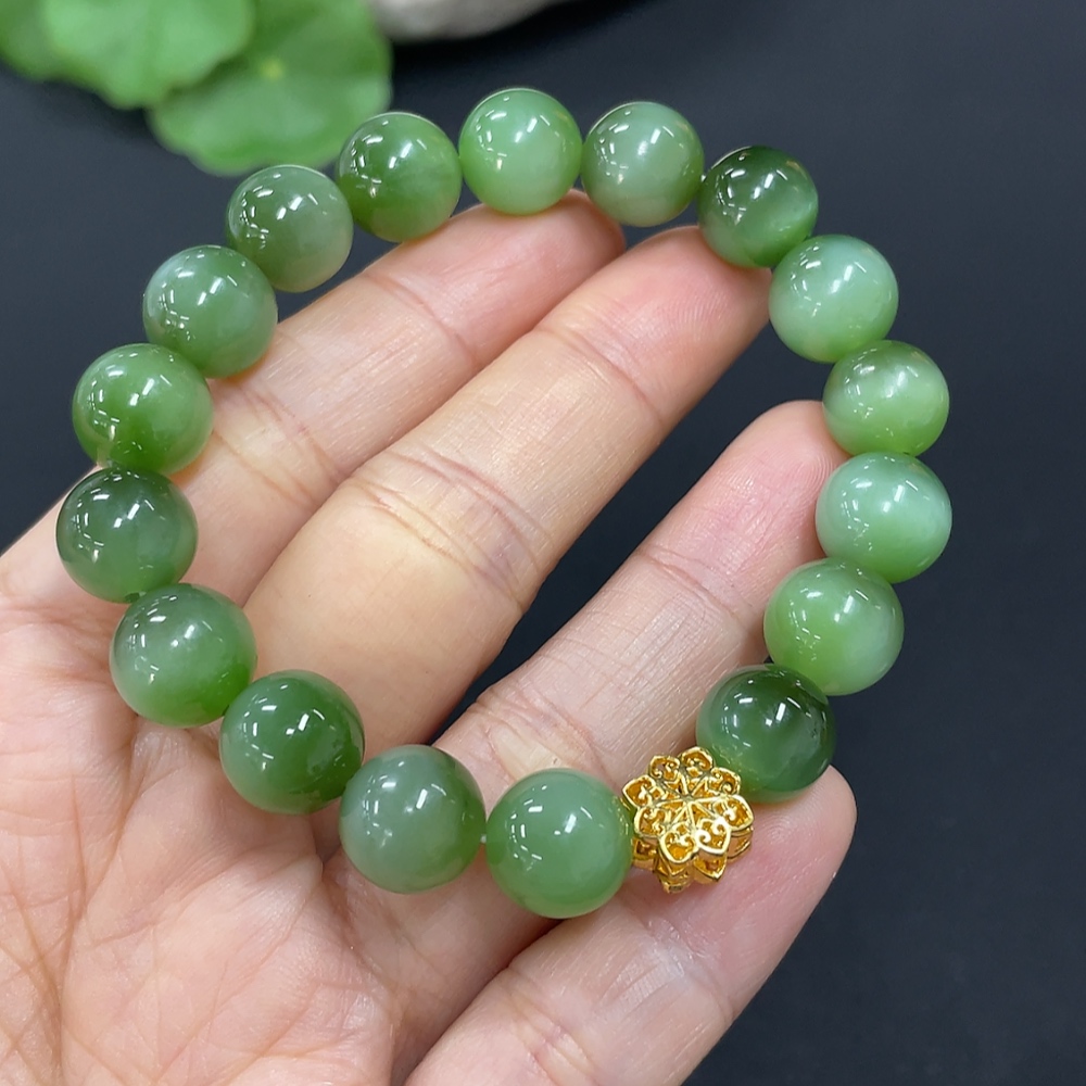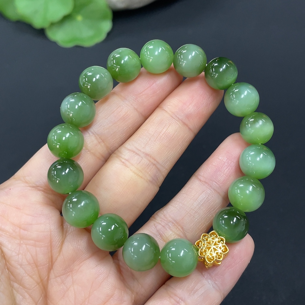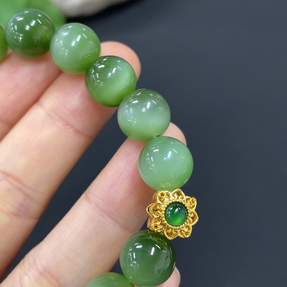 Hetian Jade Jasper Bracelet, Approx. 9.5mm, Suspected Gold-Plated, Total Weight Approx. 26.2g
