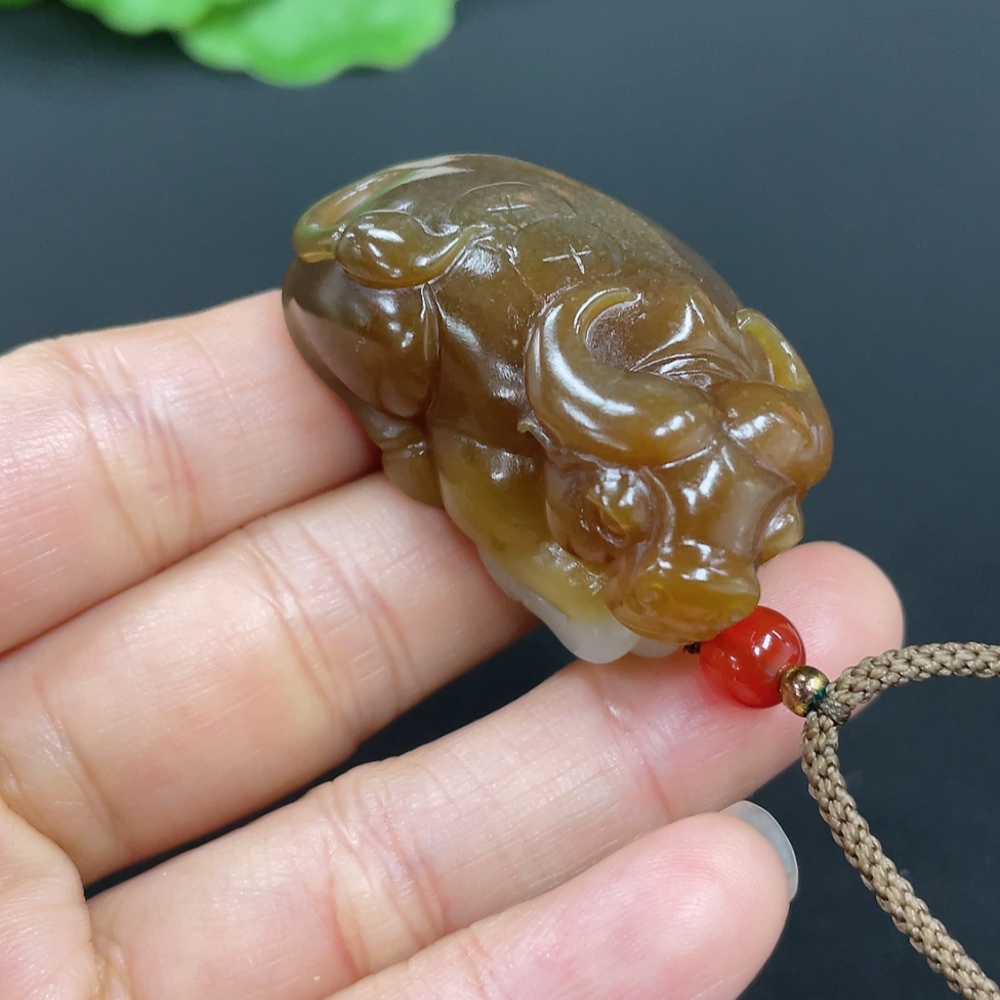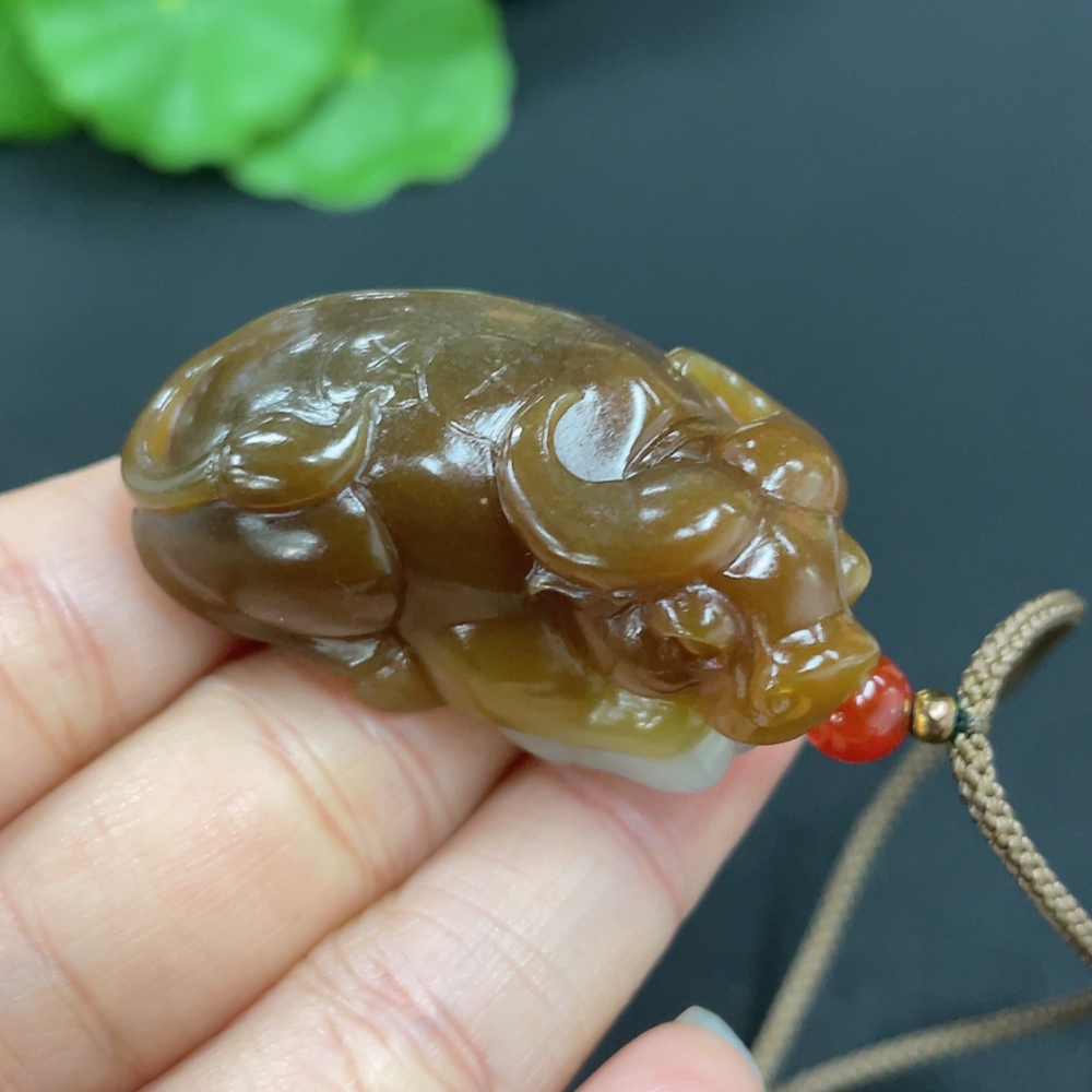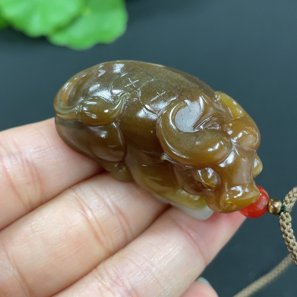 Hetian Jade Pendant Cattle Total Weight (including rope) approx. 33.1g Matching beads not Hetian Jade