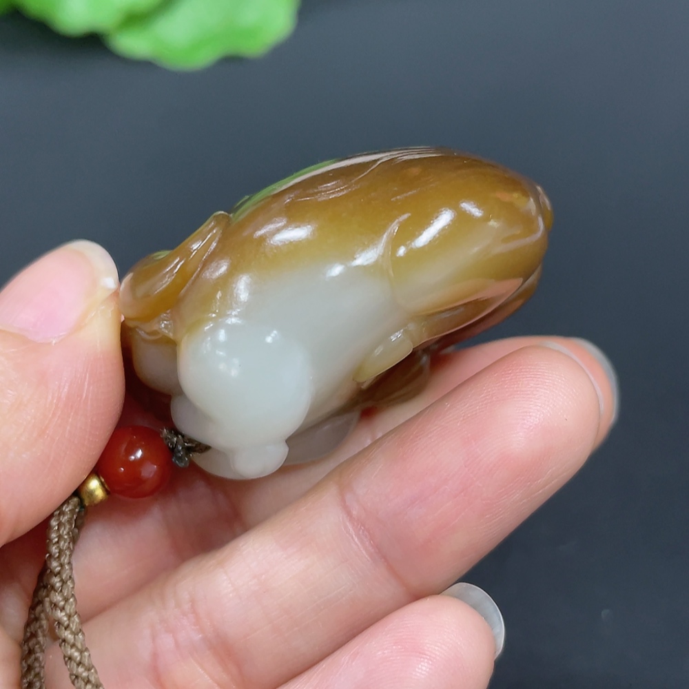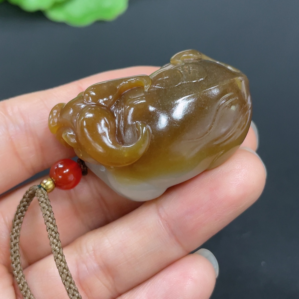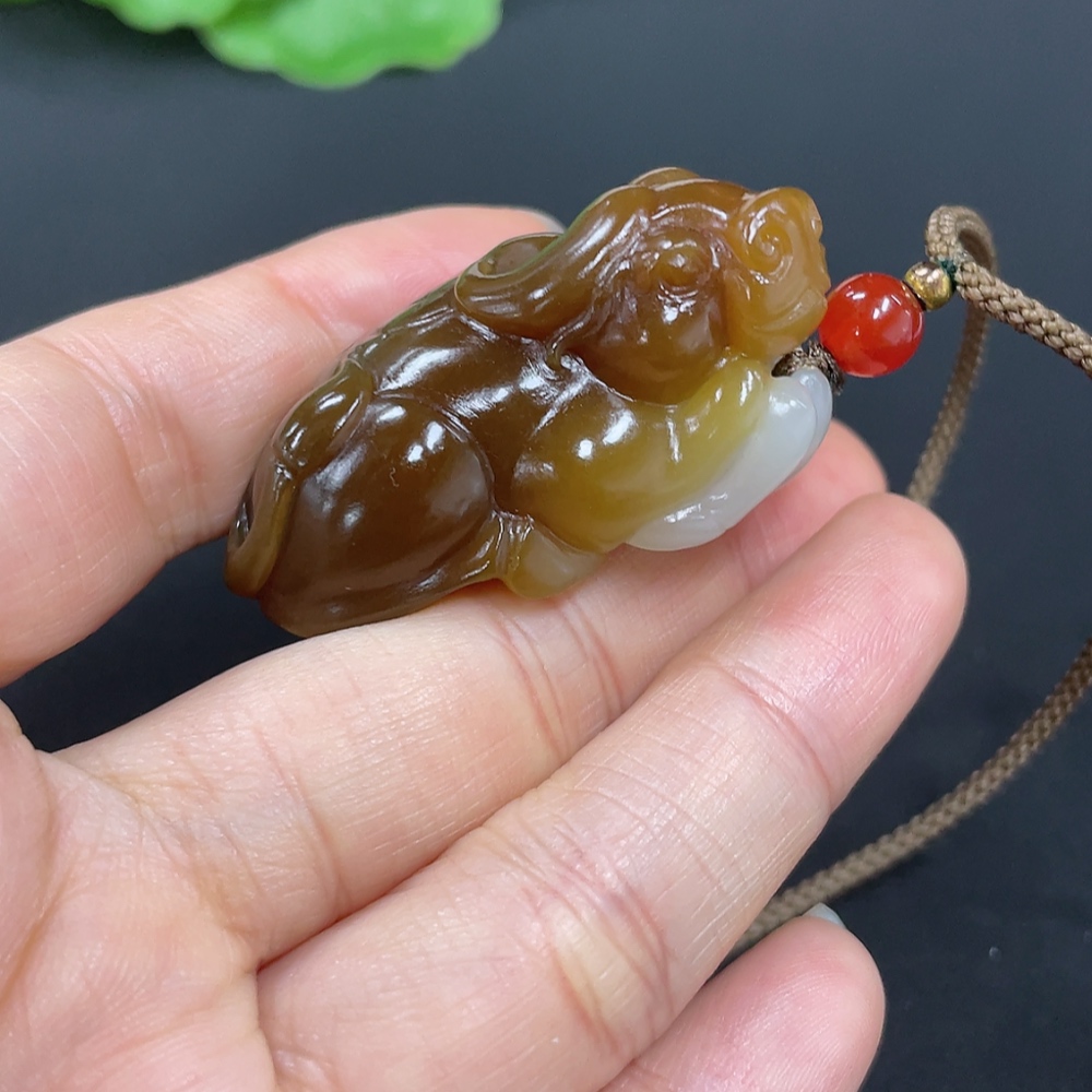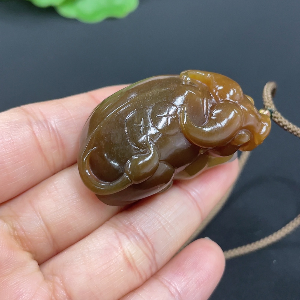 Hetian Jade Pendant Cattle Total Weight (including rope) approx. 33.1g Matching beads not Hetian Jade