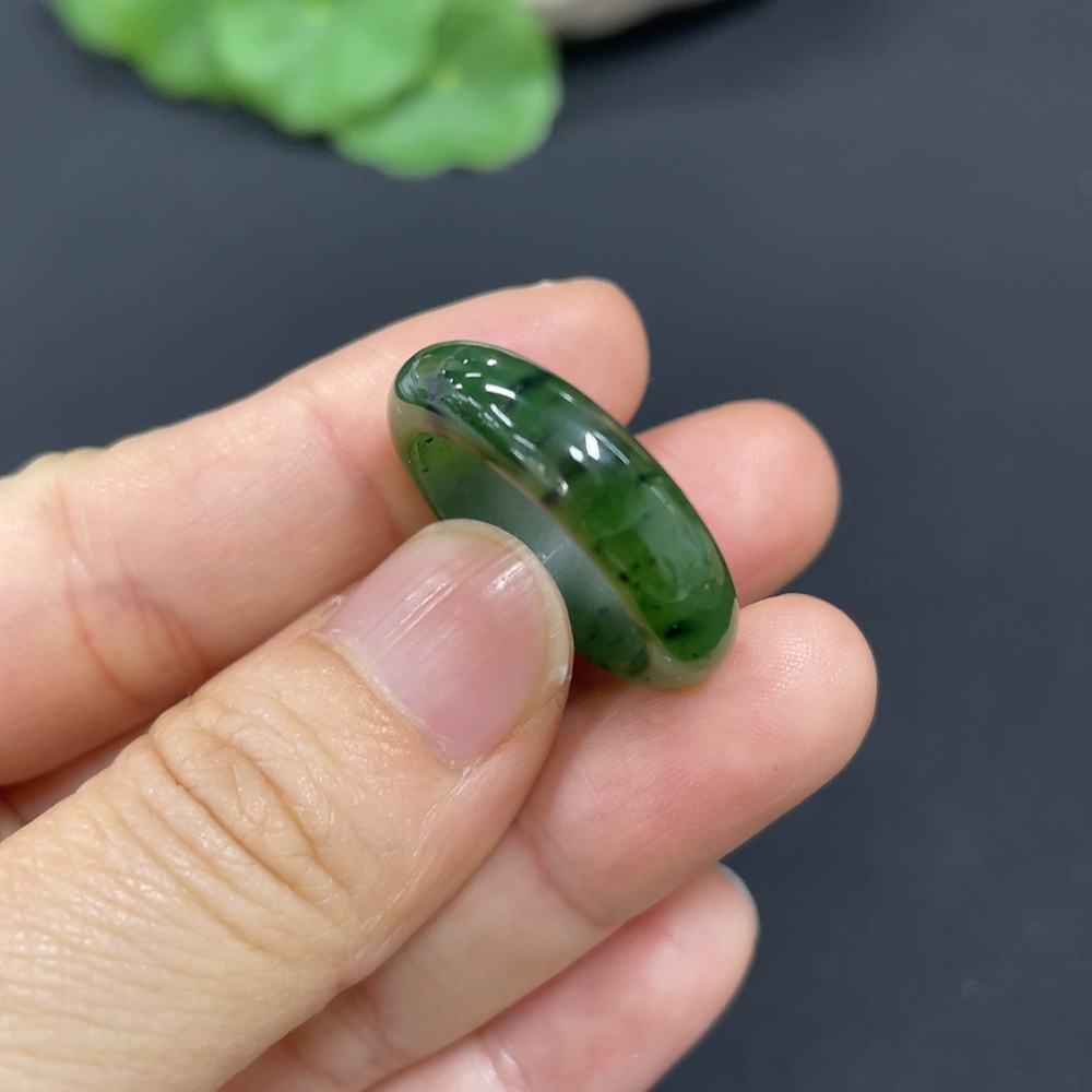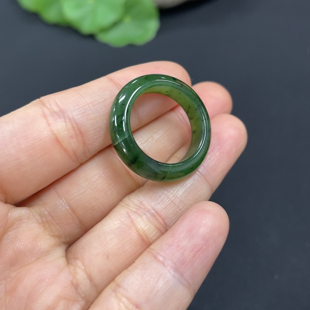 Hetian Jade Ring Size 15 Total Weight Approx. 3.4g with Crack