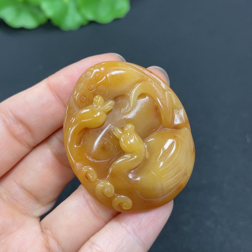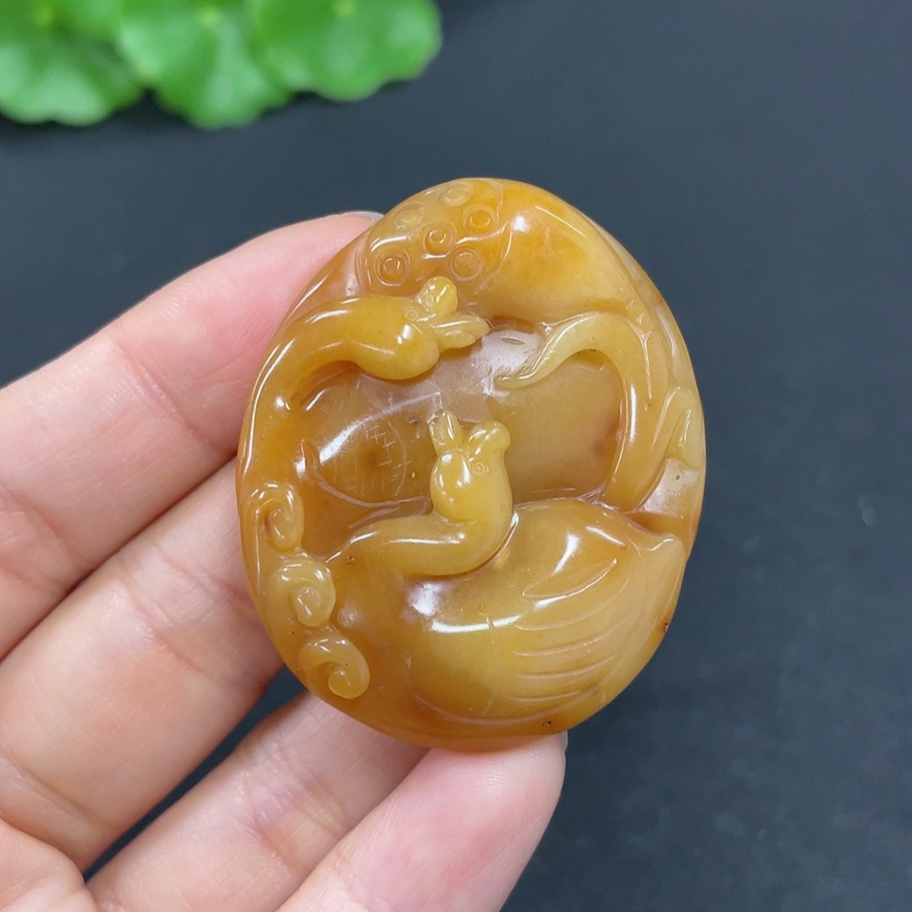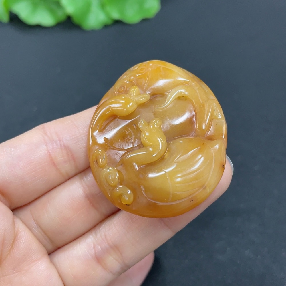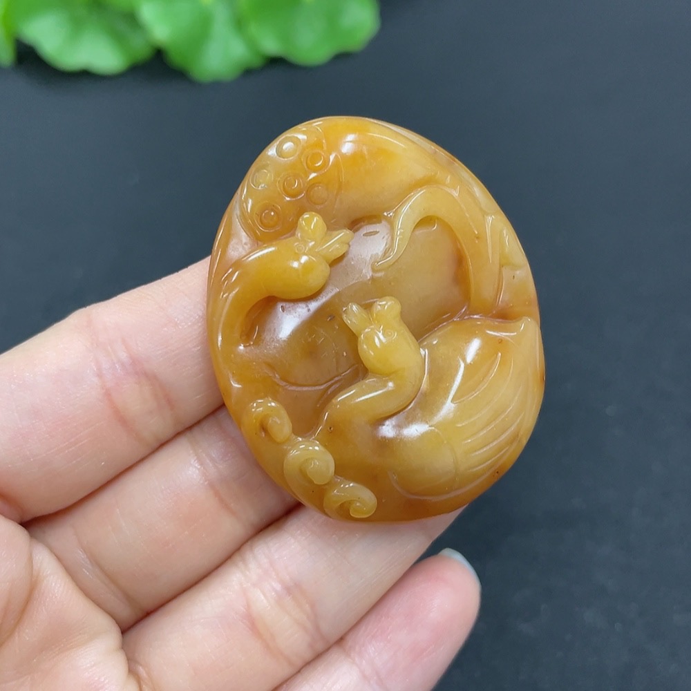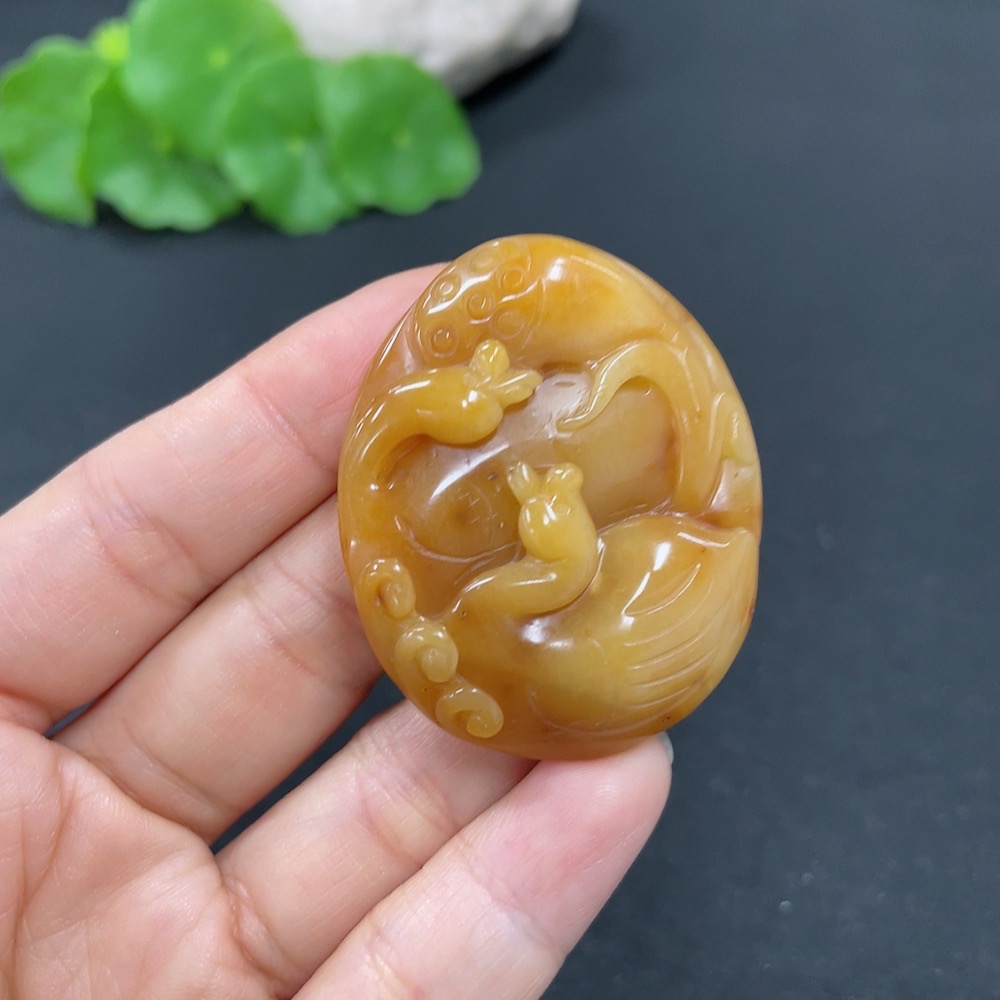 Yellow Dragon Jade Pendant - Eternal Union, Total Weight Approx. 17.7g