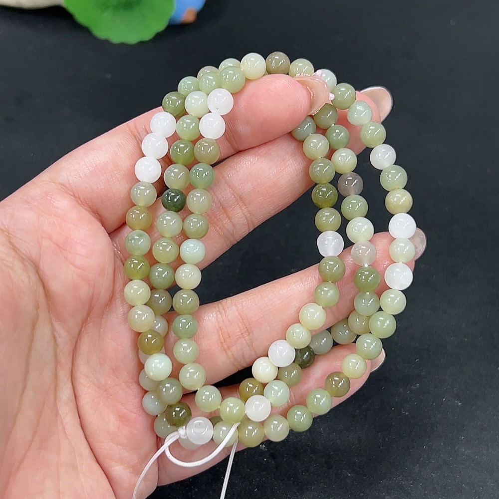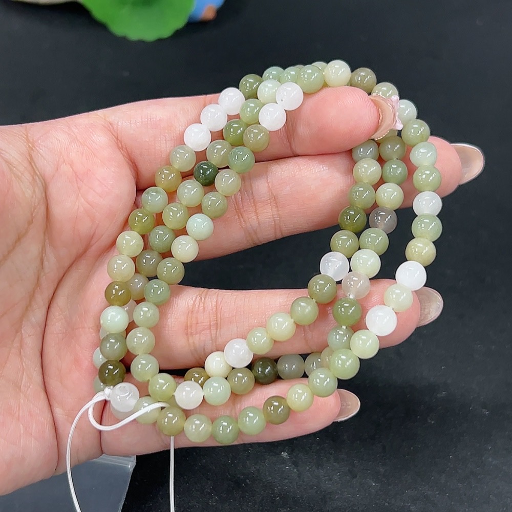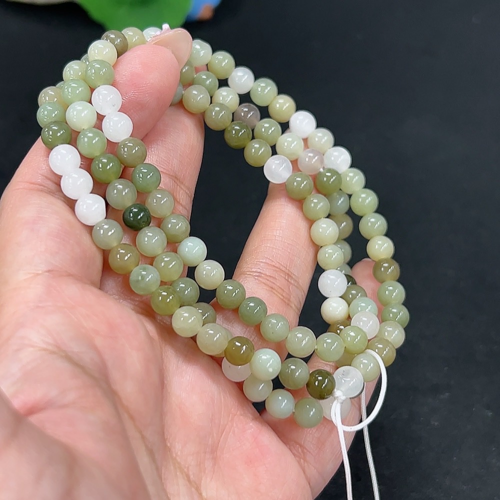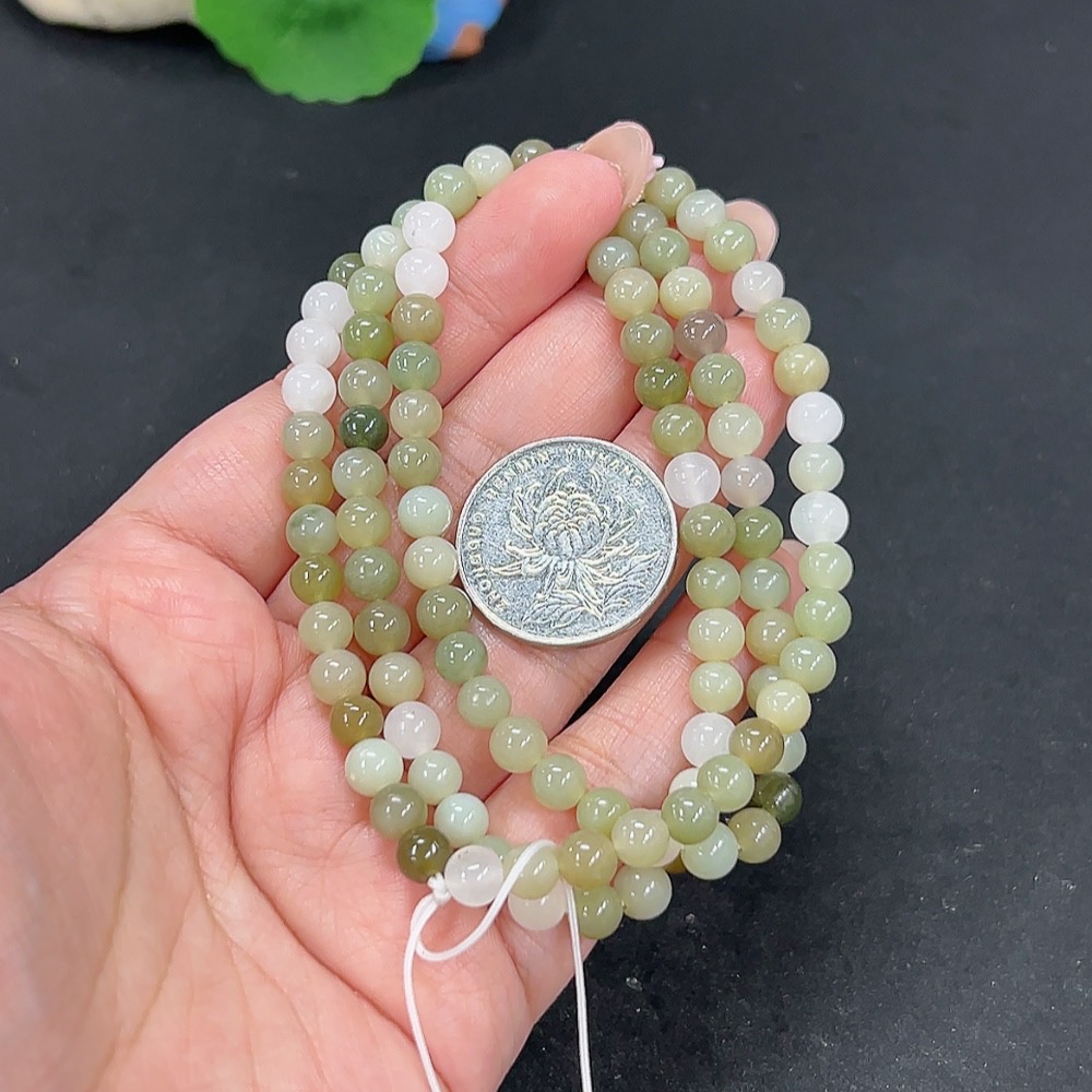 Hetian Jade Bead Necklace Approx. 5.8mm Total Weight Approx. 35.8g Containing Other Mineral Components