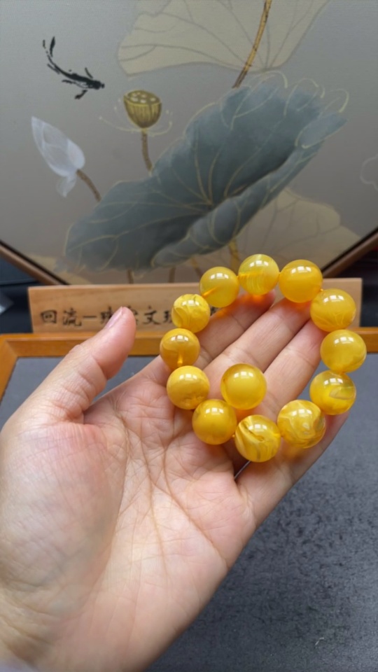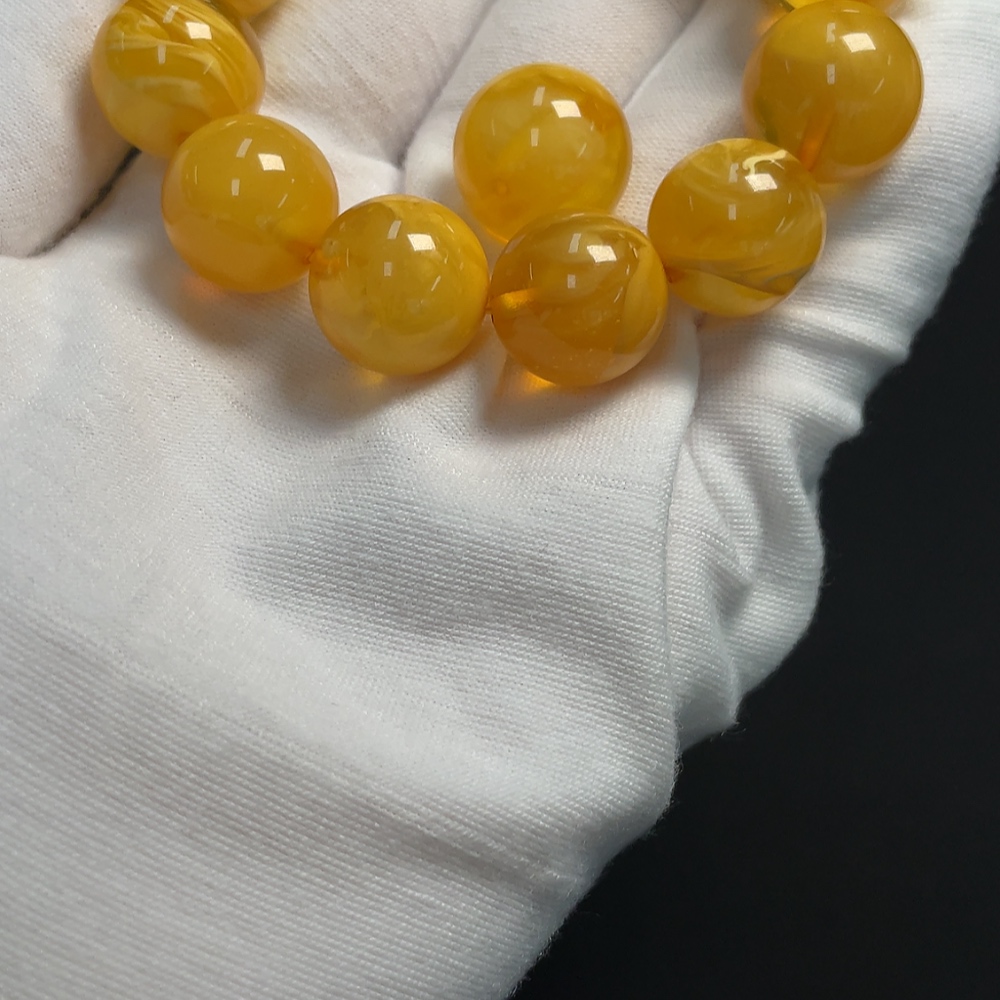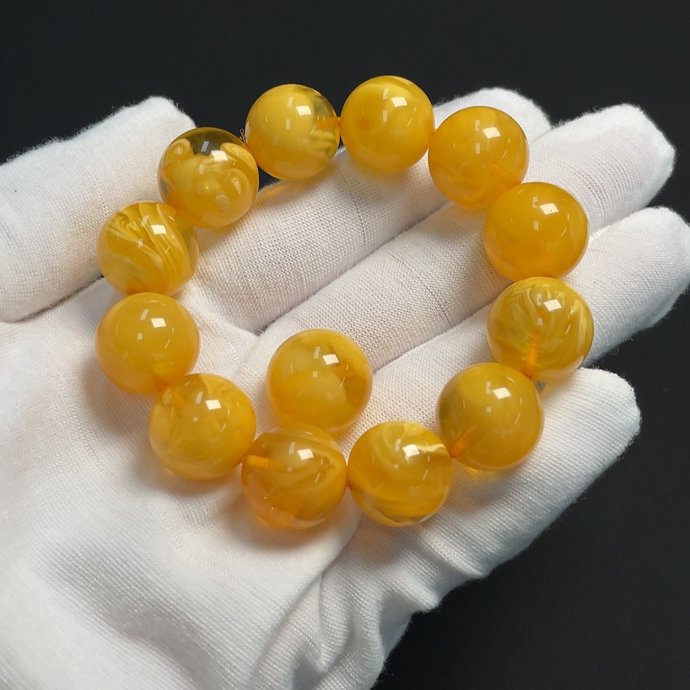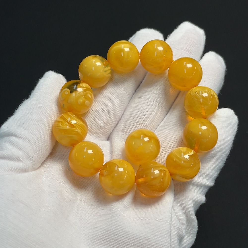 Amber Honey Bead Bracelet + Single Bead, Total Weight Approx. 27.1g, Size Approx. 14.7mm, Sell as a Lot