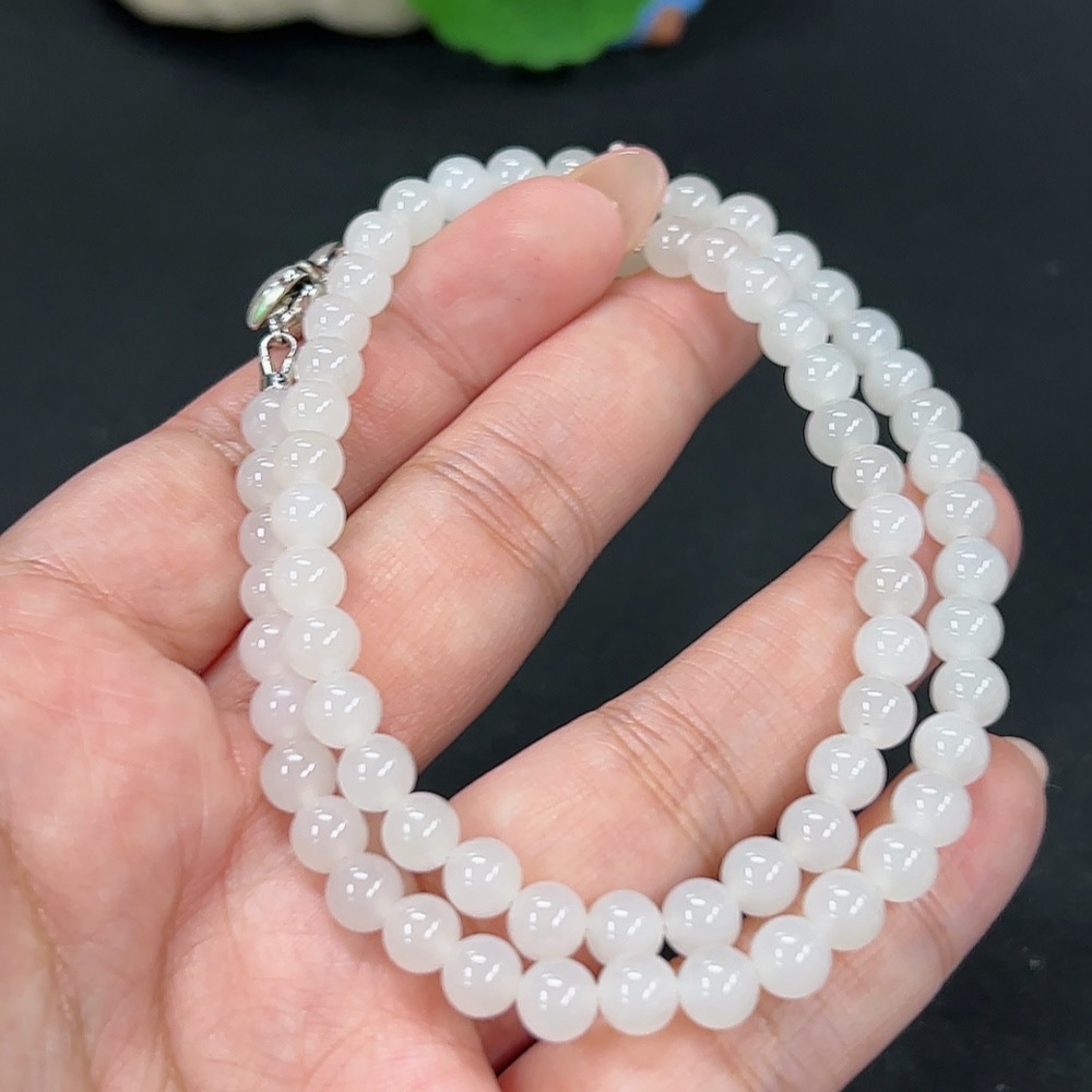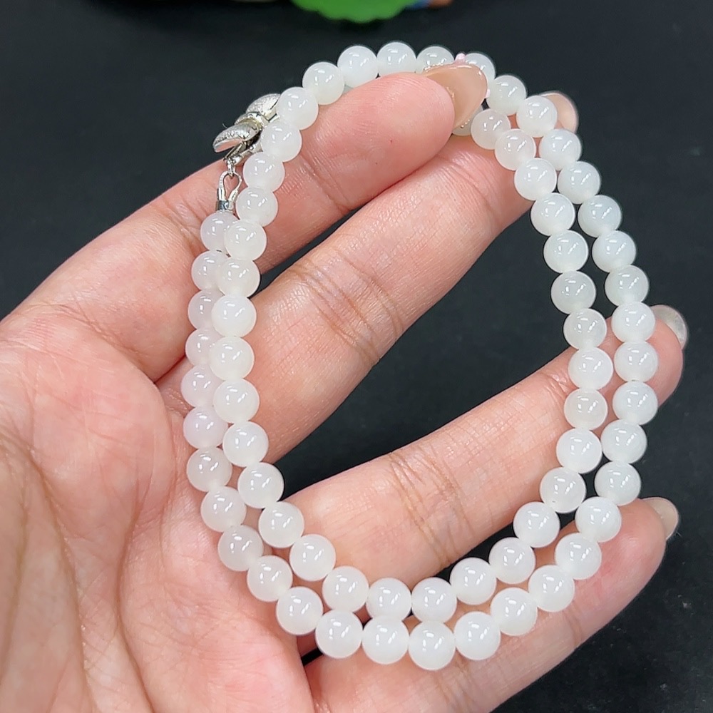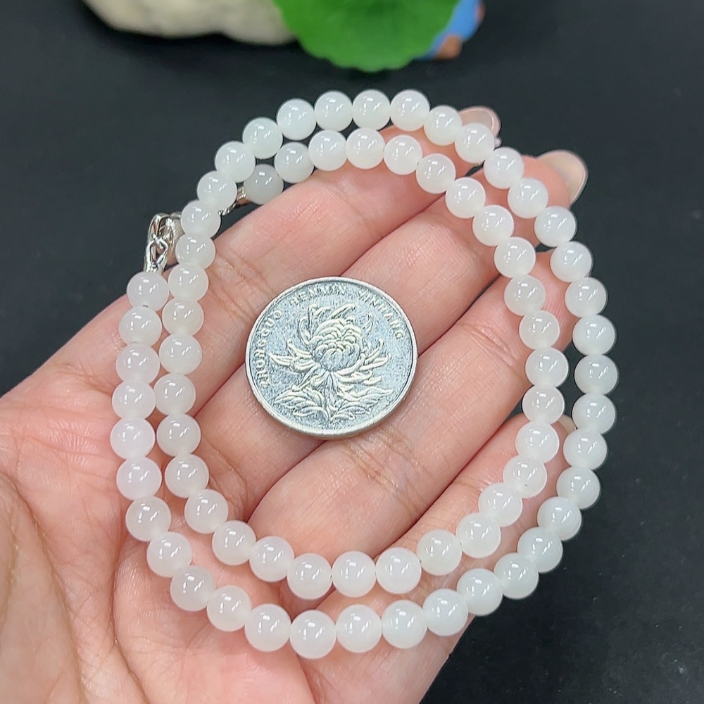 Hetian Jade Bead Necklace Approx. 5.8mm Total Weight About 24.9g Non-Gold