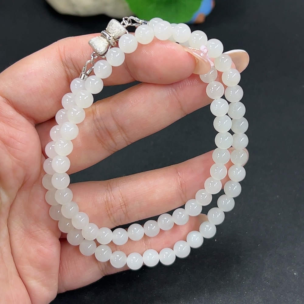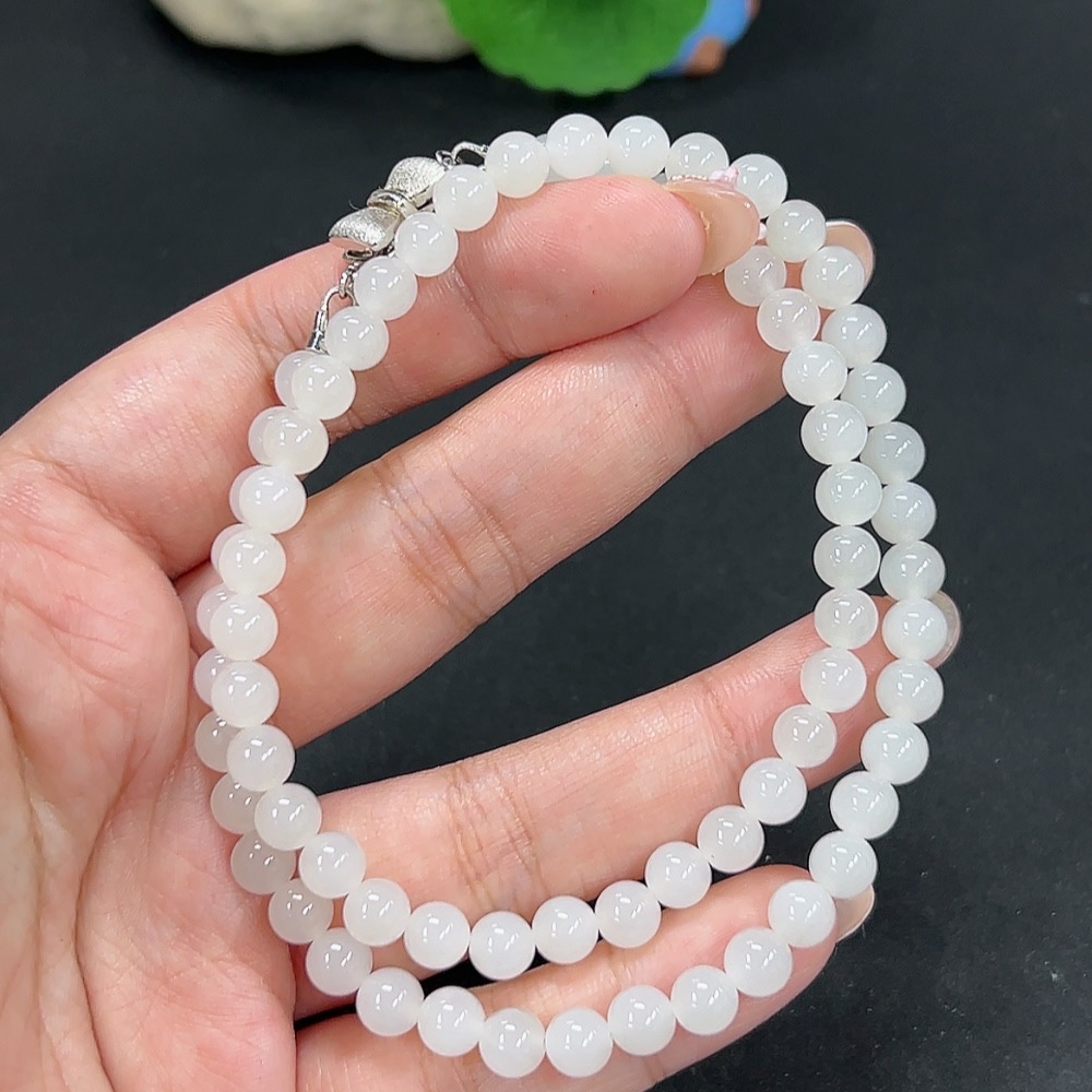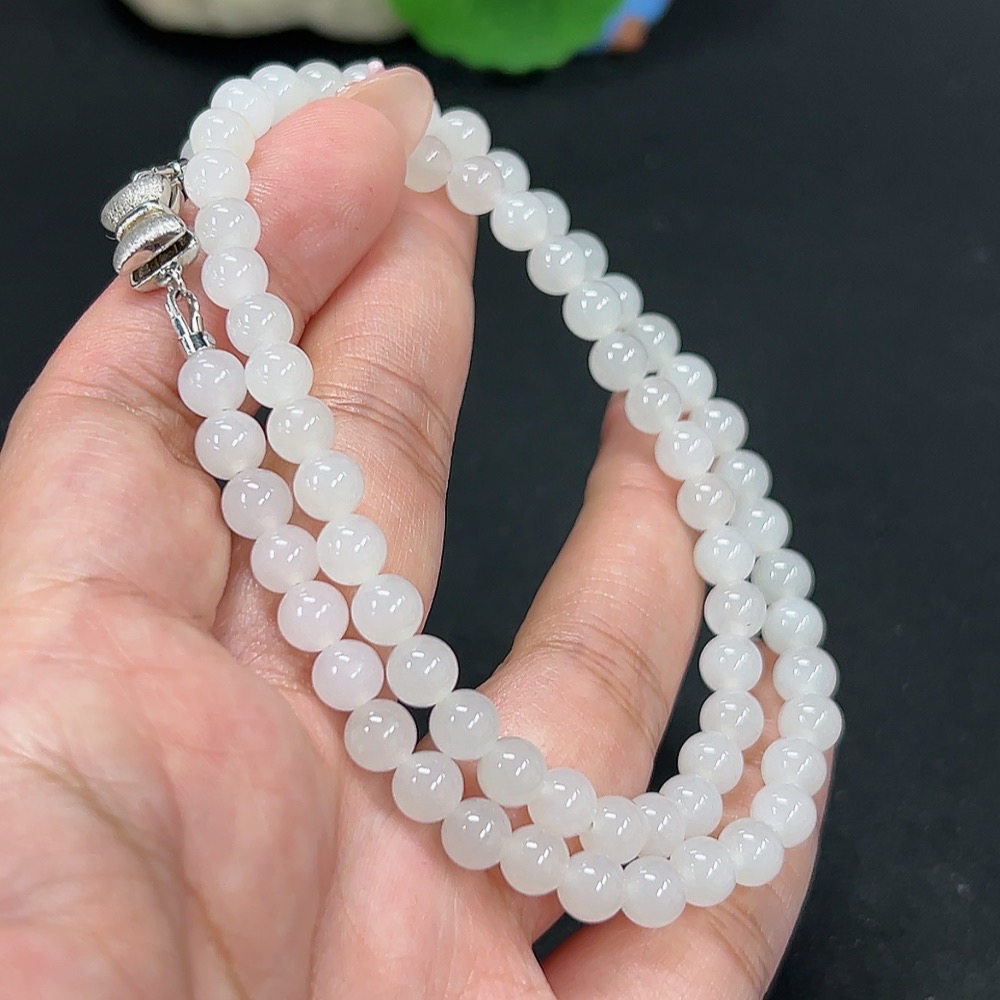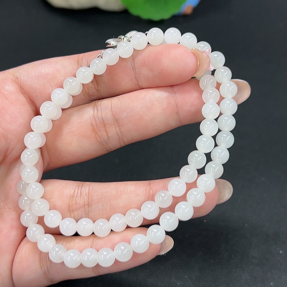Hetian Jade Bead Necklace Approx. 5.8mm Total Weight About 24.9g Non-Gold