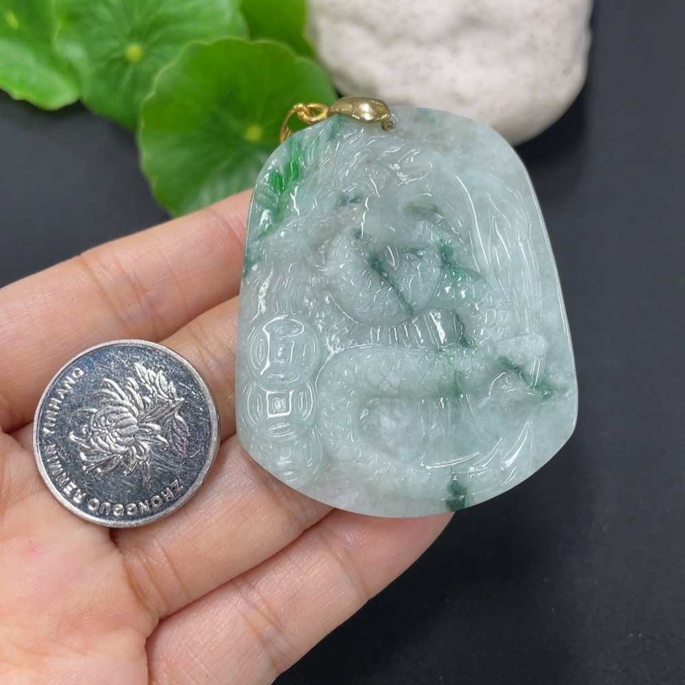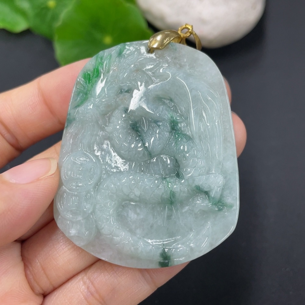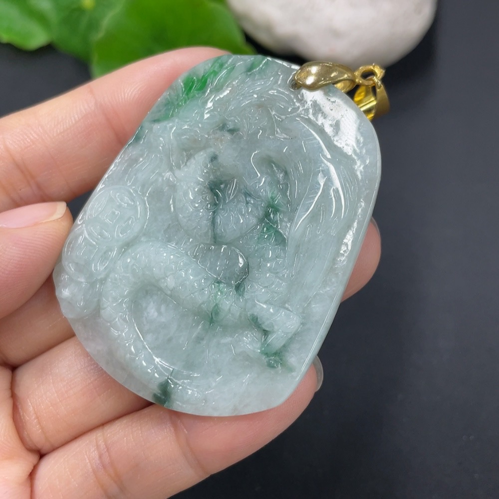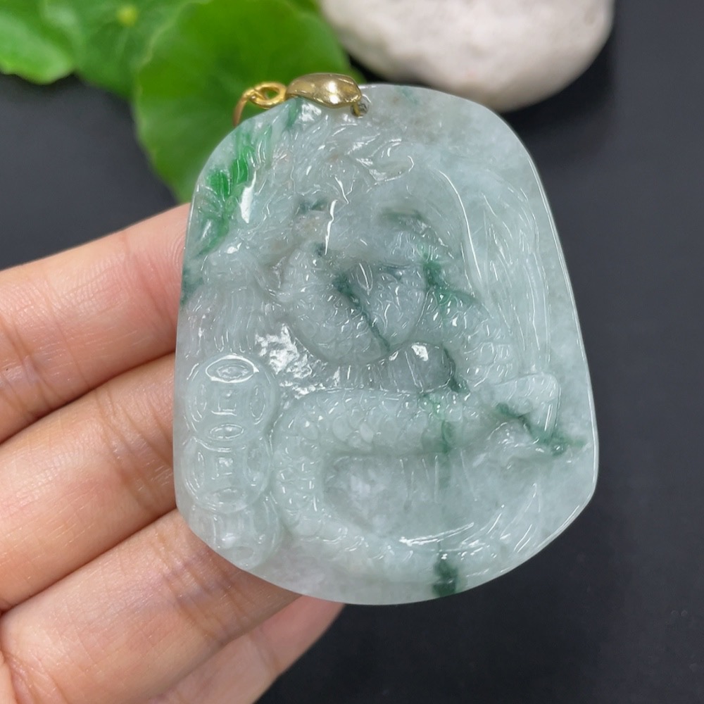 Jadeite Pendant Dragon Plaque Non-Gold Total Weight Approx. 24.2g